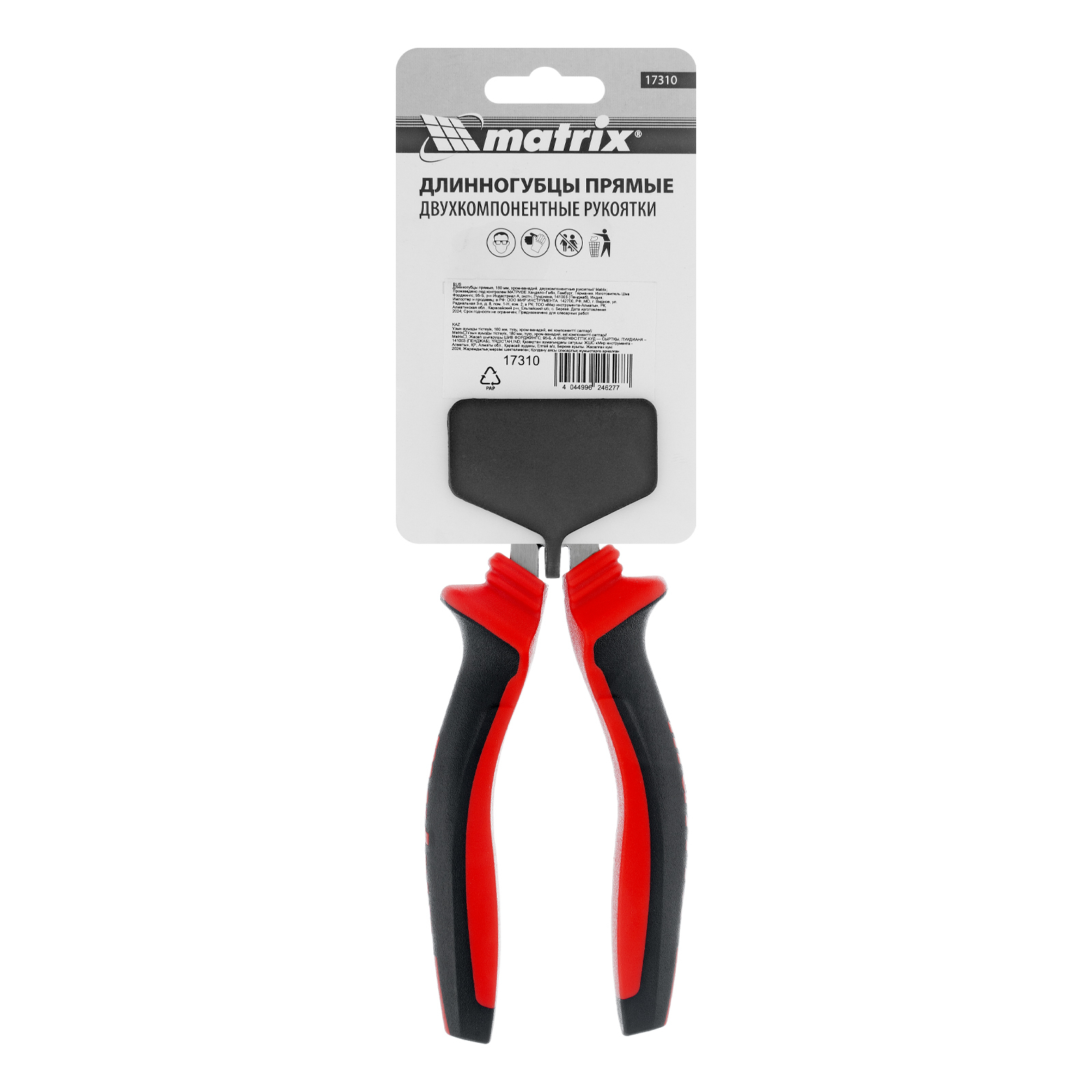 Длинногубцы прямые, 180 мм, хром-ванадий, двухкомпонентные рукоятки Matrix