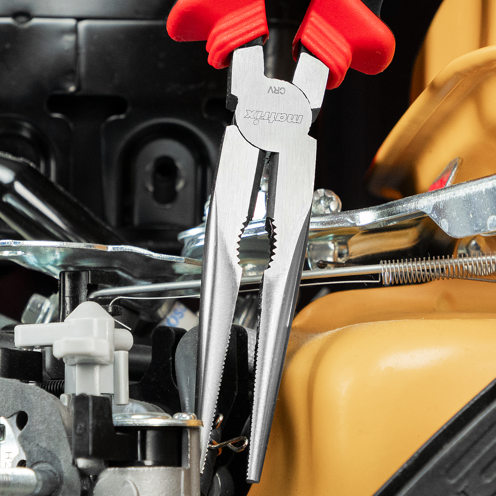 - Прочность и долговечность — длинногубцы изготовлены из стали 40 CrV, рабочие части прошли индукционную закалку до твердости 52-58 HRC.