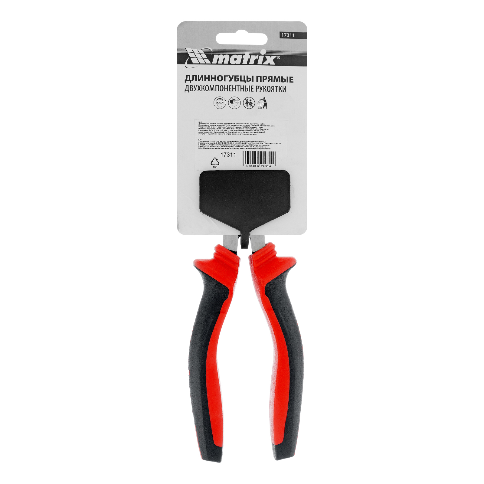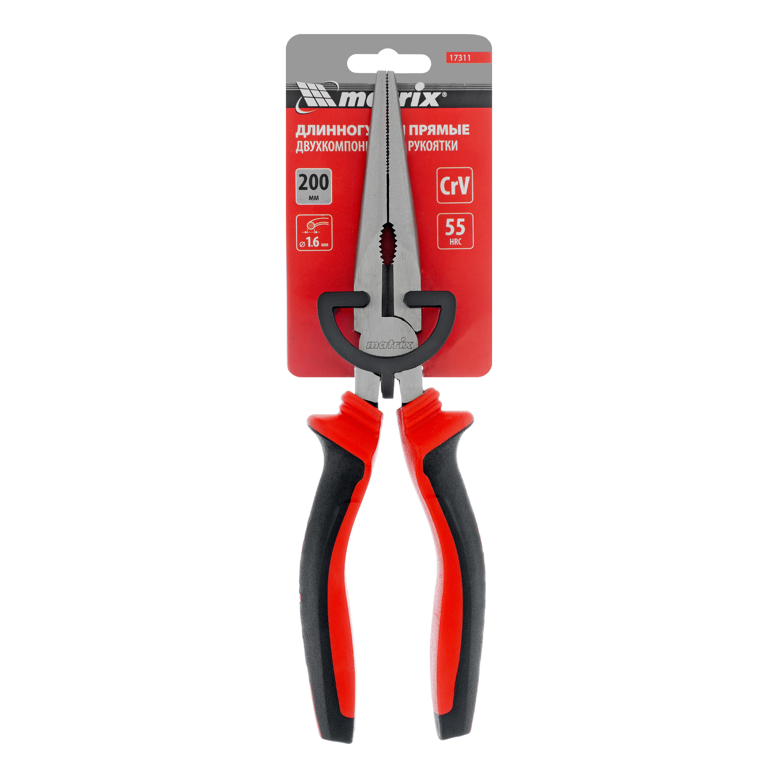 Длинногубцы прямые, 200 мм, хром-ванадий, двухкомпонентные рукоятки Matrix