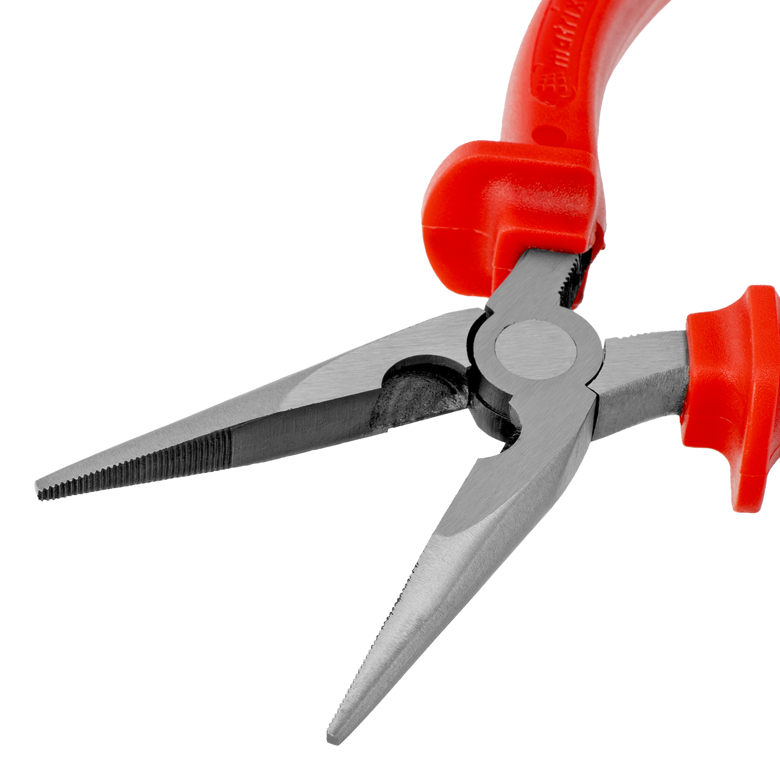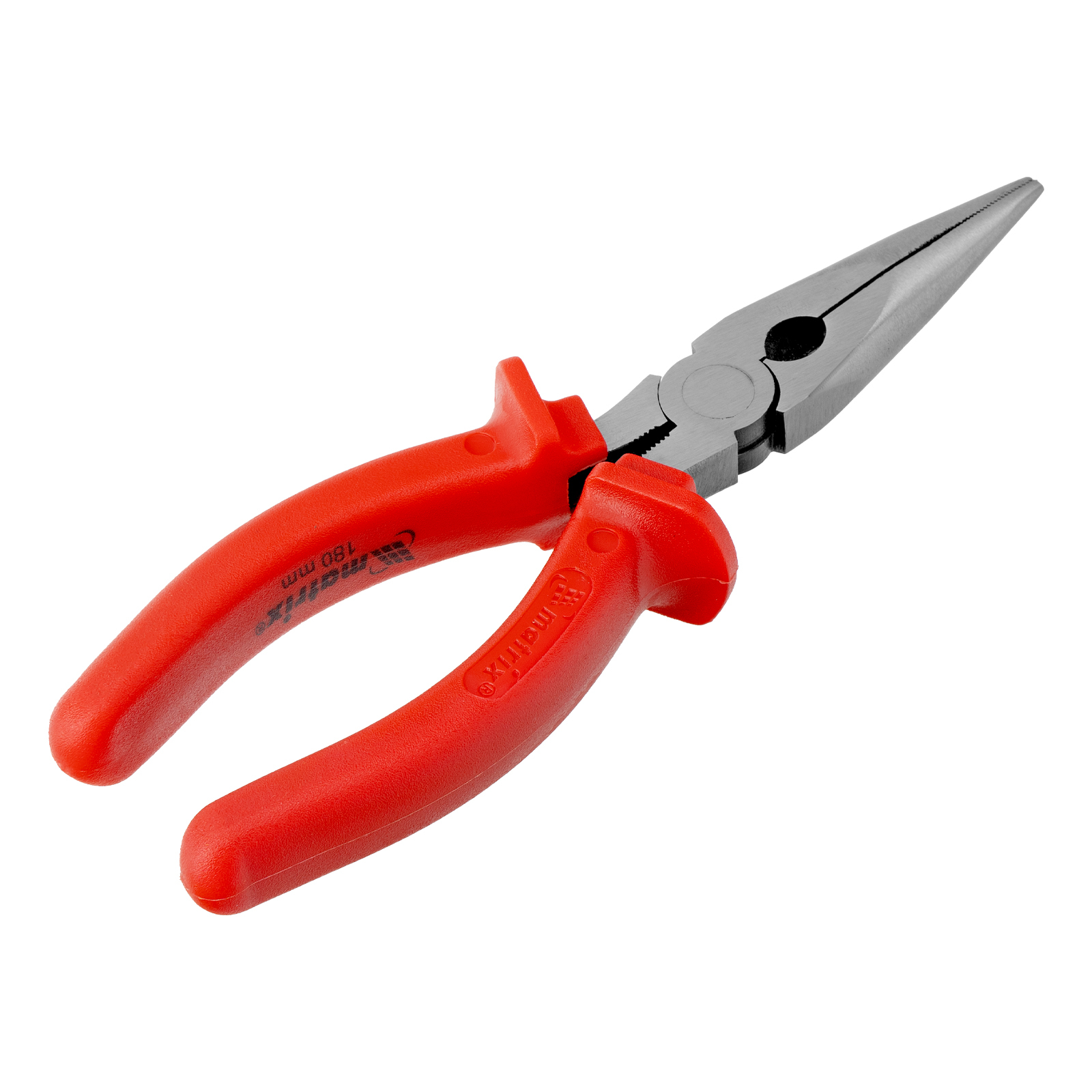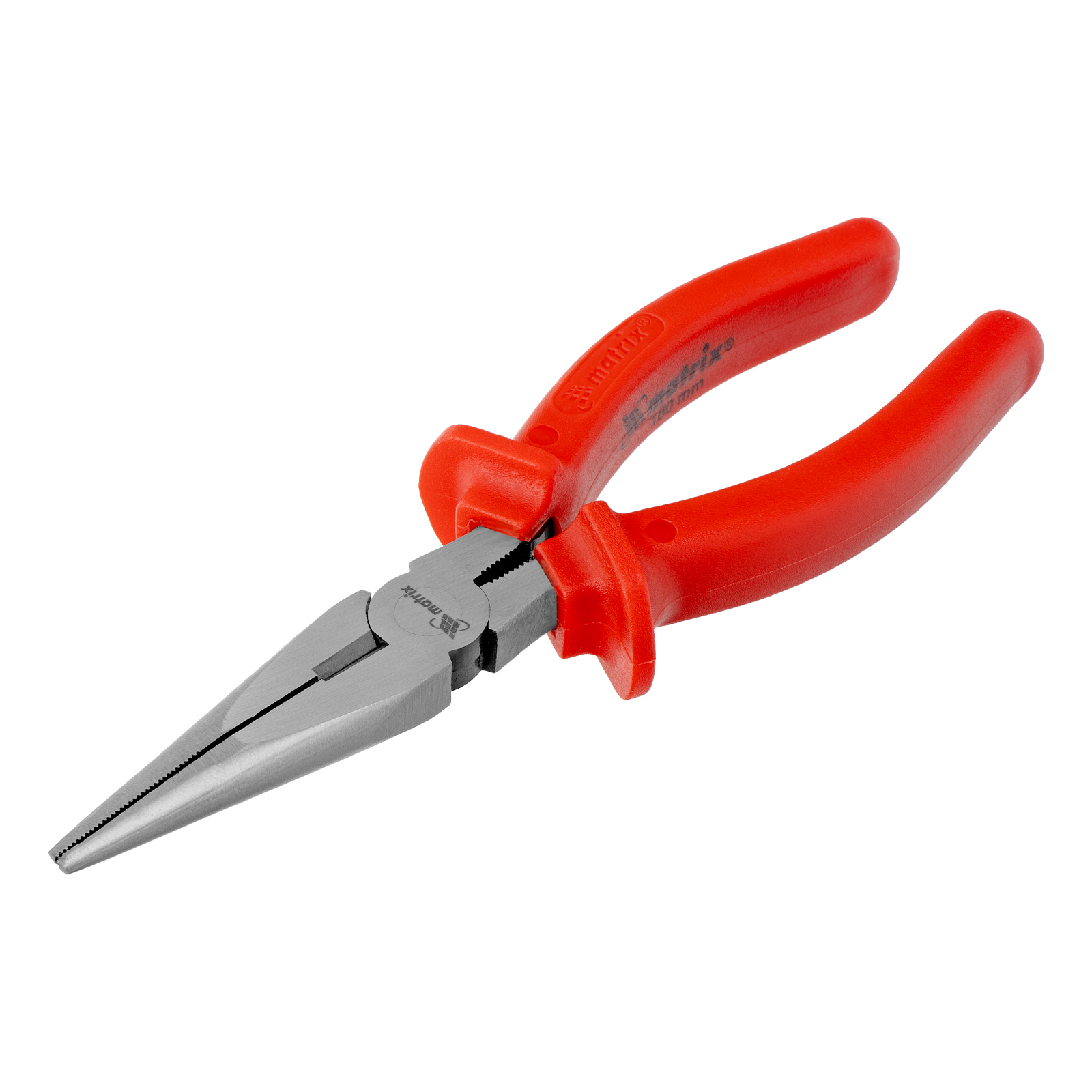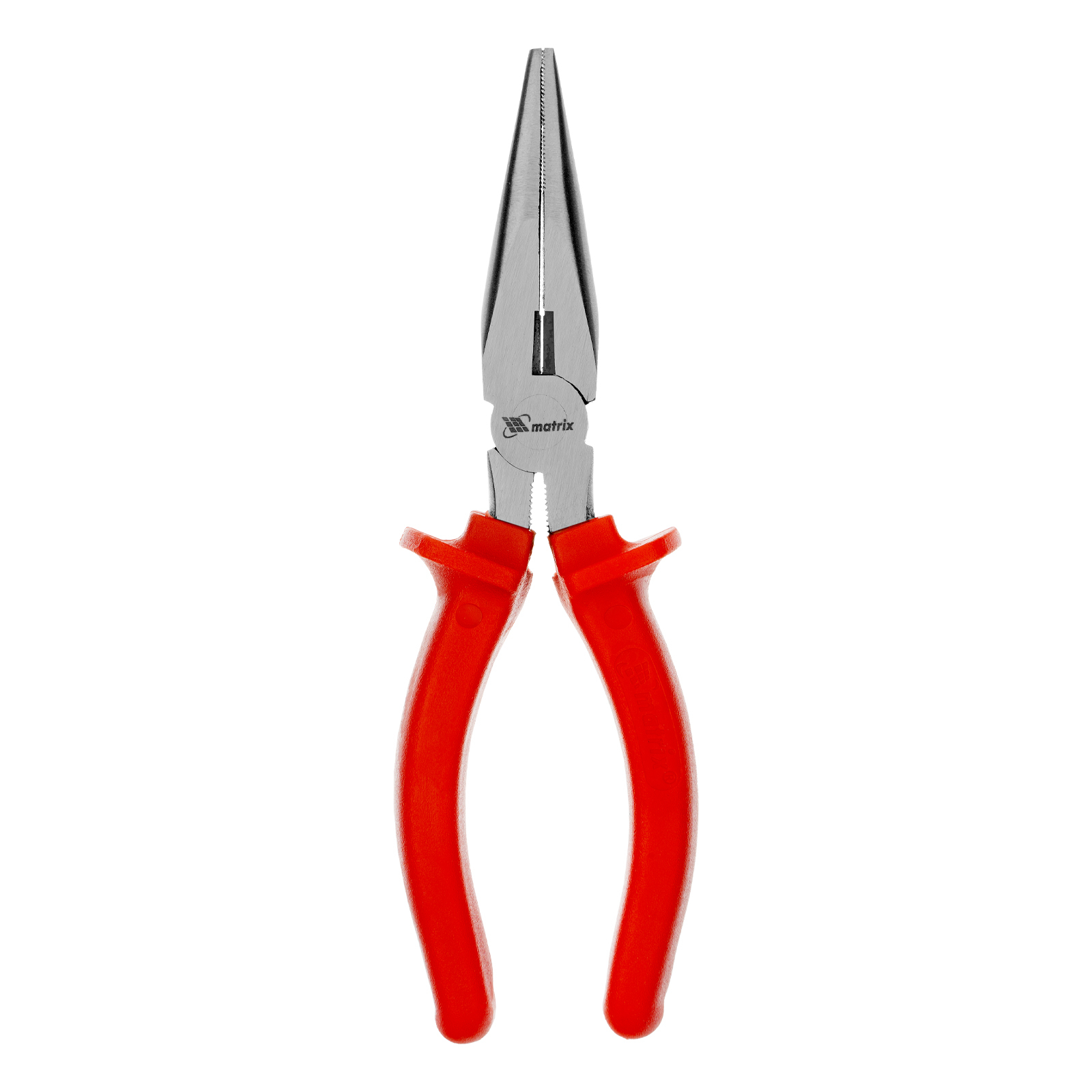 Длинногубцы прямые Econom, 180 мм, шлифованные, пластмассовые рукоятки Matrix