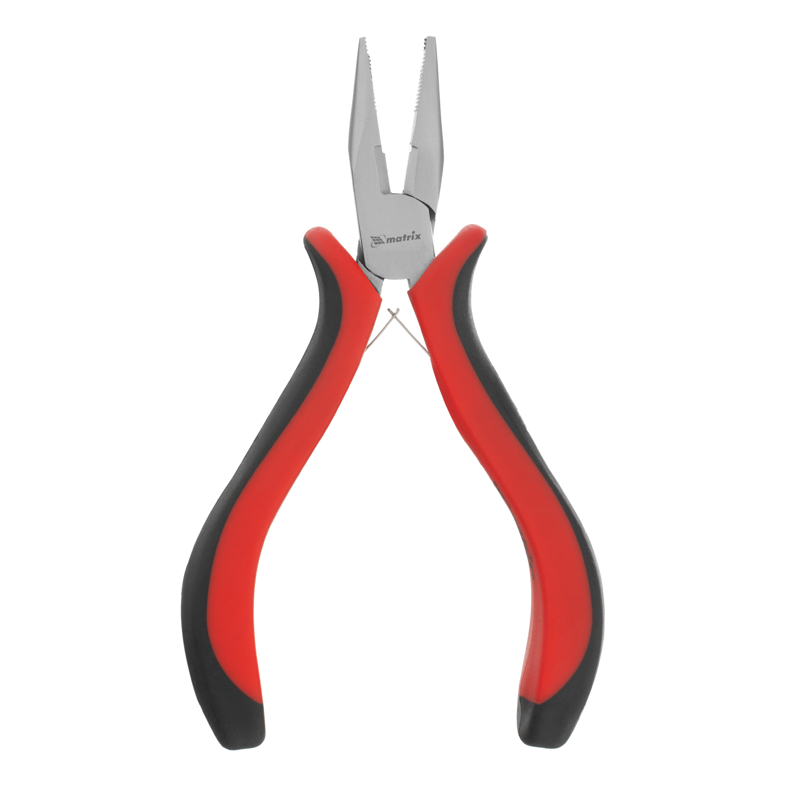 Длинногубцы прямые Mini, 130 мм, никелированные, авторазжим, двухкомпонентные рукоятки Matrix