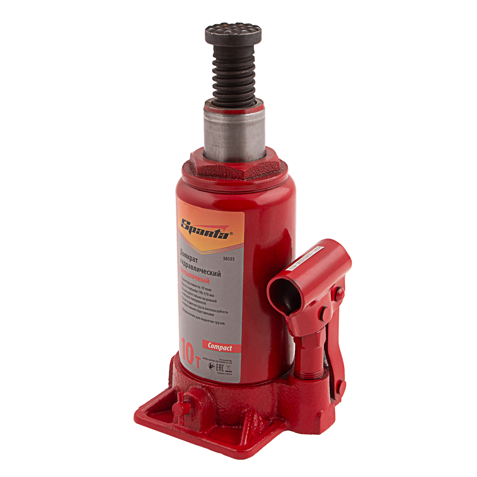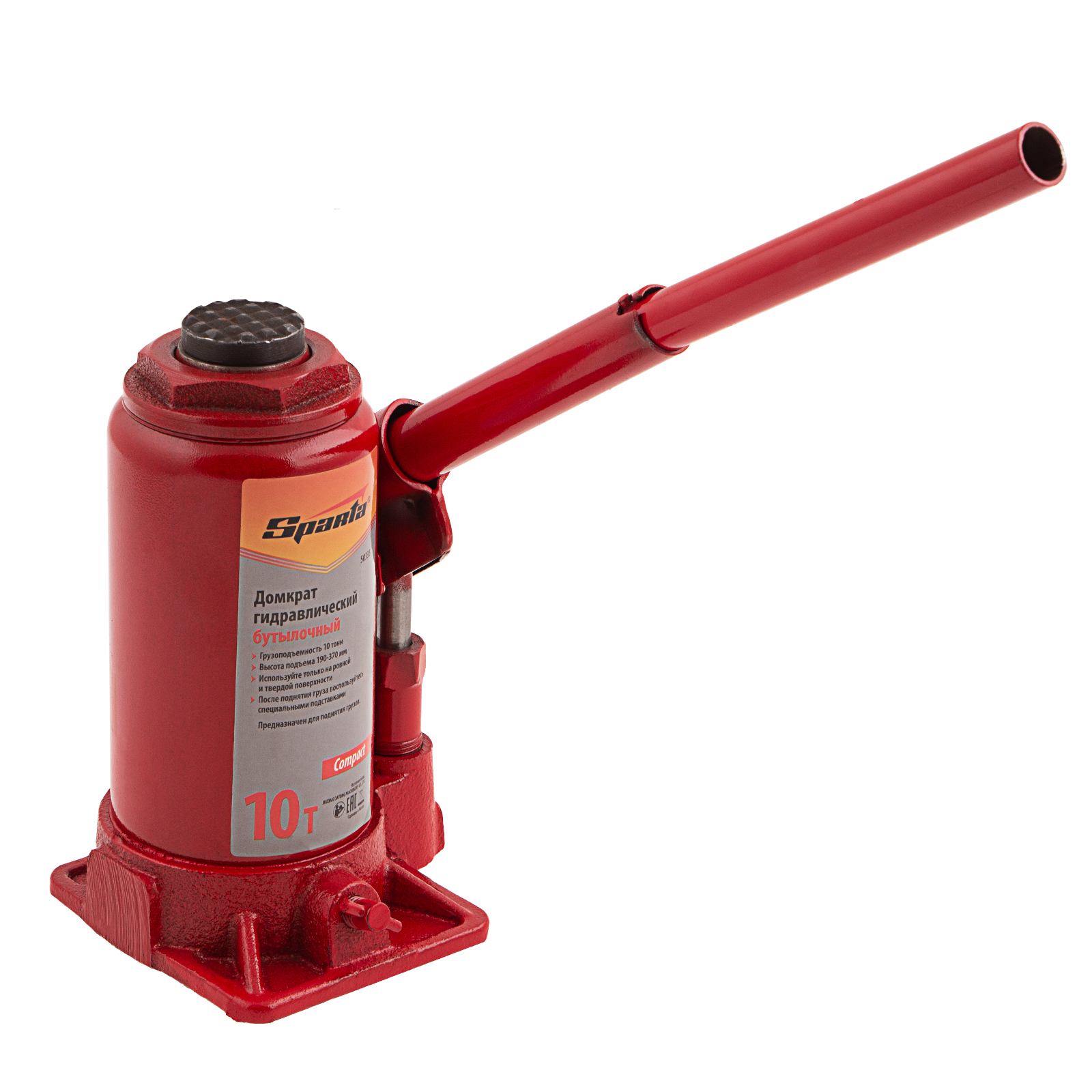 Домкрат гидравлический бутылочный 10 т, h подъема 190-370 мм Sparta Compact