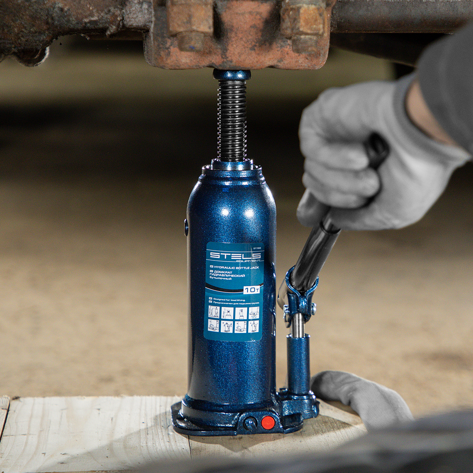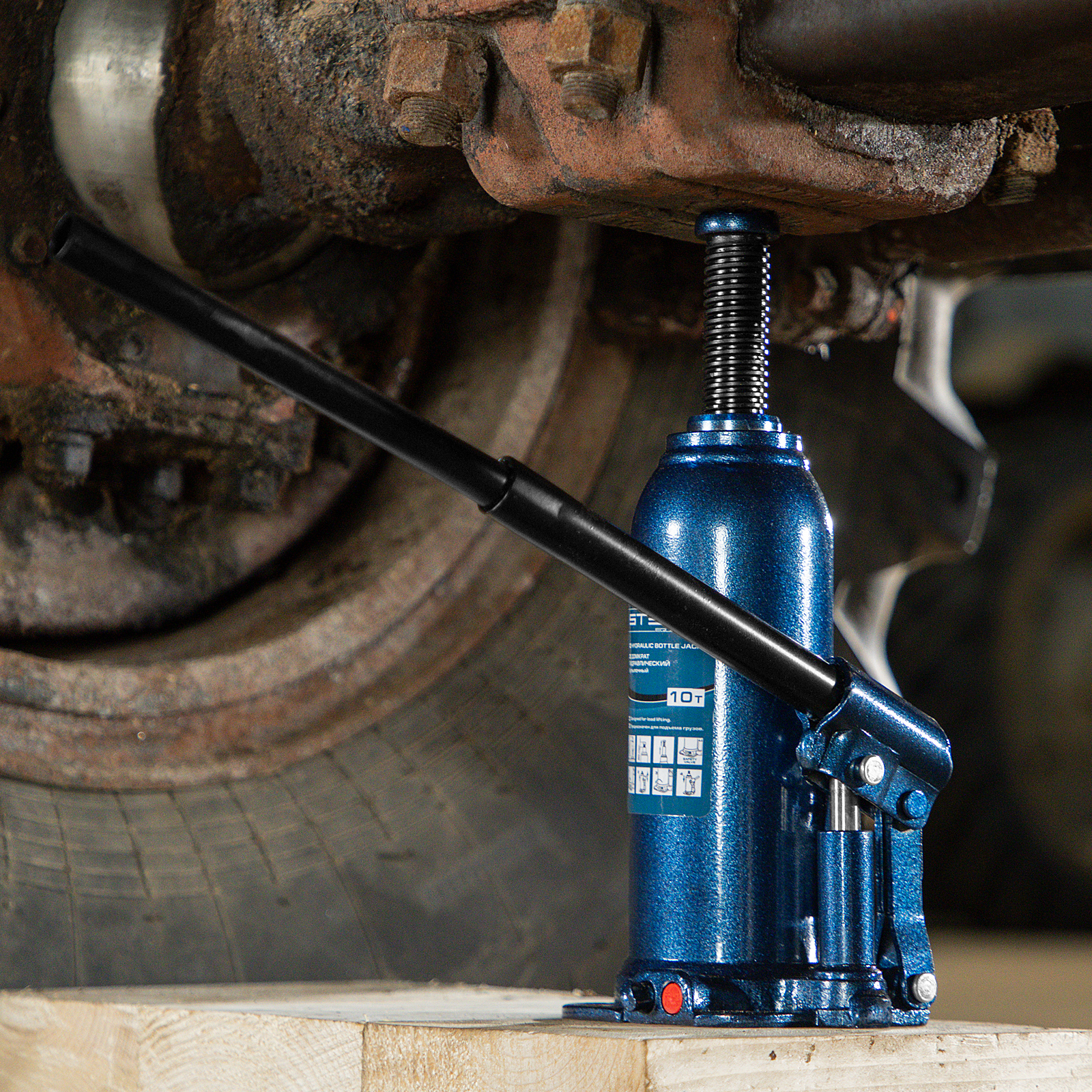 - Безопасная эксплуатация — благодаря предохранительному клапану домкрат не поднимает грузы тяжелее 10 т.