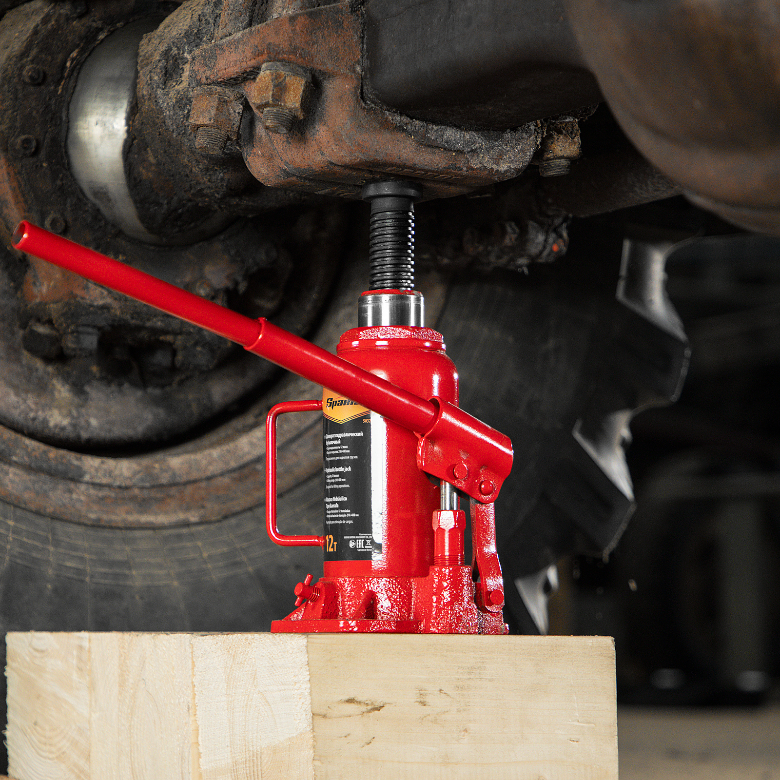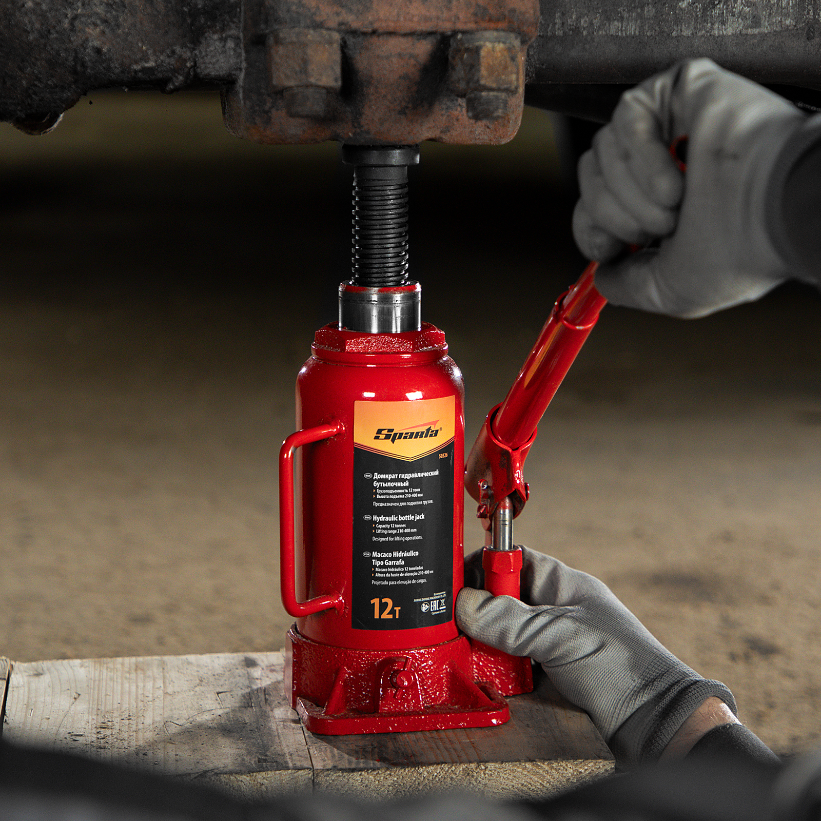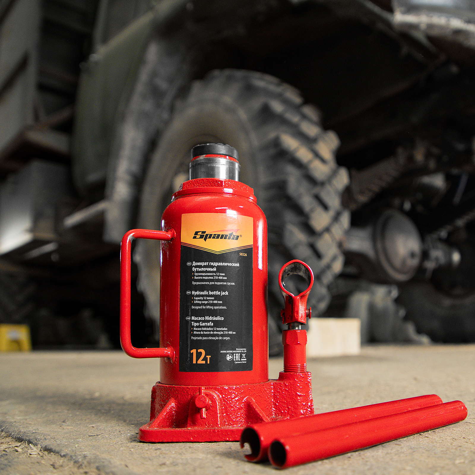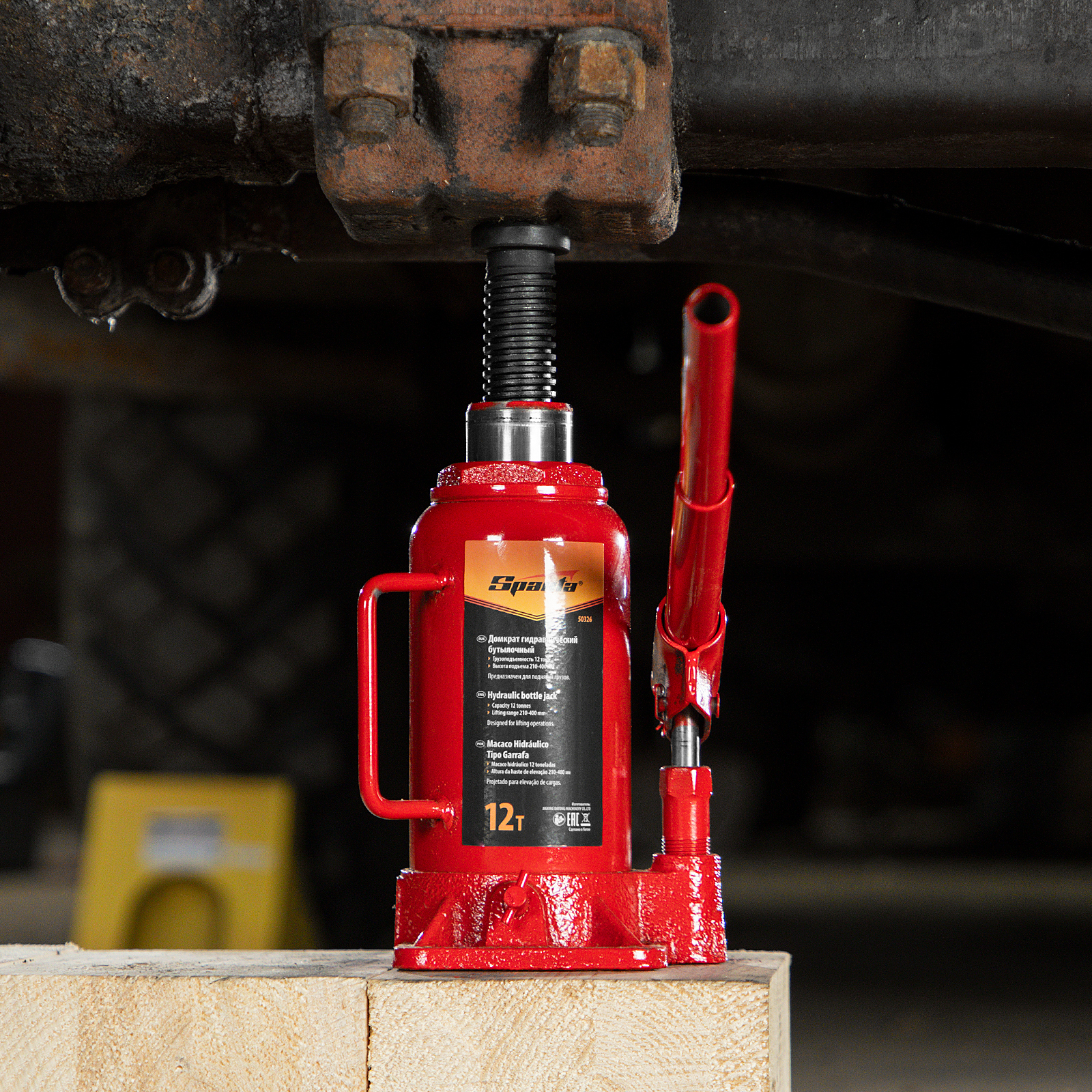<p>Гидравлический бутылочный домкрат Sparta 50326 рассчитан на подъем грузов весом до 12 т на высоту от 210 до 400 мм. Он пригодится как автолюбителям в гараже, так и профессиональным мастерам в автосервисах. Домкрат обеспечивает плавный подъем груза без особых усилий со стороны пользователя.</p><h2>Преимущества</h2><ul><li>Надежность и долговечность — основание изготовлено из высокопрочного чугуна.</li><li>Ремонтопригодность — корпус крепится станине с помощью резьбового соединения.</li><li>Удобное хранение и транспортировка — домкрат оборудован съемным рычагом и весит 6,45 кг.</li></ul>
