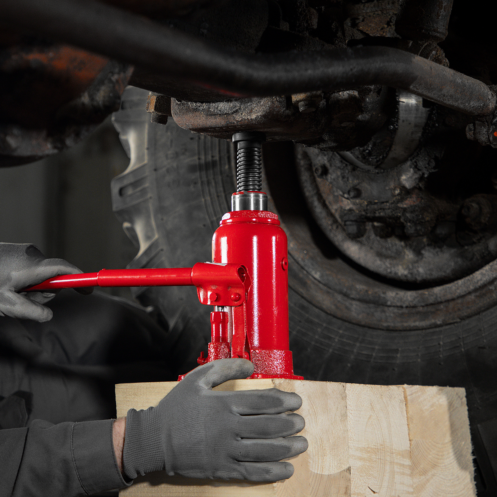 Гидравлический бутылочный домкрат Sparta 50326 рассчитан на подъем грузов весом до 12 т на высоту от 210 до 400 мм. Он пригодится как автолюбителям в гараже, так и профессиональным мастерам в автосервисах. Домкрат обеспечивает плавный подъем груза без особых усилий со стороны пользователя.