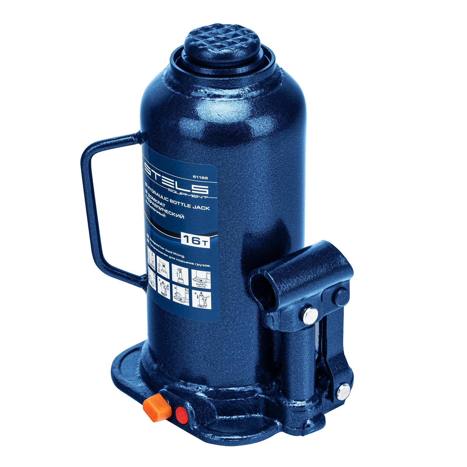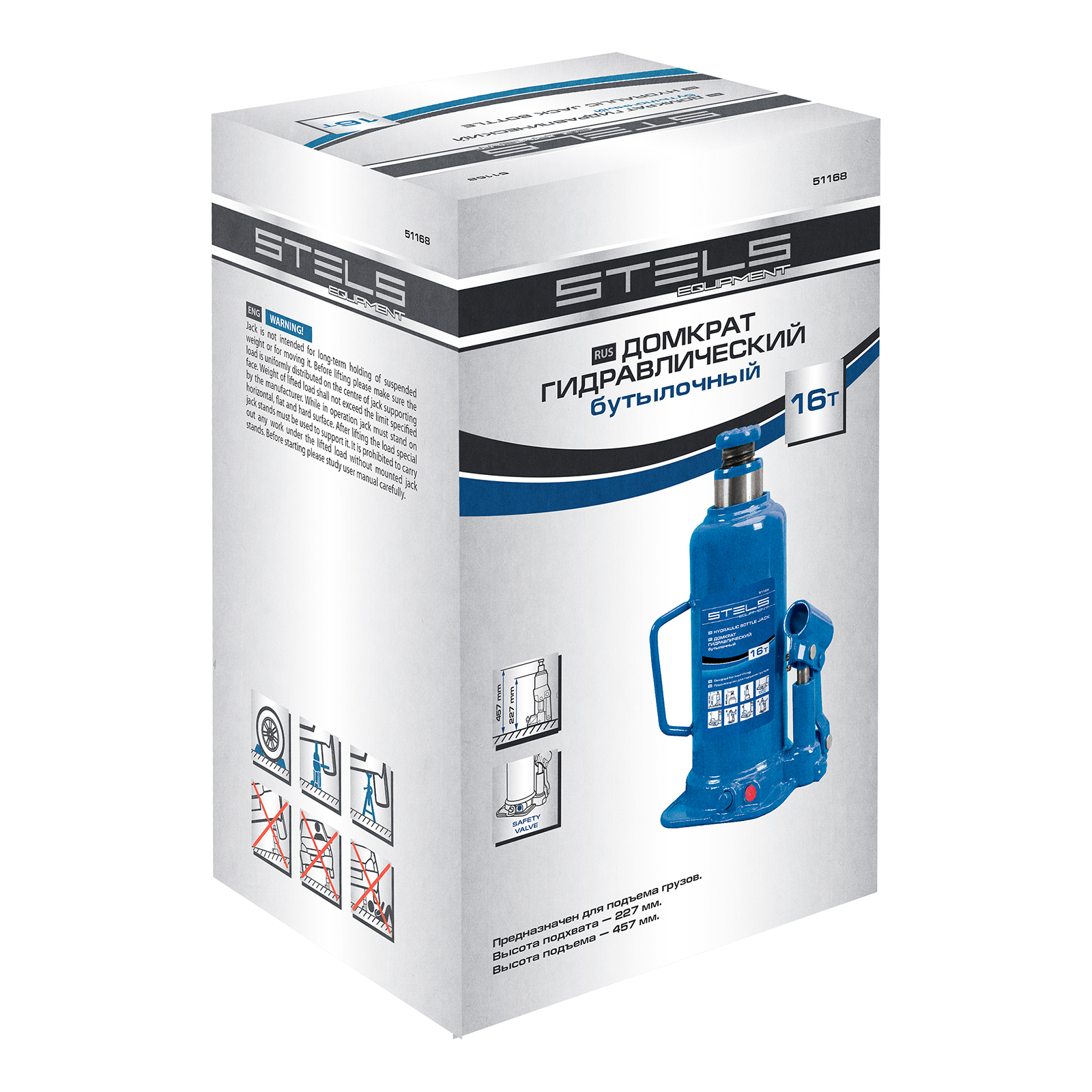 <p>Гидравлический бутылочный домкрат Stels 51168 применяется для быстрого поднятия грузов весом до 16 т на высоту 227-457 мм. Оптимален для автомобилей с большим клиренсом. Домкрат будет полезен автолюбителям и профессионалам для ремонта транспортного средства.</p><h2>Преимущества</h2><ul><li>Безопасная эксплуатация — благодаря предохранительному клапану домкрат не поднимает грузы тяжелее 16 т.</li><li>Прочность и долговечность — корпус выполнен из коррозионностойкой стали.</li><li>Надежная конструкция — домкрат не имеет резьбовых соединений, т.к. корпус приварен к станине.</li></ul>