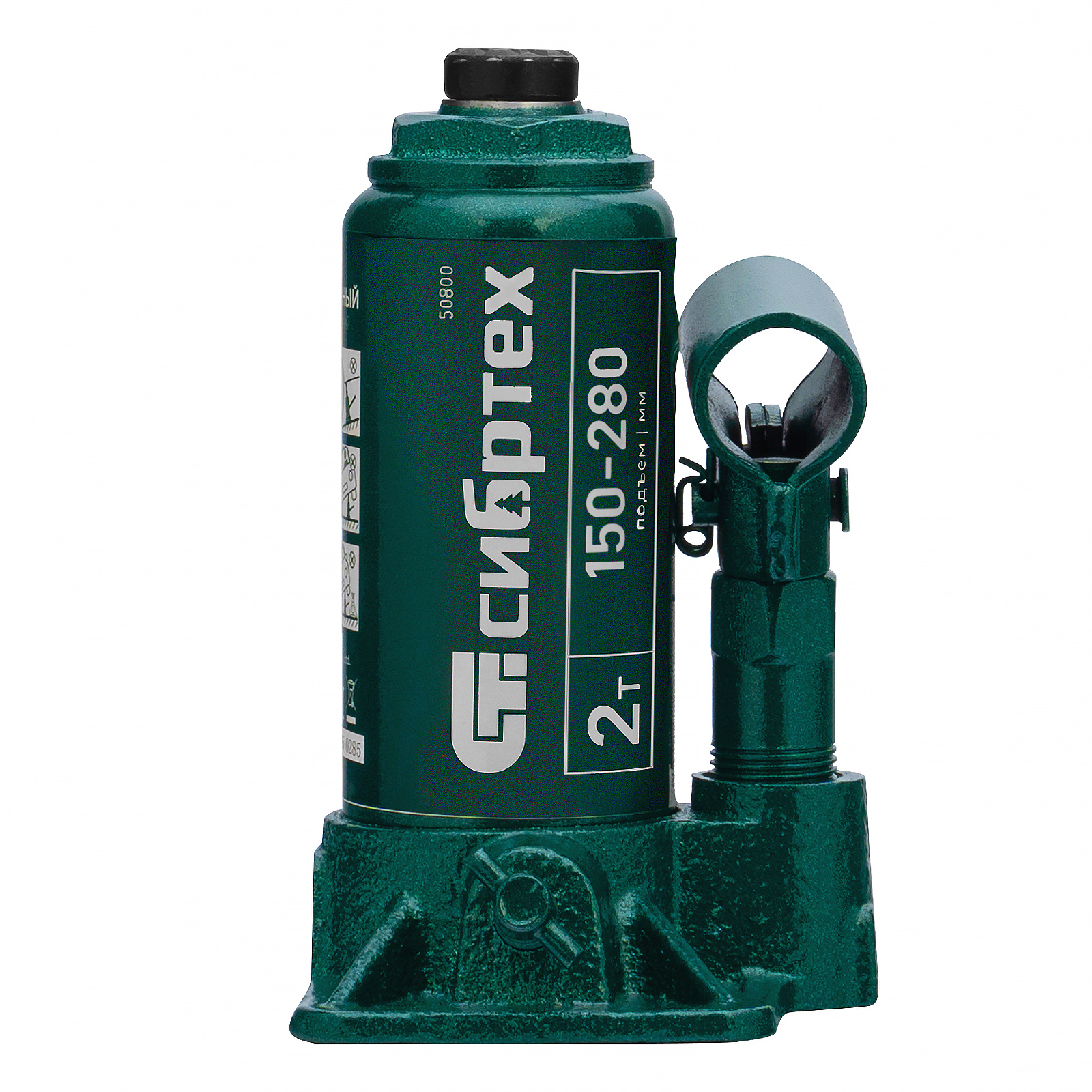 <p>Домкрат гидравлический бутылочный Сибртех 50800 предназначен для подъема грузов массой до 2 т на высоту от 150 до 280 мм. Не требует больших усилий от пользователя и значительно облегчает рабочий процесс. Домкрат будет полезен при проведении техобслуживания машины в автосервисе или гараже.</p><h2>Преимущества</h2><ul><li>Прочность и долговечность — корпус выполнен из стали, основание — из чугуна.</li><li>Разборная конструкция — корпус крепится к станине при помощи резьбового соединения, поэтому при необходимости домкрат можно отремонтировать.</li><li>Точная регулировка высоты подхвата — в конструкции предусмотрен выдвижной винт.</li><li>Удобное хранение и транспортировка — домкрат весит всего 1,9 кг, а благодаря съемному рычагу не занимает много места.</li></ul>