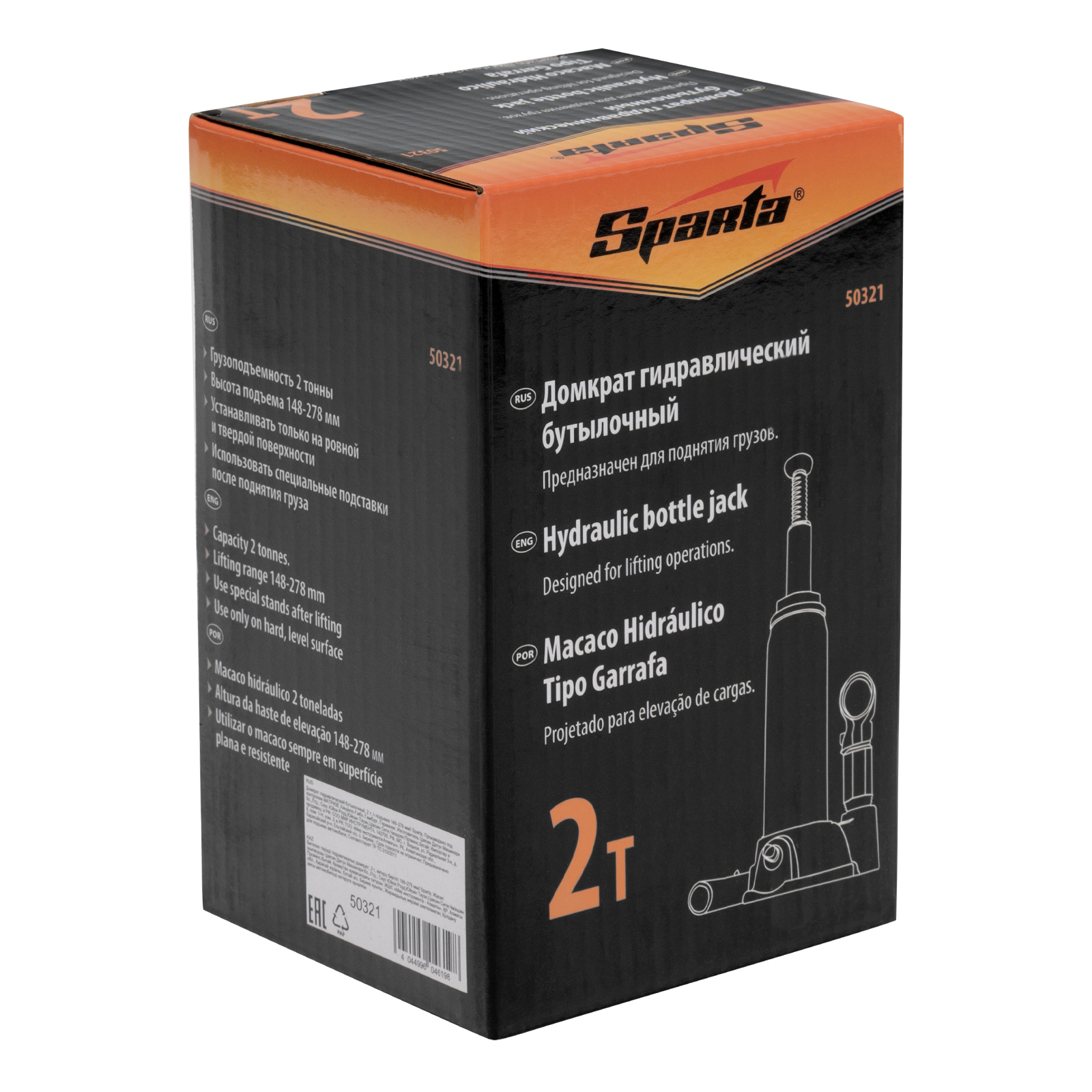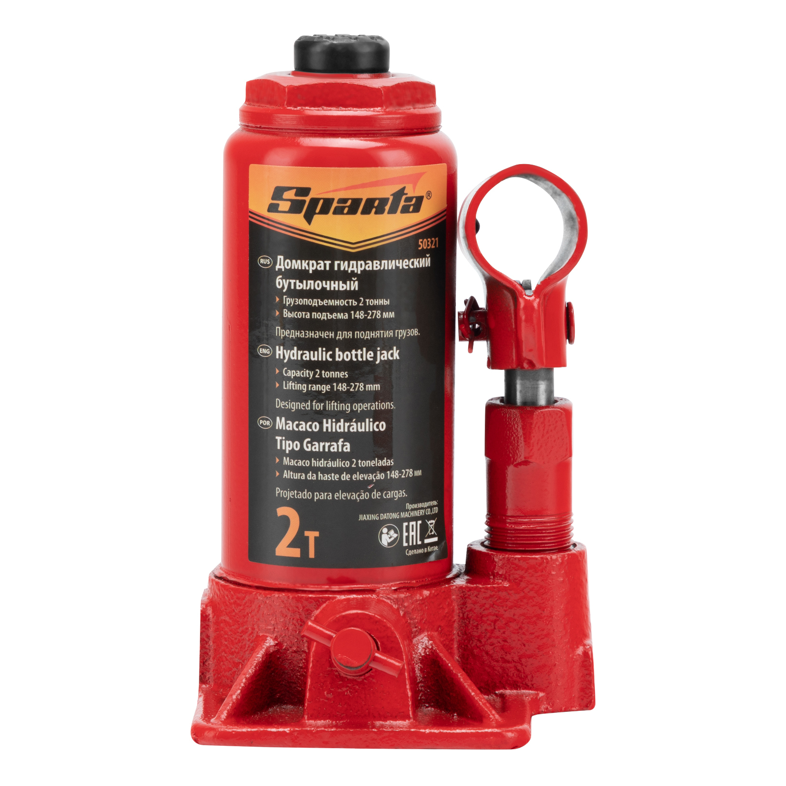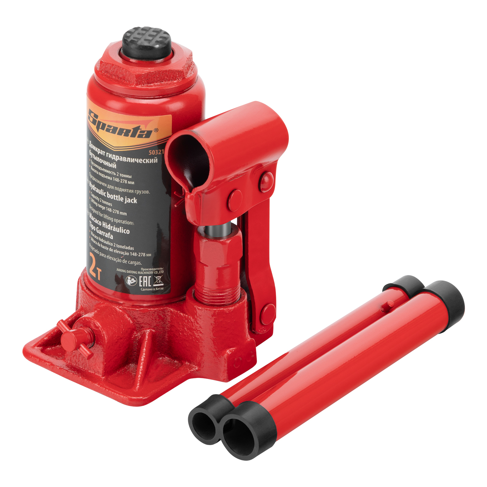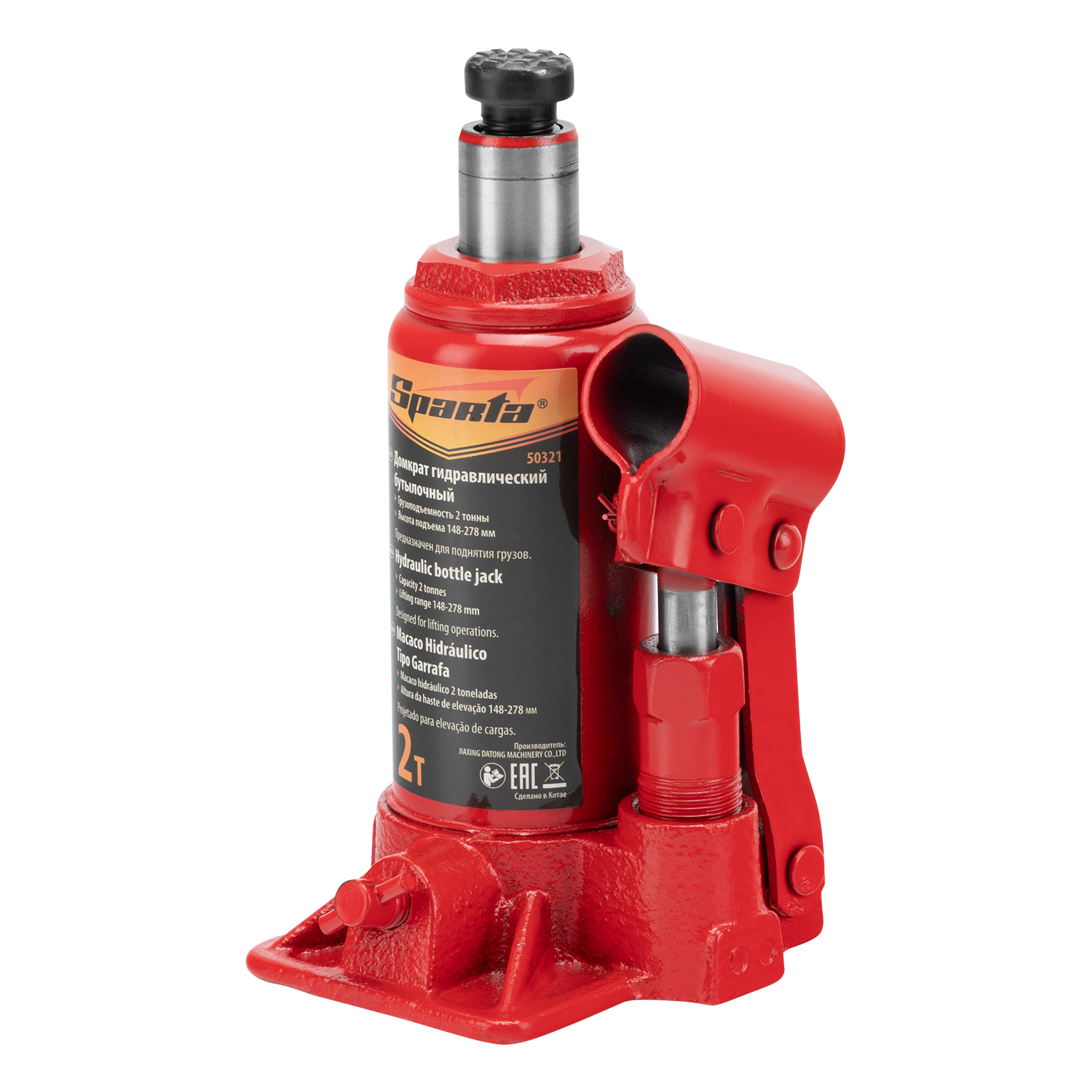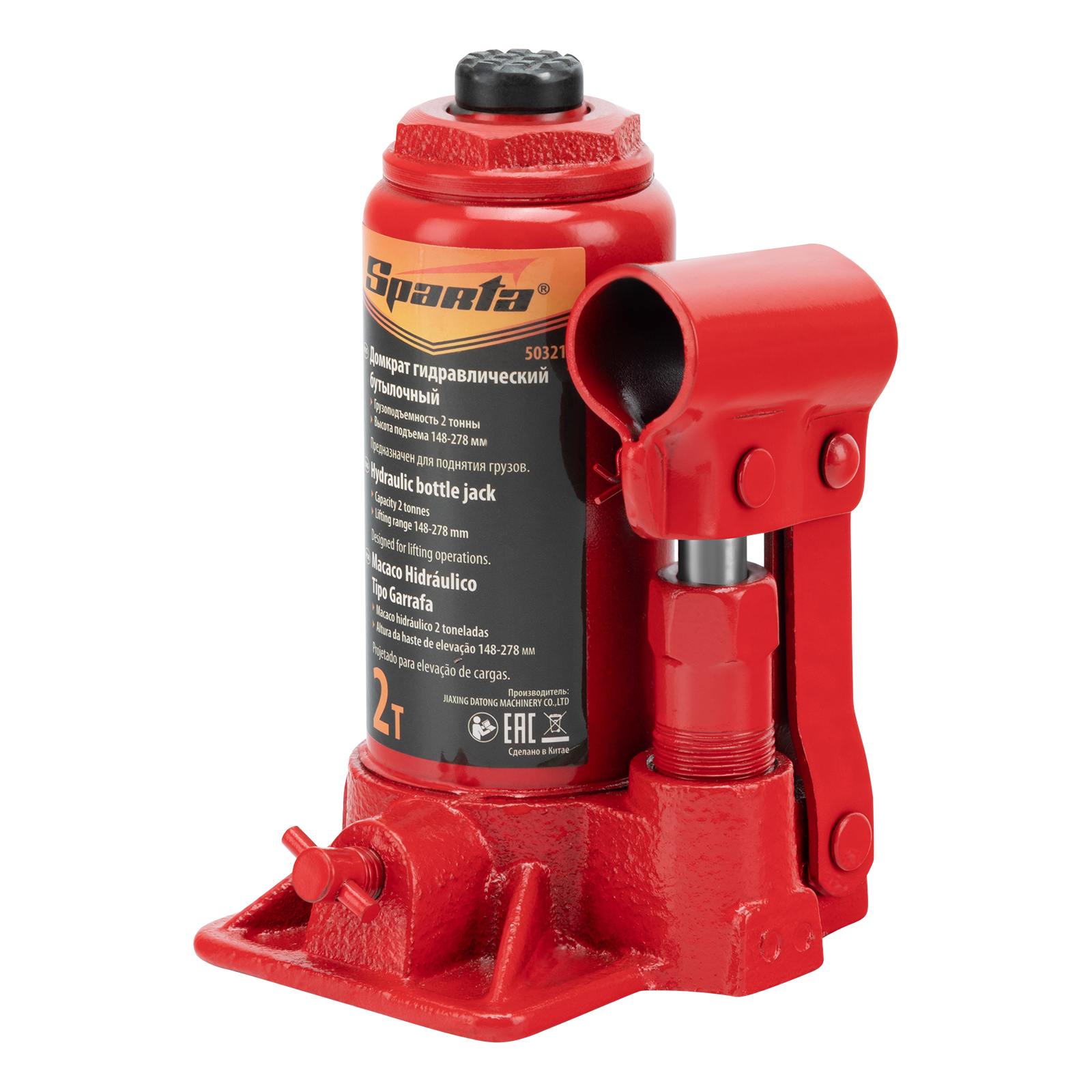 <p>Гидравлический бутылочный домкрат Sparta 50321 рассчитан на подъем грузов весом до 2 т на высоту от 148 до 278 мм. Он пригодится как автолюбителям в гараже, так и профессиональным мастерам в автосервисах. Домкрат обеспечивает плавный подъем груза без особых усилий со стороны пользователя.</p><h2>Преимущества</h2><ul><li>Надежность и долговечность — основание изготовлено из высокопрочного чугуна.</li><li>Ремонтопригодность — корпус крепится станине с помощью резьбового соединения.</li><li>Удобное хранение и транспортировка — домкрат оборудован съемным рычагом и весит 2,19 кг.</li></ul>