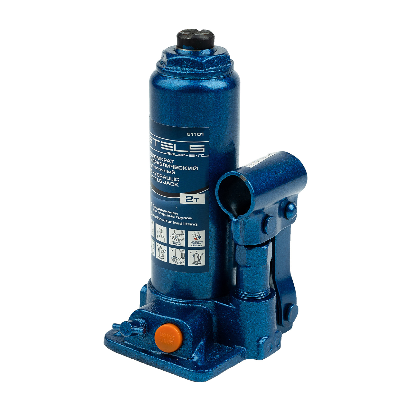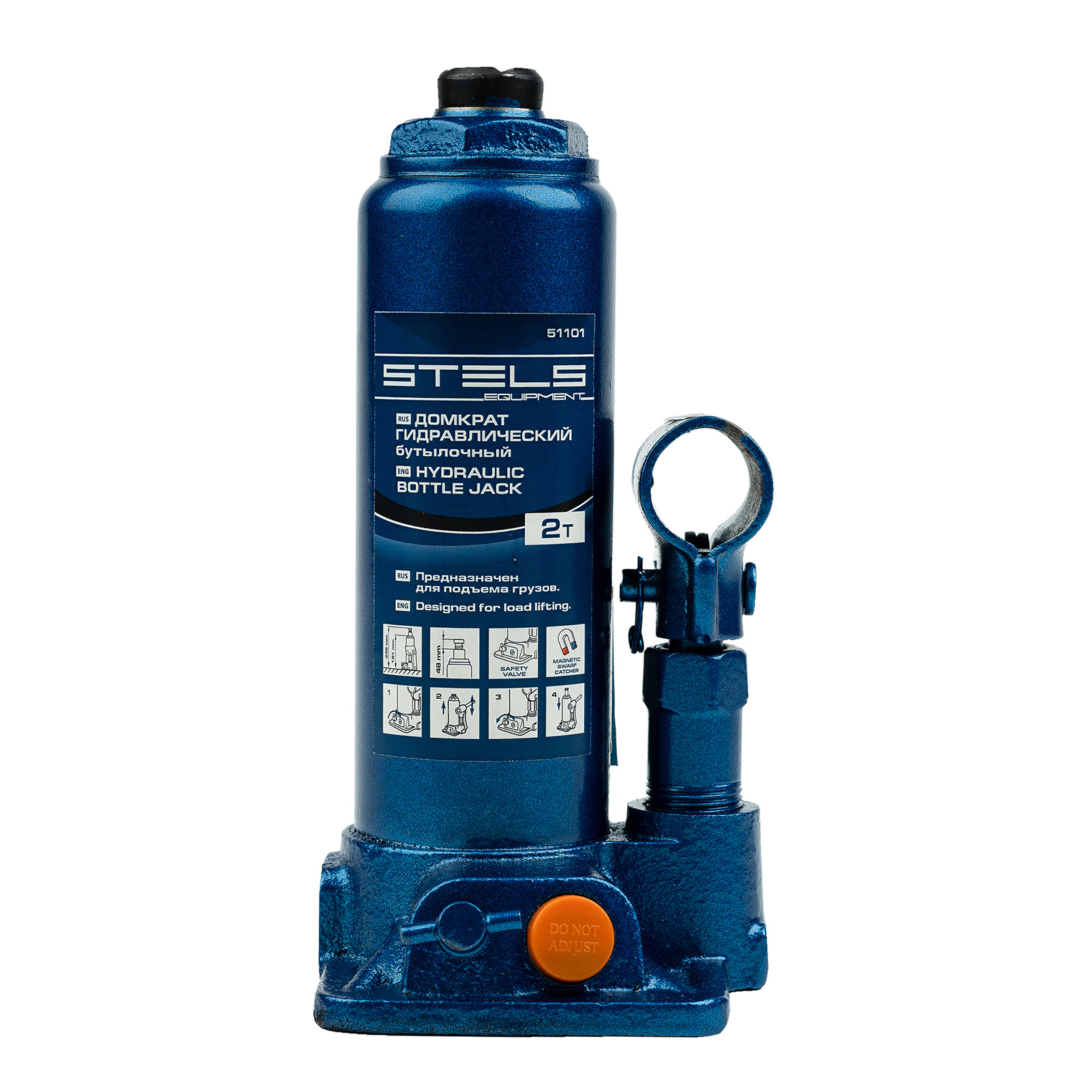 <p>Гидравлический бутылочный домкрат Stels 51101 предназначен для поднятия грузов массой до 2 т на высоту со 181 до 345 мм. Позволяет установить жесткую опору под груз для последующего проведения ремонта. Будет полезен на станции техобслуживания, подойдет также для самостоятельного обслуживания автомобиля. Пригодится во время проведения ремонтно-строительных работ.</p><h2>Преимущества</h2><ul><li>Безопасная эксплуатация — клапан безопасности предотвращает подъем груза массой свыше 2 т.</li><li>Долговечность — магнитный уловитель собирает металлическую стружку, образующуюся в процессе работы, защищая домкрат от поломки.</li><li>Удобная регулировка высоты — в верхней части штока имеется выдвижной винт.</li></ul>