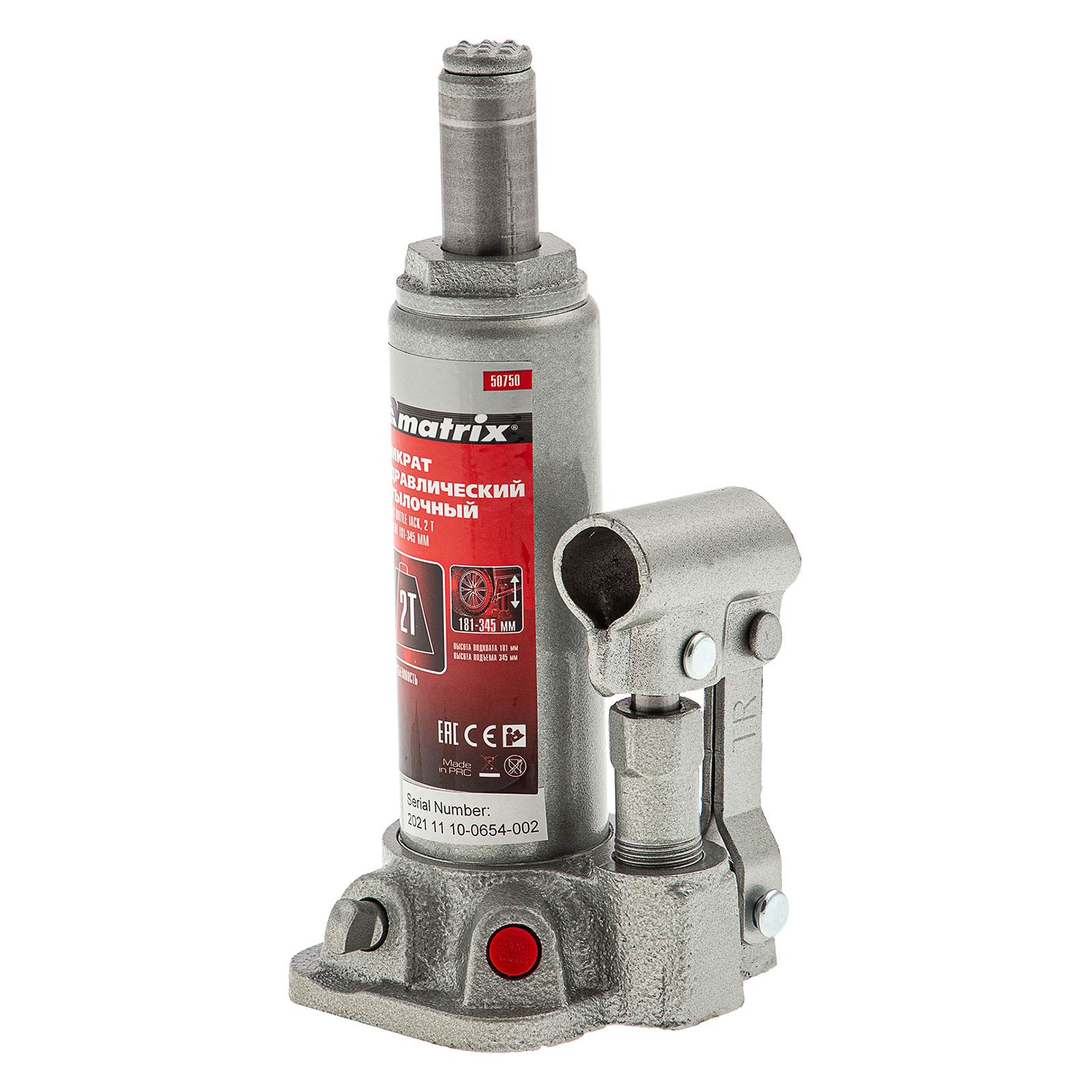 Домкрат гидравлический бутылочный, 2 т, высота подъема 181-345 мм, в пластиковый кейсе Matrix