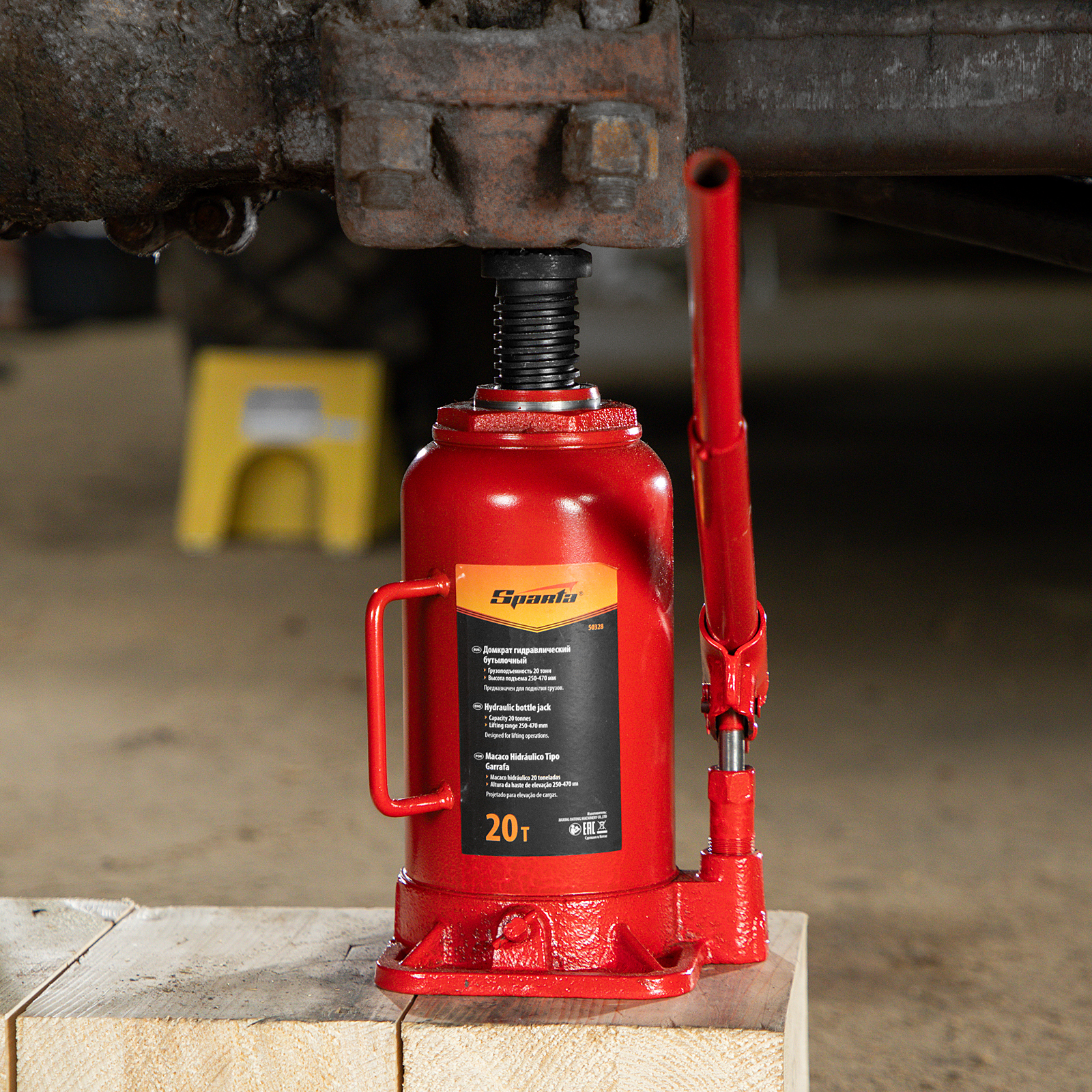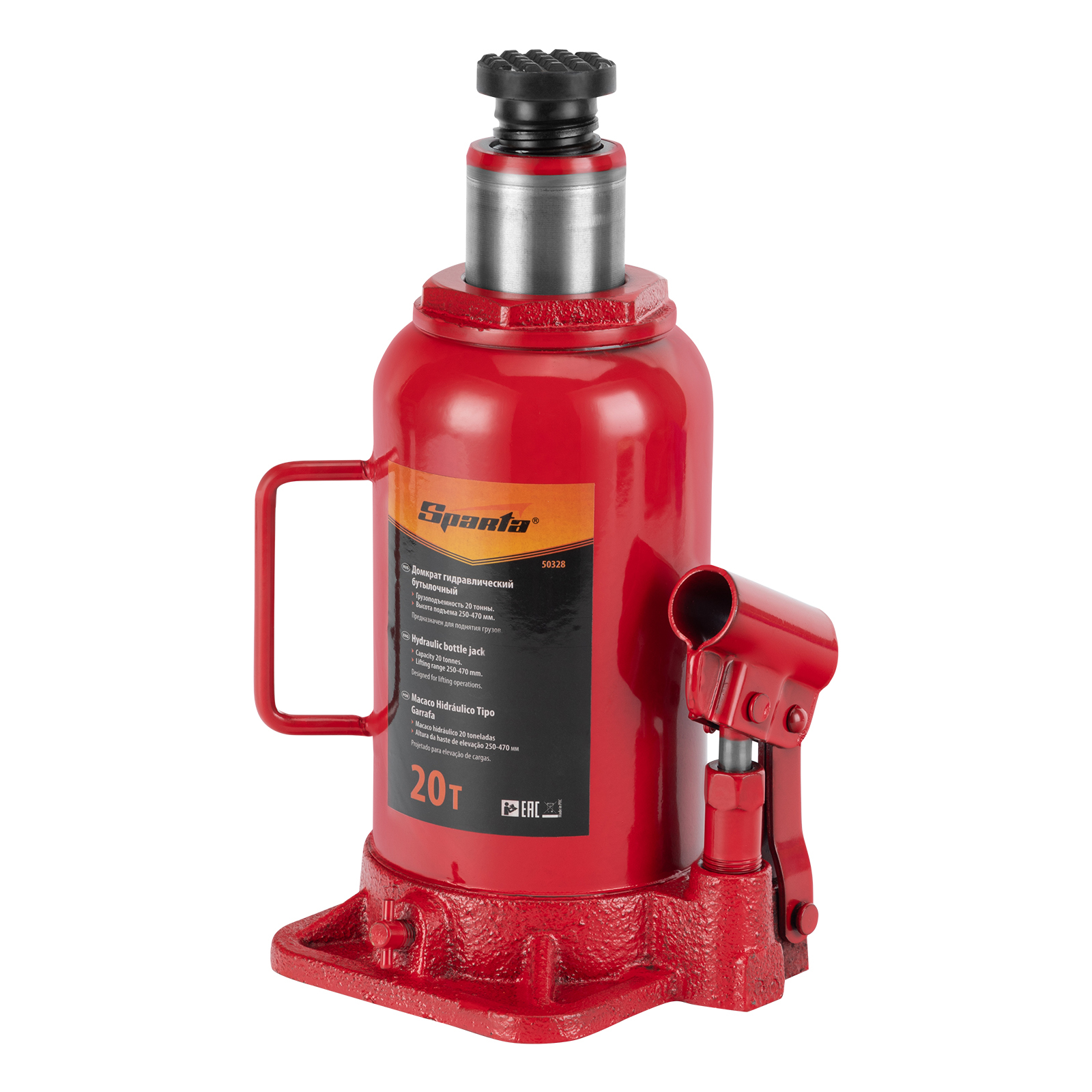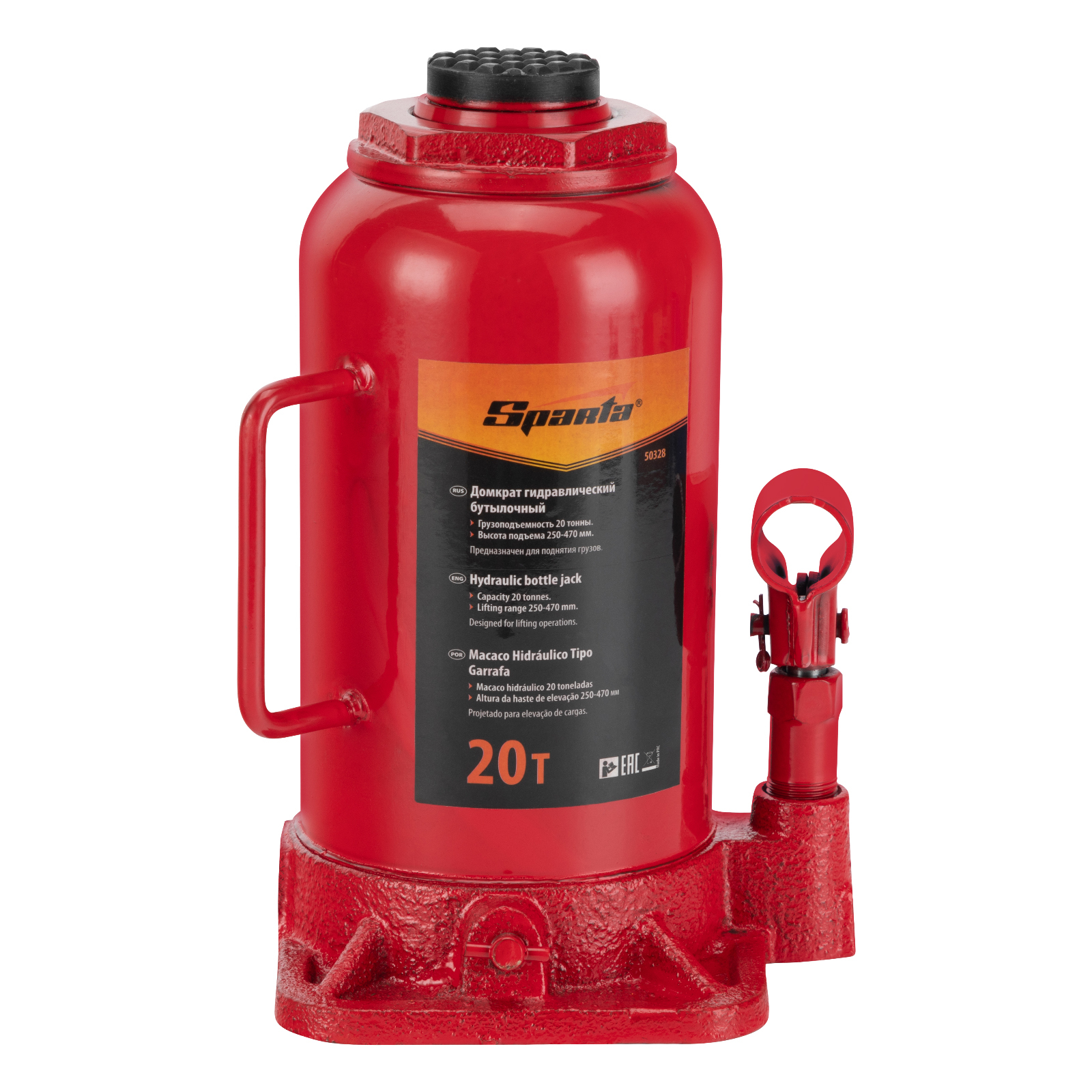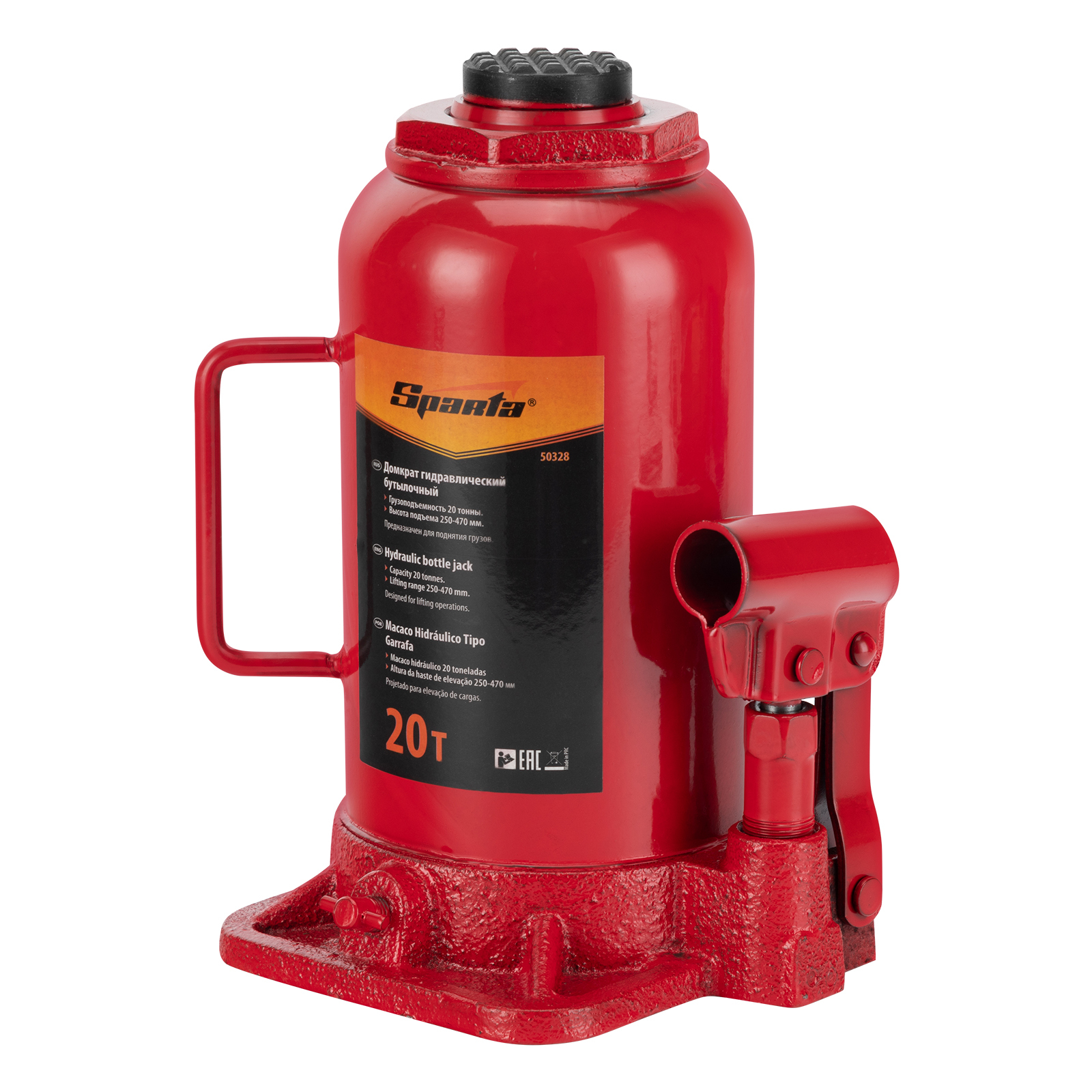 <p>Гидравлический бутылочный домкрат Sparta 50328 рассчитан на подъем грузов весом до 20 т на высоту от 250 до 470 мм. Он пригодится как автолюбителям в гараже, так и профессиональным мастерам в автосервисах. Домкрат обеспечивает плавный подъем груза без особых усилий со стороны пользователя.</p><h2>Преимущества</h2><ul><li>Надежность и долговечность — основание изготовлено из высокопрочного чугуна.</li><li>Ремонтопригодность — корпус крепится станине с помощью резьбового соединения.</li><li>Удобное хранение и транспортировка — домкрат оборудован съемным рычагом и весит 10,1 кг.</li></ul>