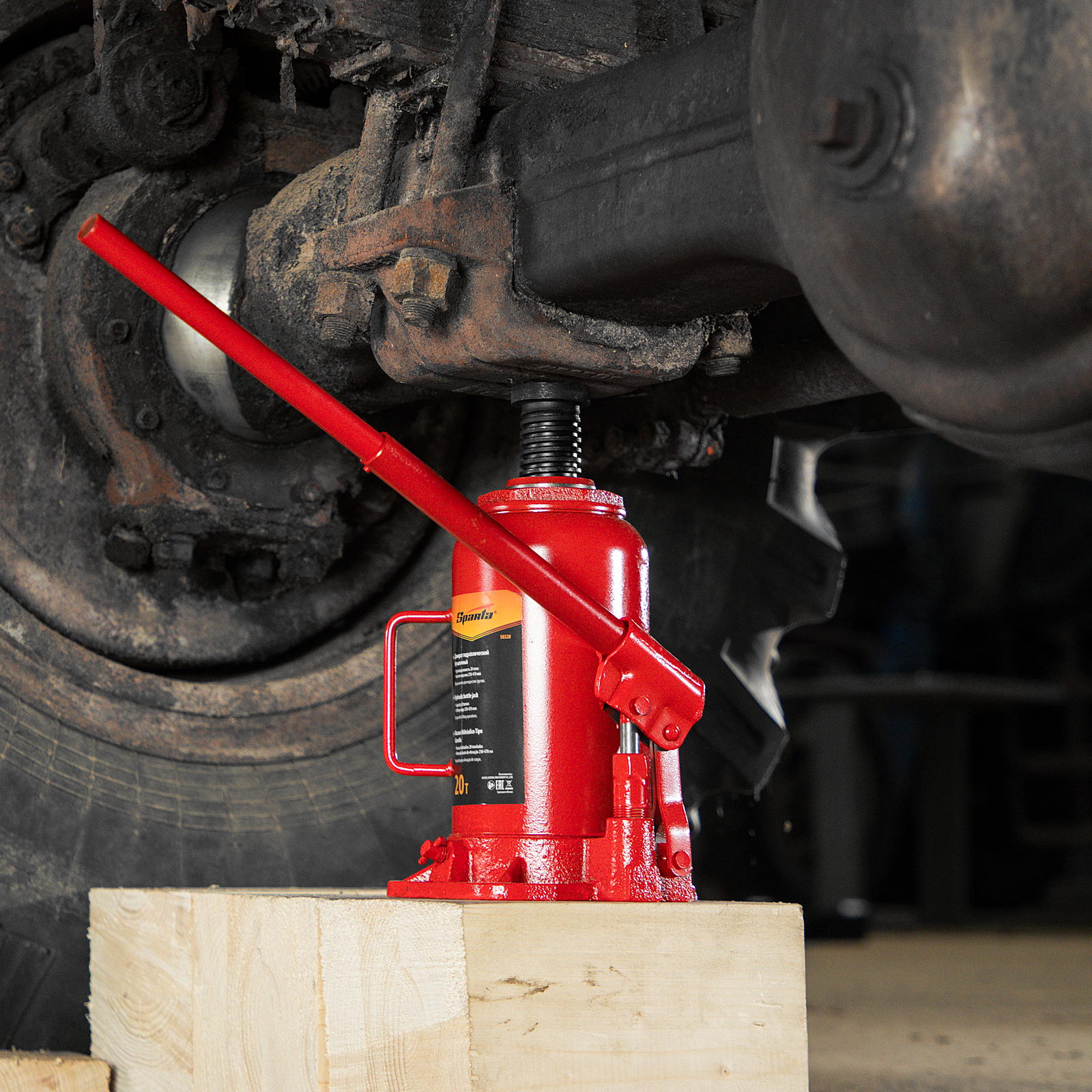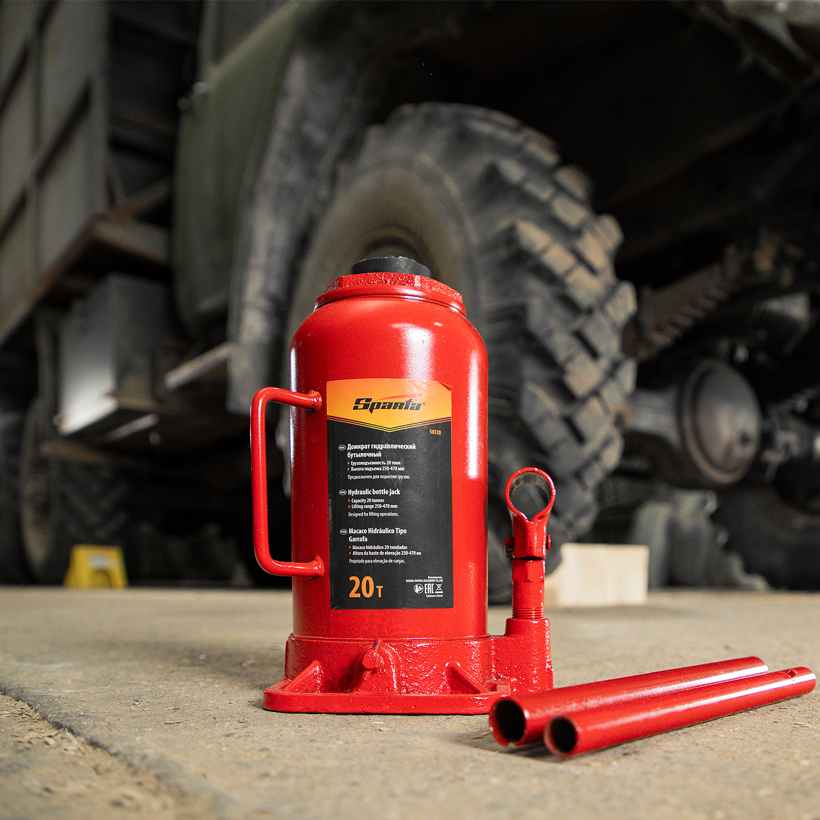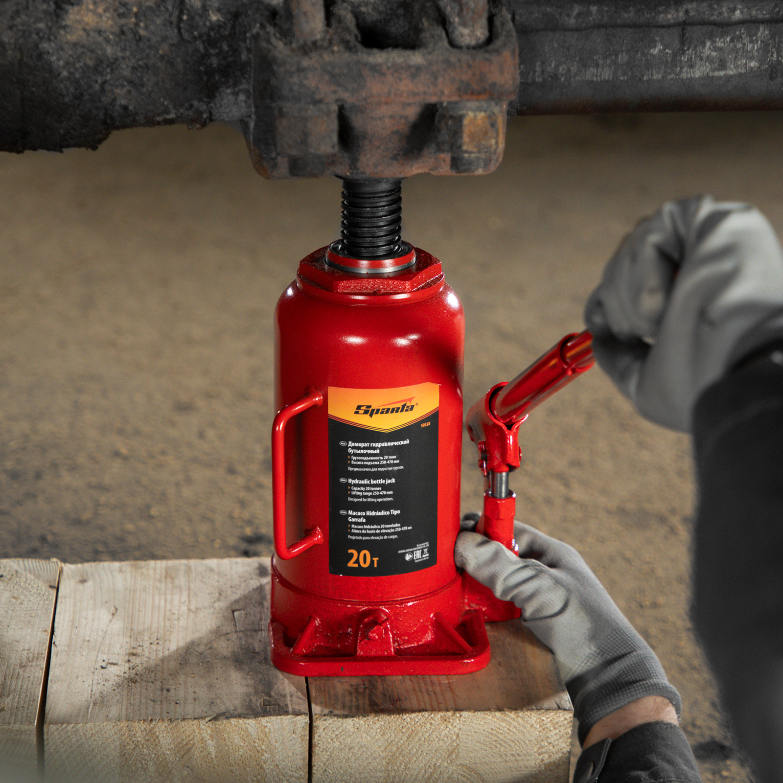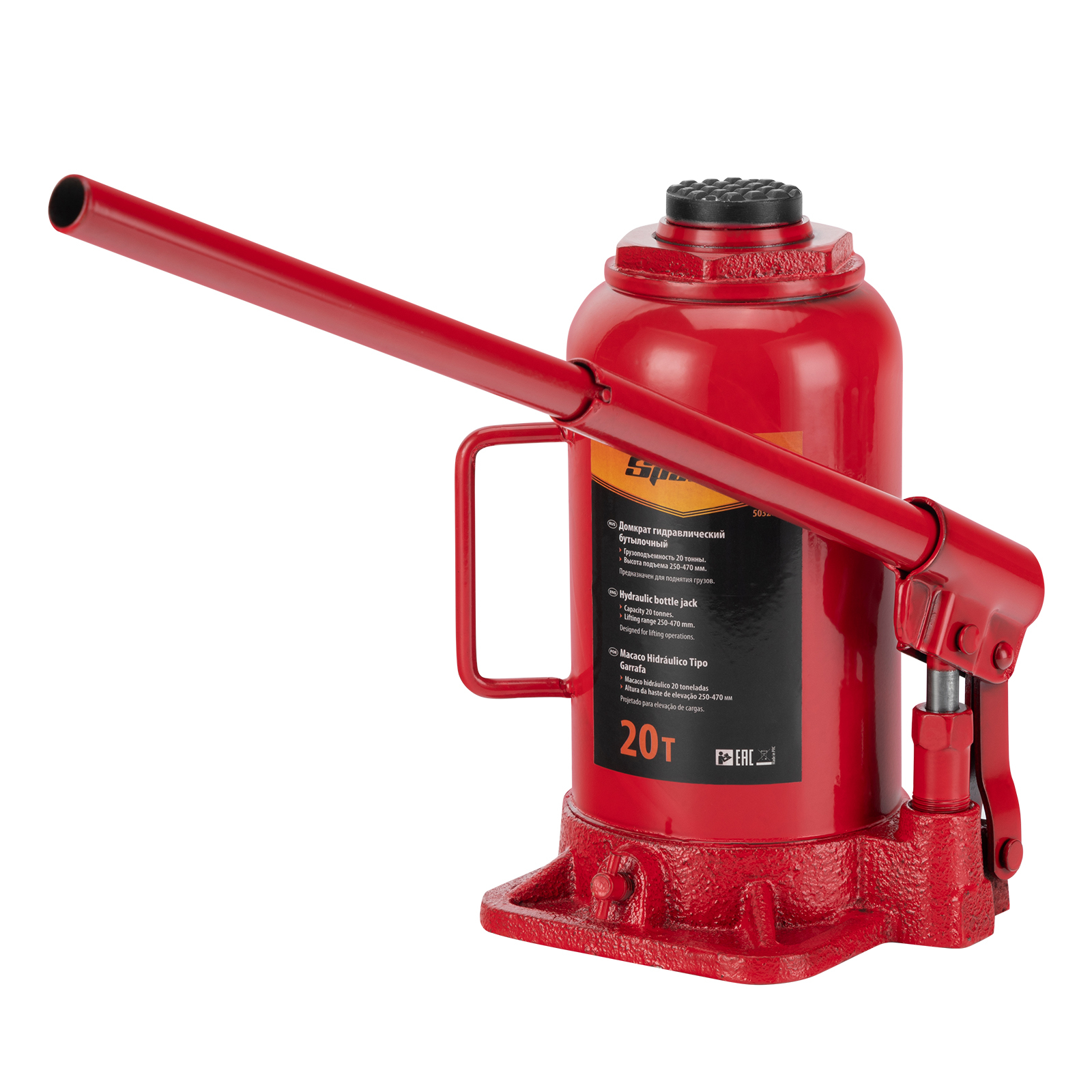 <p>Гидравлический бутылочный домкрат Sparta 50328 рассчитан на подъем грузов весом до 20 т на высоту от 250 до 470 мм. Он пригодится как автолюбителям в гараже, так и профессиональным мастерам в автосервисах. Домкрат обеспечивает плавный подъем груза без особых усилий со стороны пользователя.</p><h2>Преимущества</h2><ul><li>Надежность и долговечность — основание изготовлено из высокопрочного чугуна.</li><li>Ремонтопригодность — корпус крепится станине с помощью резьбового соединения.</li><li>Удобное хранение и транспортировка — домкрат оборудован съемным рычагом и весит 10,1 кг.</li></ul>