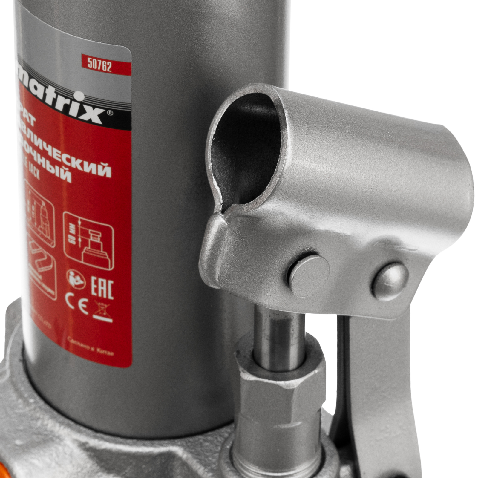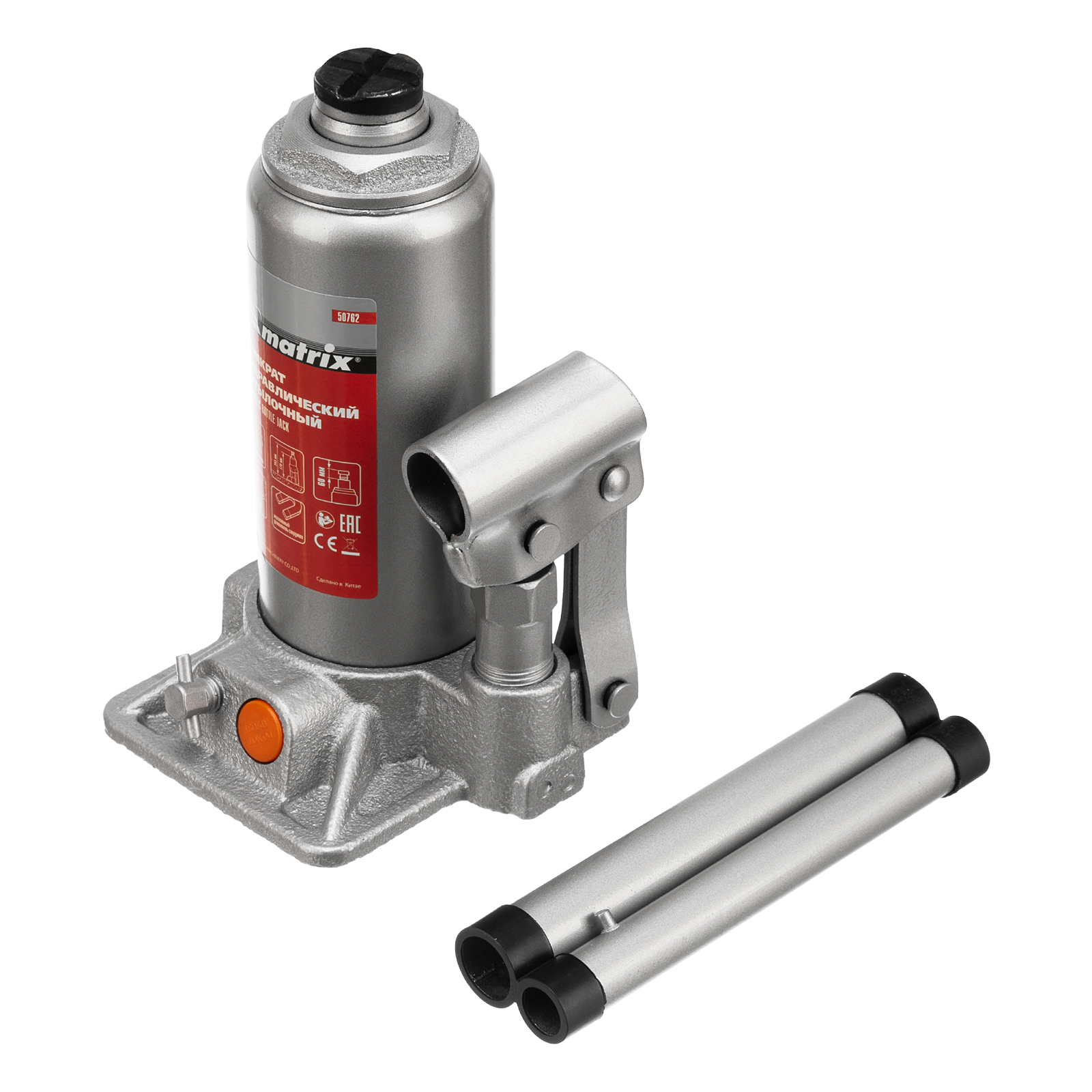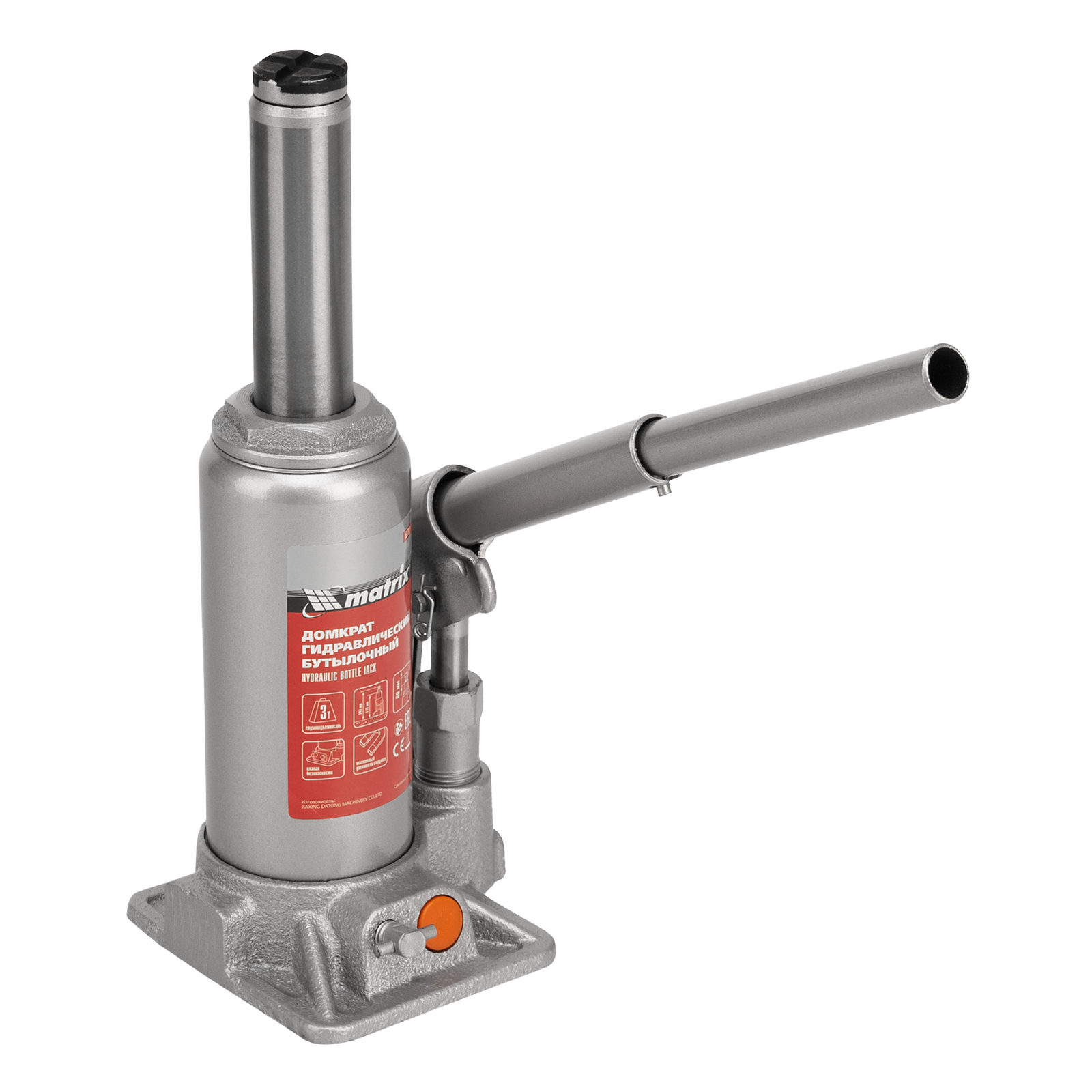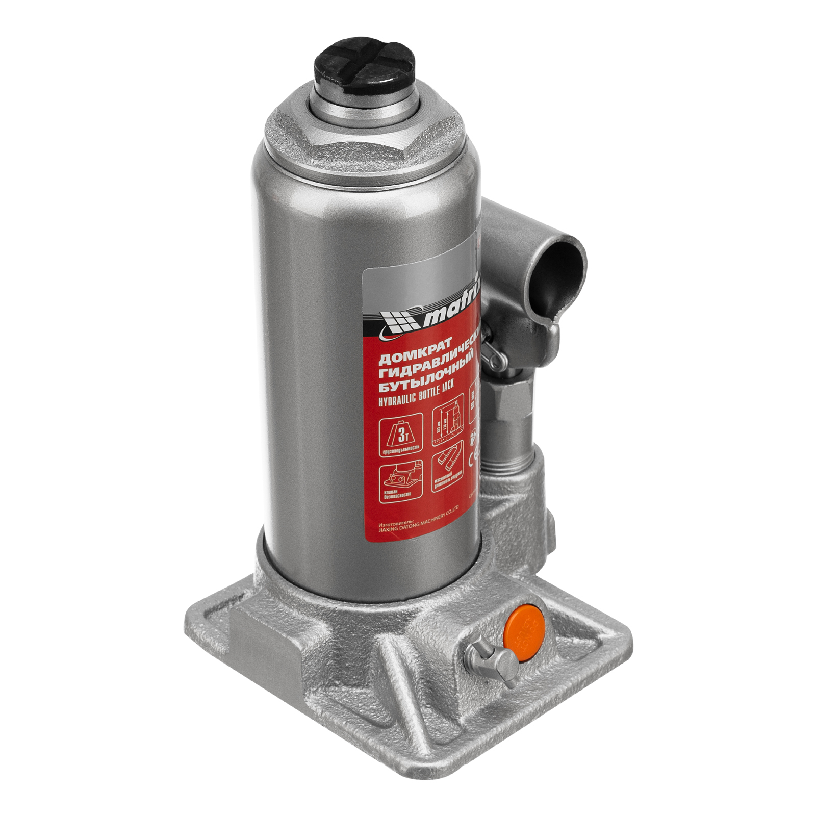 <p>Гидравлический бутылочный домкрат Matrix 50762 предназначен для быстрого поднятия грузов массой до 3 т на высоту 178-343 мм. Будет полезен автолюбителям и мастерам СТО в качестве полупрофессионального инструмента. Встроенный магнитный уловитель металлической стружки защищает резиновые уплотнители от повреждений.</p><h2>Преимущества</h2><ul><li>Защита от перегрузки — клапан безопасности не допускает поднятия груза массой более 3000 кг.</li><li>Надежность — подъемное устройство выполнено из прочной коррозионностойкой стали.</li><li>Разборный корпус — домкрат можно отремонтировать при необходимости.</li><li>Удобная транспортировка — домкрат весом 3 кг легко помещается в багажник авто.</li></ul>