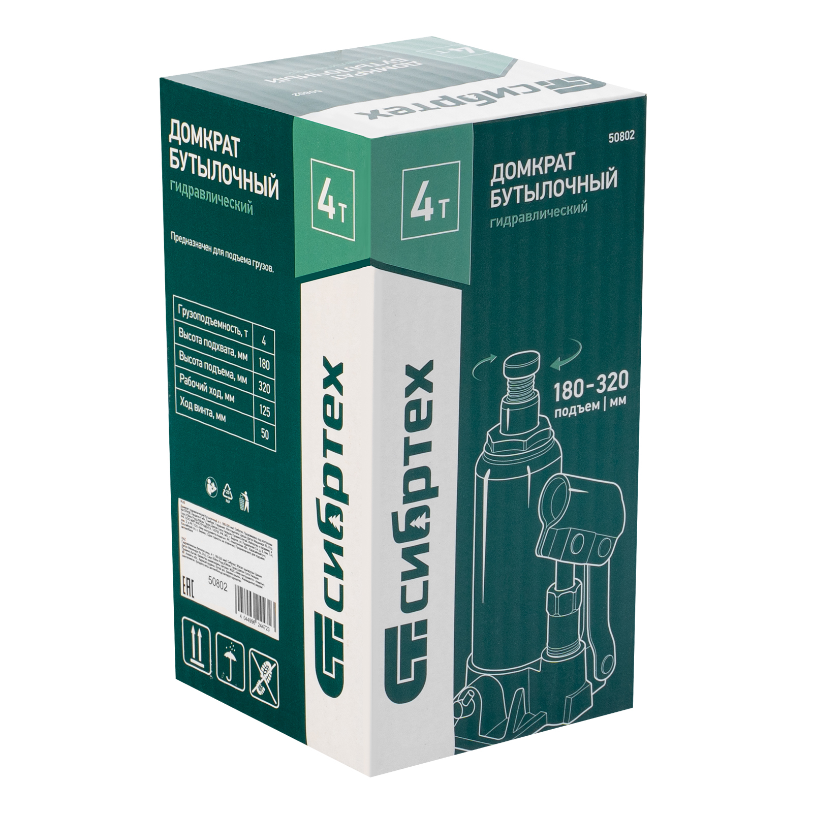 <p>Домкрат гидравлический бутылочный Сибртех 50802 предназначен для подъема грузов массой до 4 т на высоту от 180 до 320 мм. Не требует больших усилий от пользователя и значительно облегчает рабочий процесс. Домкрат будет полезен при проведении техобслуживания машины в автосервисе или гараже.</p><h2>Преимущества</h2><ul><li>Прочность и долговечность — корпус выполнен из стали, основание — из чугуна.</li><li>Разборная конструкция — корпус крепится к станине при помощи резьбового соединения, поэтому при необходимости домкрат можно отремонтировать.</li><li>Точная регулировка высоты подхвата — в конструкции предусмотрен выдвижной винт.</li><li>Удобное хранение и транспортировка — домкрат весит всего 2,2 кг, а благодаря съемному рычагу не занимает много места.</li></ul>
