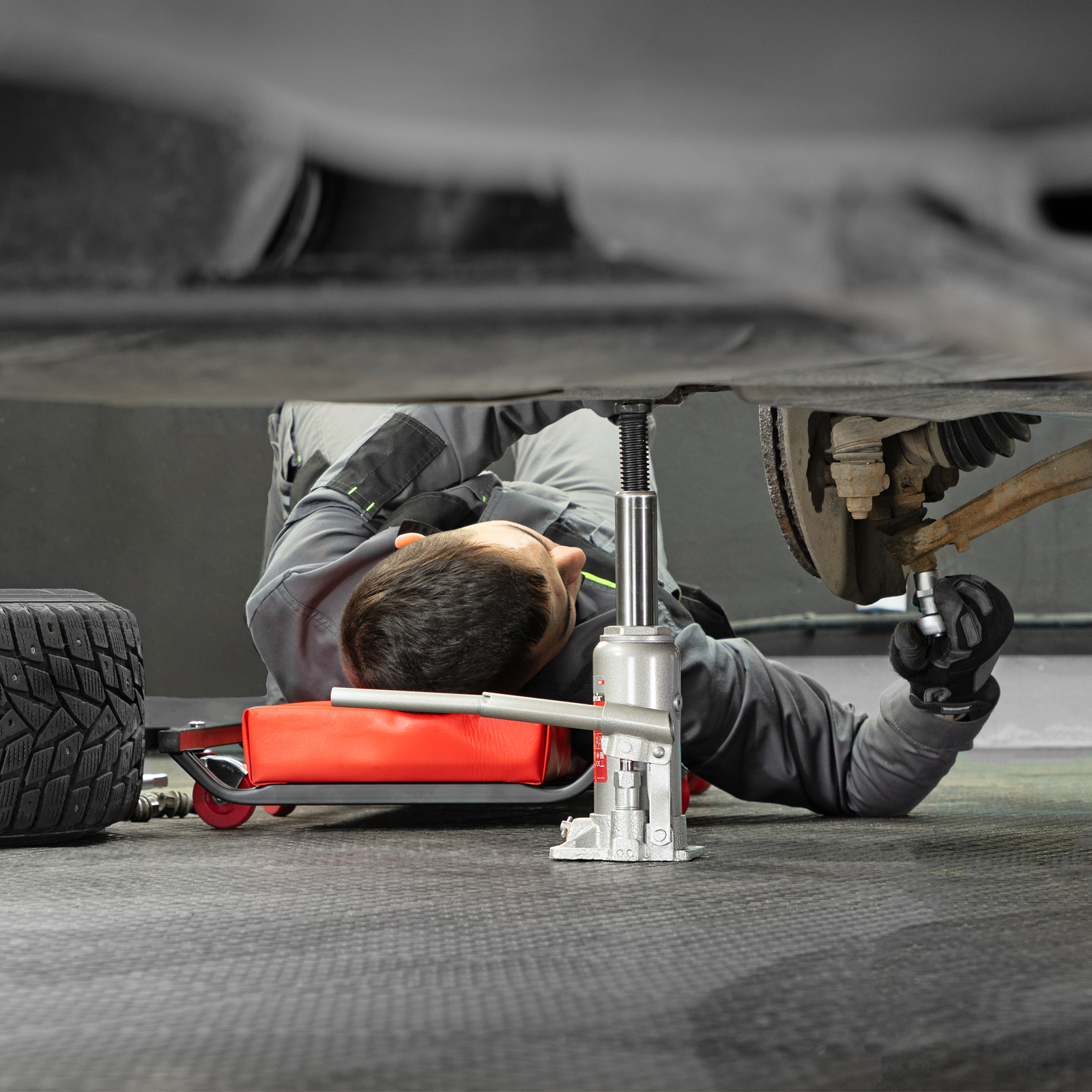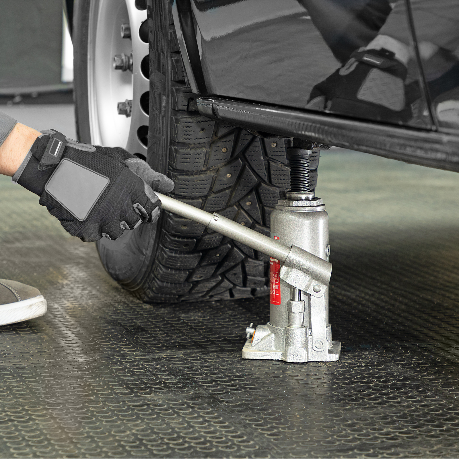 - Удобная транспортировка — домкрат весом 4,2 кг легко помещается в багажник авто.