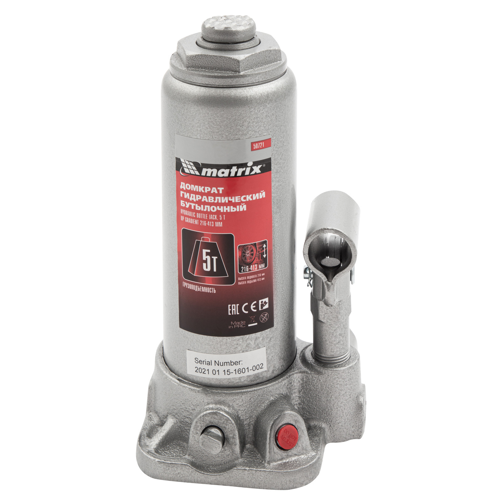 Домкрат гидравлический бутылочный, 5 т, высота подъема 216-413 мм Matrix