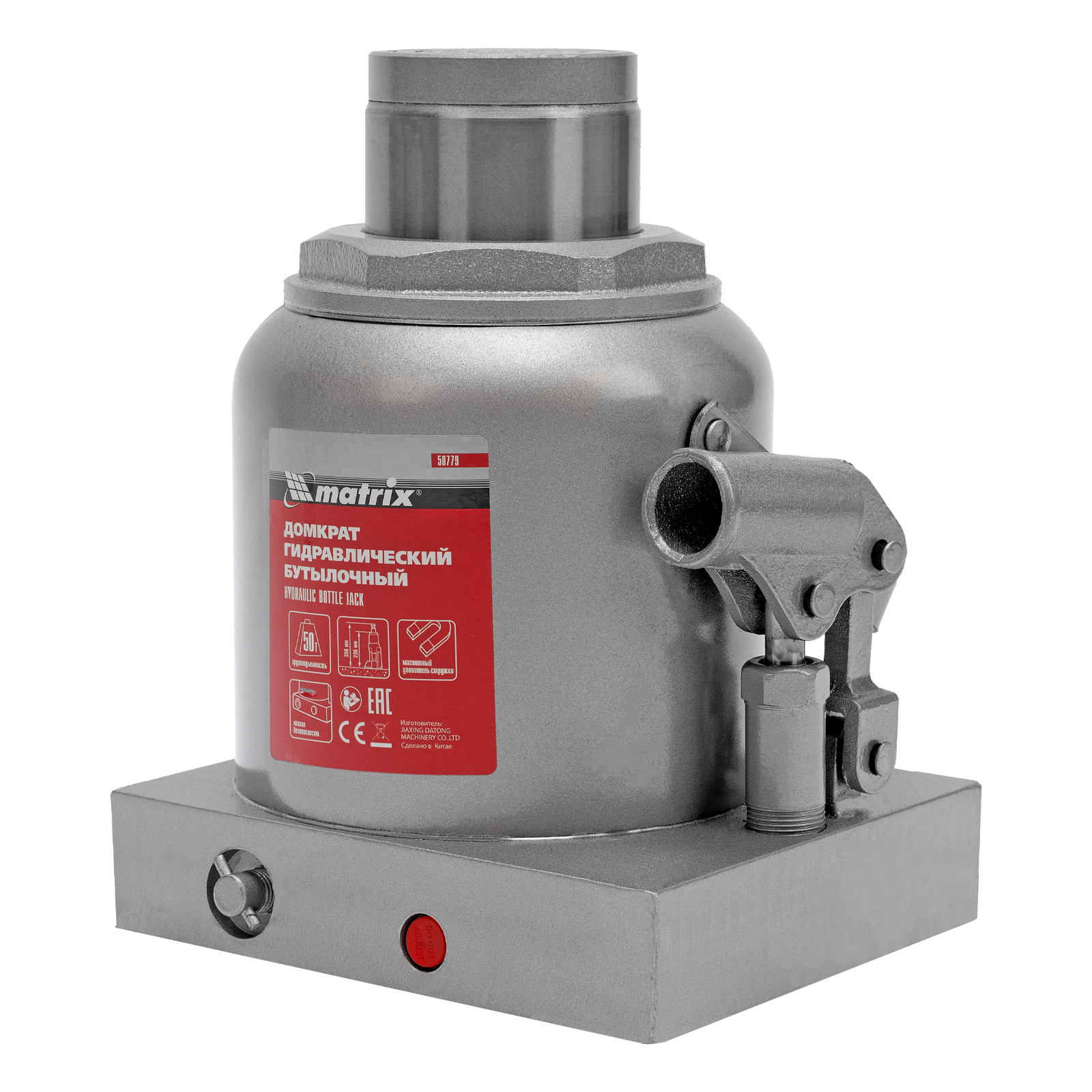Гидравлический бутылочный домкрат Matrix 50779 поднимает грузы весом до 50 т на высоту 236-356 мм и может использоваться в гараже, на станции ТО или строительной площадке. Встроенный магнитный уловитель собирает металлическую стружку, образующуюся в процессе работы, что защищает домкрат от преждевременного износа.