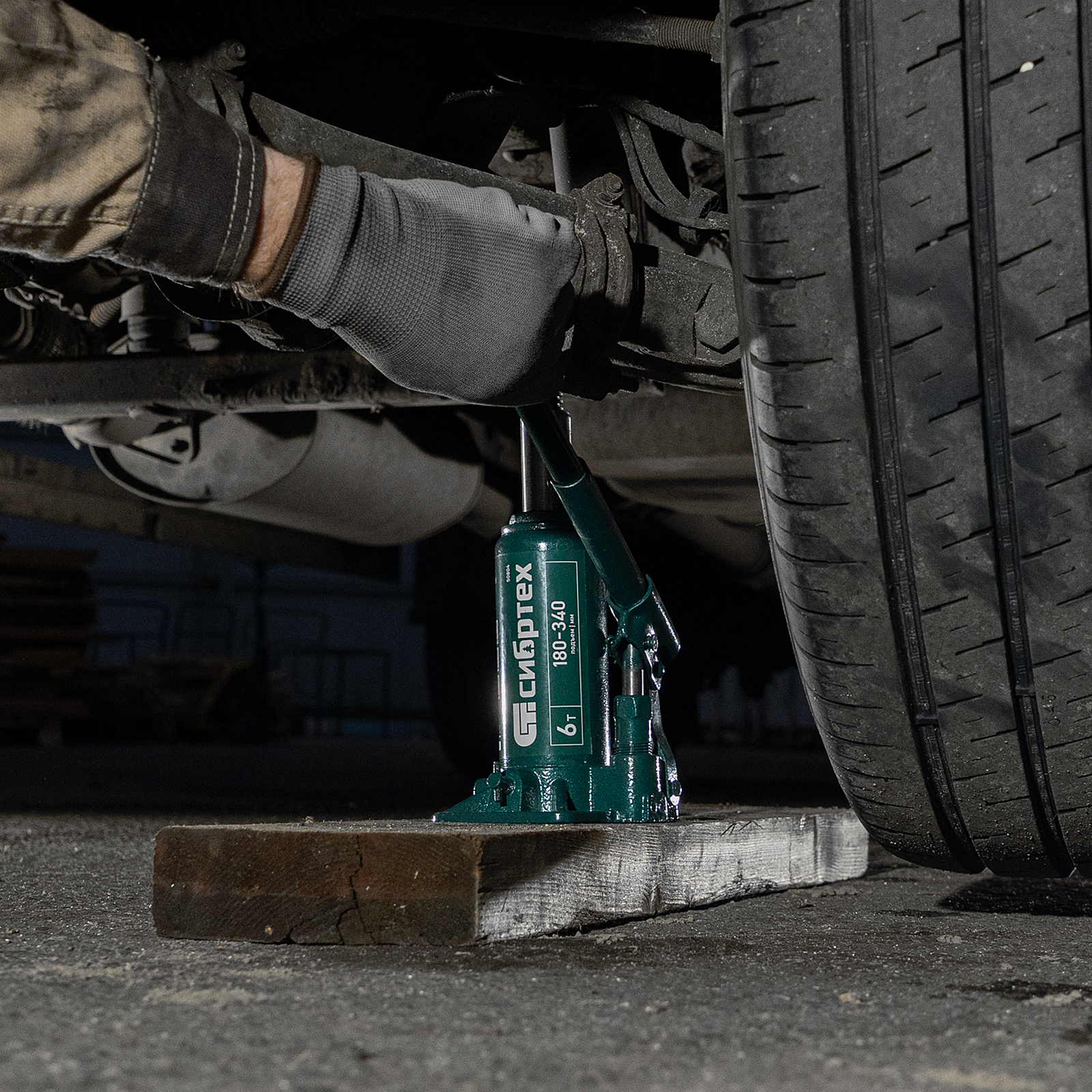 Домкрат гидравлический бутылочный Сибртех 50804 предназначен для подъема грузов массой до 6 т на высоту от 180 до 340 мм. Не требует больших усилий от пользователя и значительно облегчает рабочий процесс. Домкрат будет полезен при проведении техобслуживания машины в автосервисе или гараже.