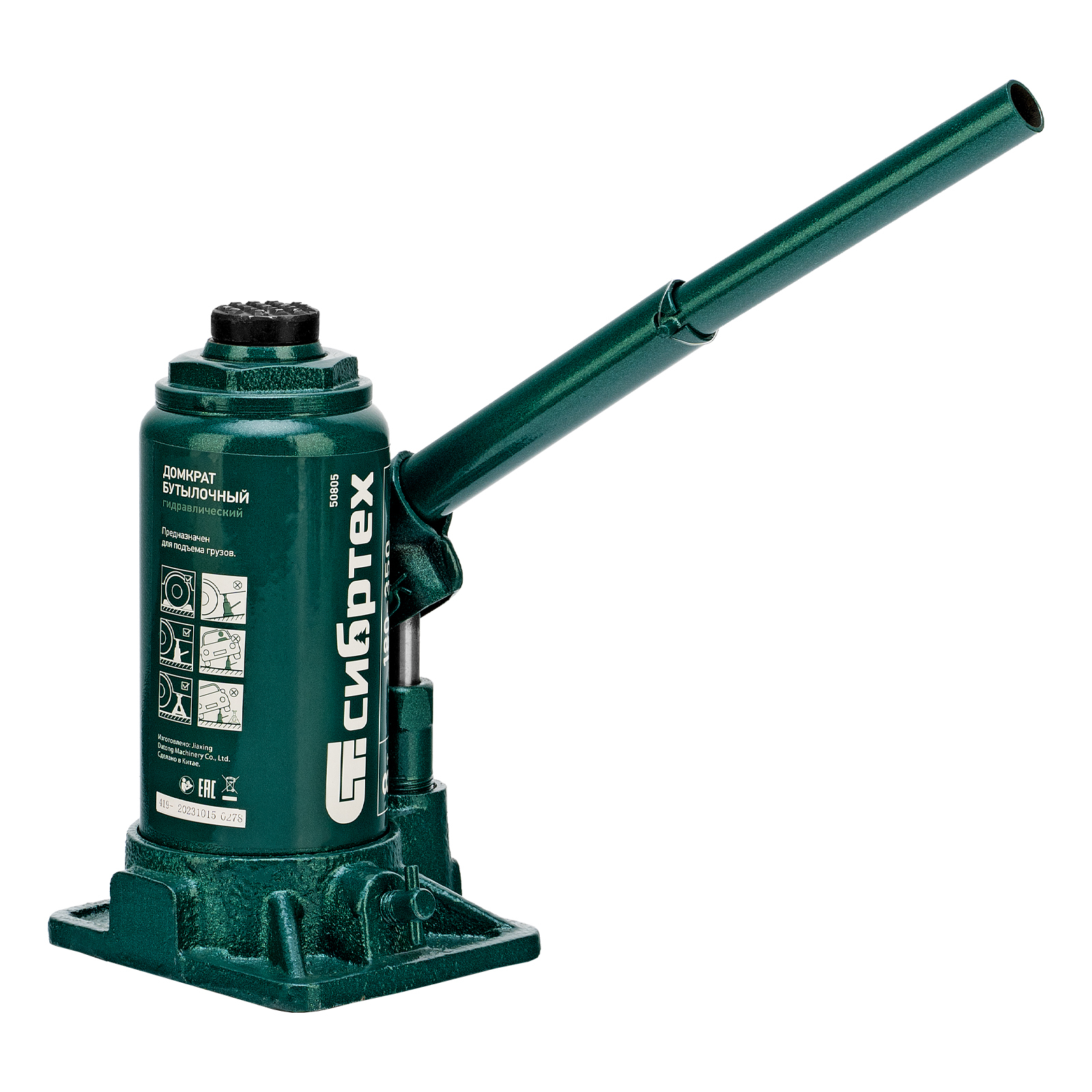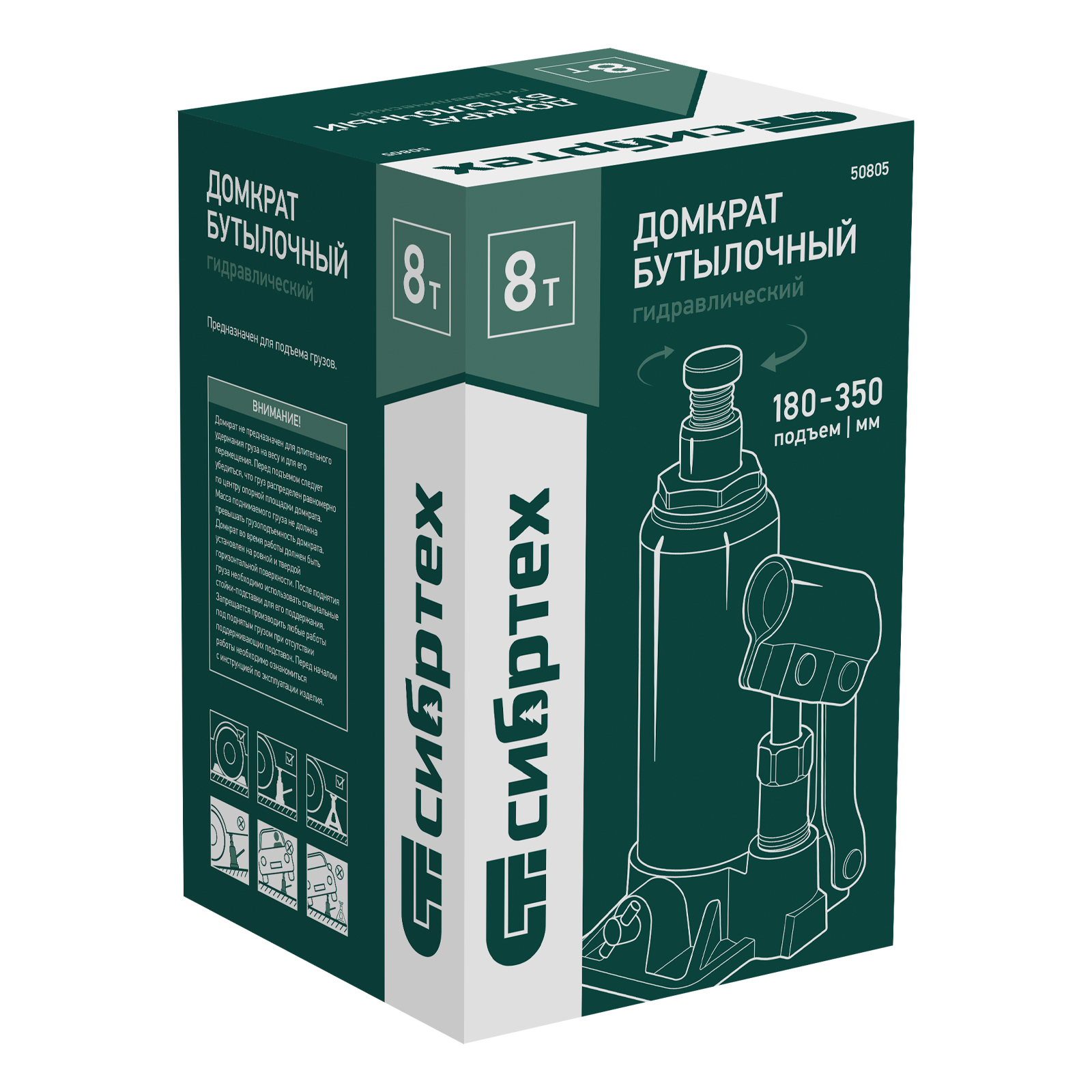 <p>Домкрат гидравлический бутылочный Сибртех 50805 предназначен для подъема грузов массой до 8 т на высоту от 180 до 350 мм. Не требует больших усилий от пользователя и значительно облегчает рабочий процесс. Домкрат будет полезен при проведении техобслуживания машины в автосервисе или гараже.</p><h2>Преимущества</h2><ul><li>Прочность и долговечность — корпус выполнен из стали, основание — из чугуна.</li><li>Разборная конструкция — корпус крепится к станине при помощи резьбового соединения, поэтому при необходимости домкрат можно отремонтировать.</li><li>Точная регулировка высоты подхвата — в конструкции предусмотрен выдвижной винт.</li><li>Удобное хранение и транспортировка — домкрат весит всего 3,7 кг, а благодаря съемному рычагу не занимает много места.</li></ul>