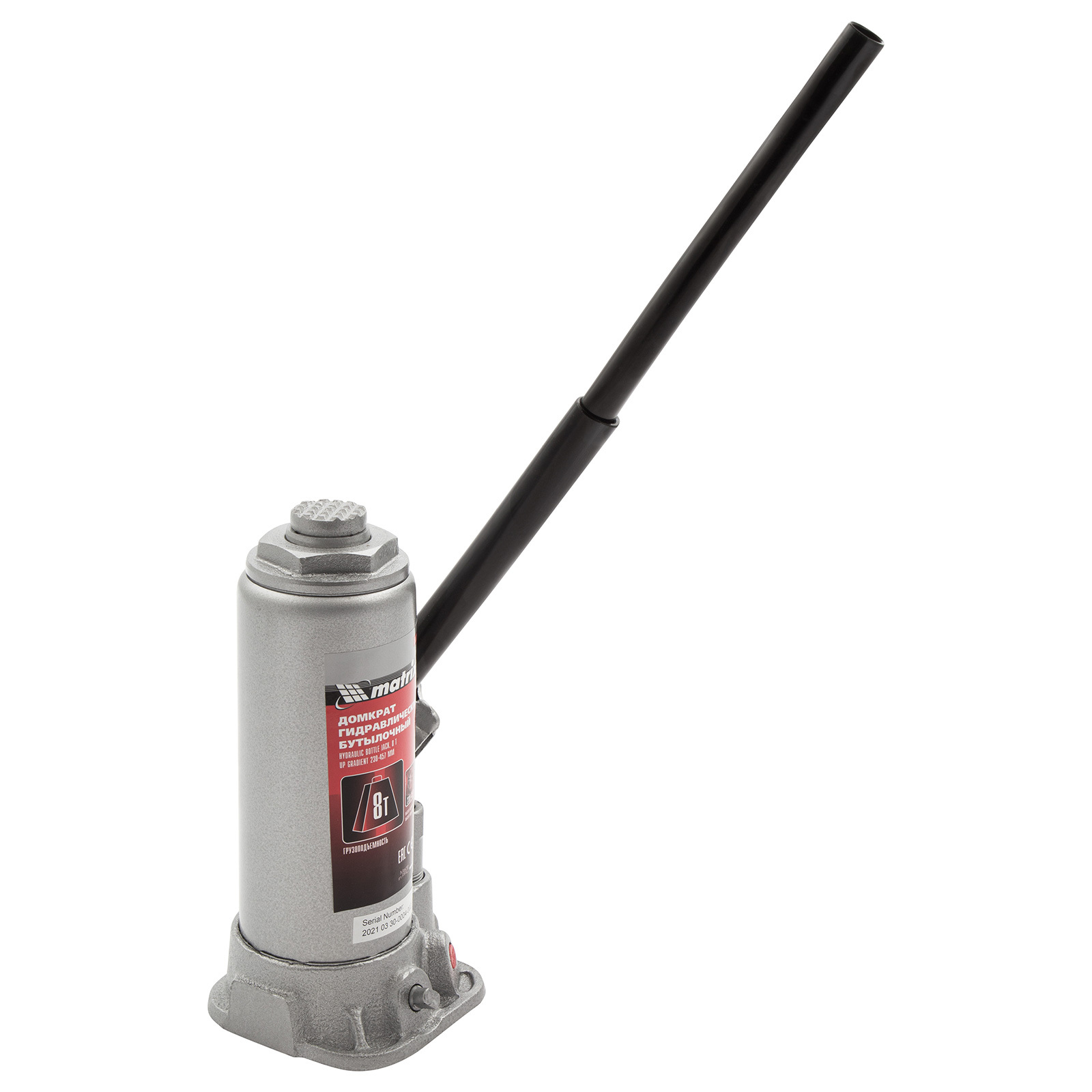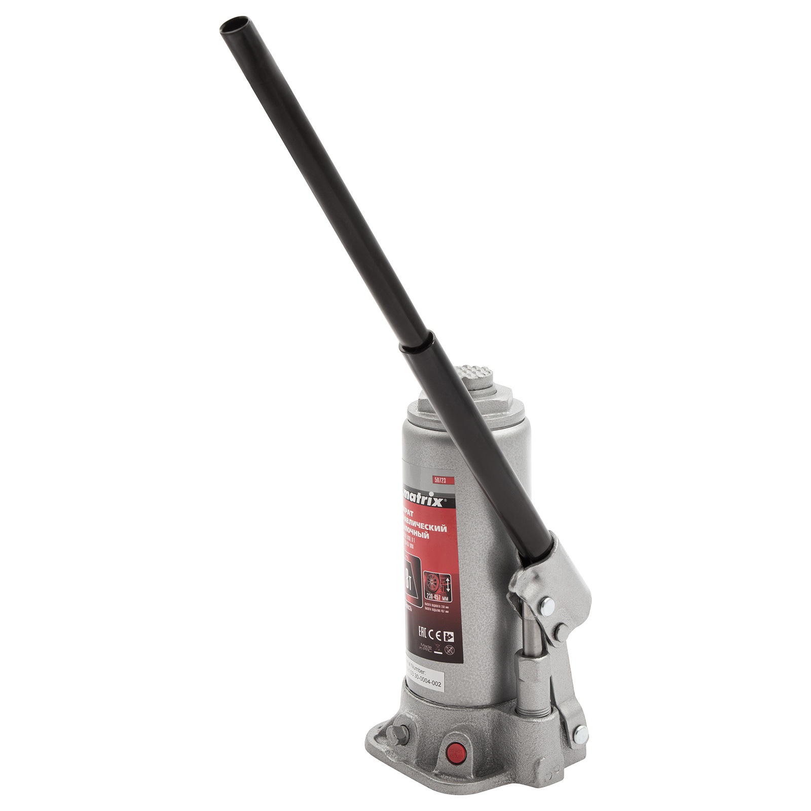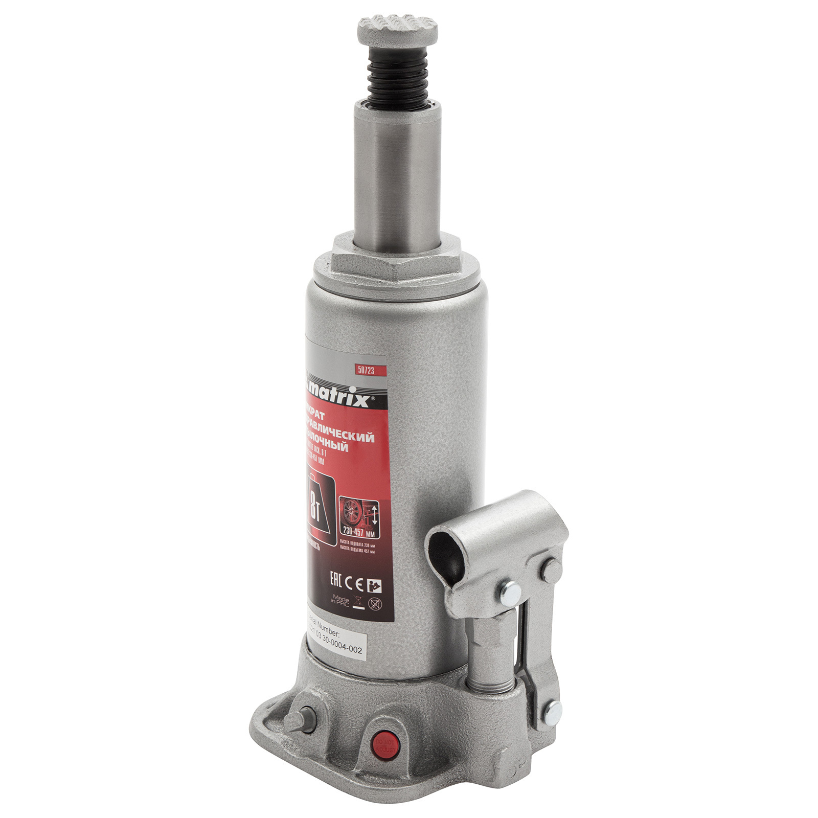 Домкрат гидравлический бутылочный, 8 т, высота подъема 230-457 мм Matrix