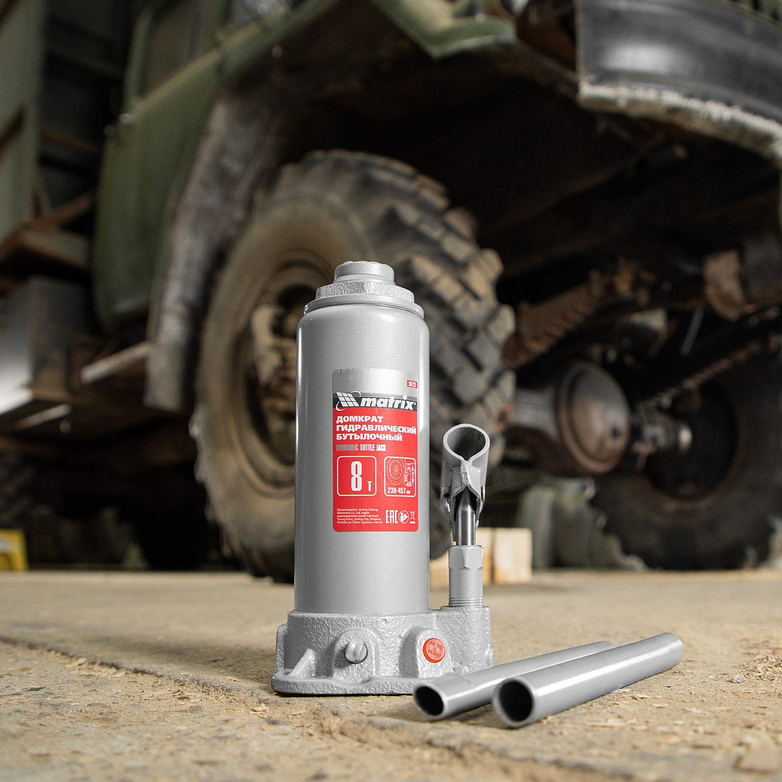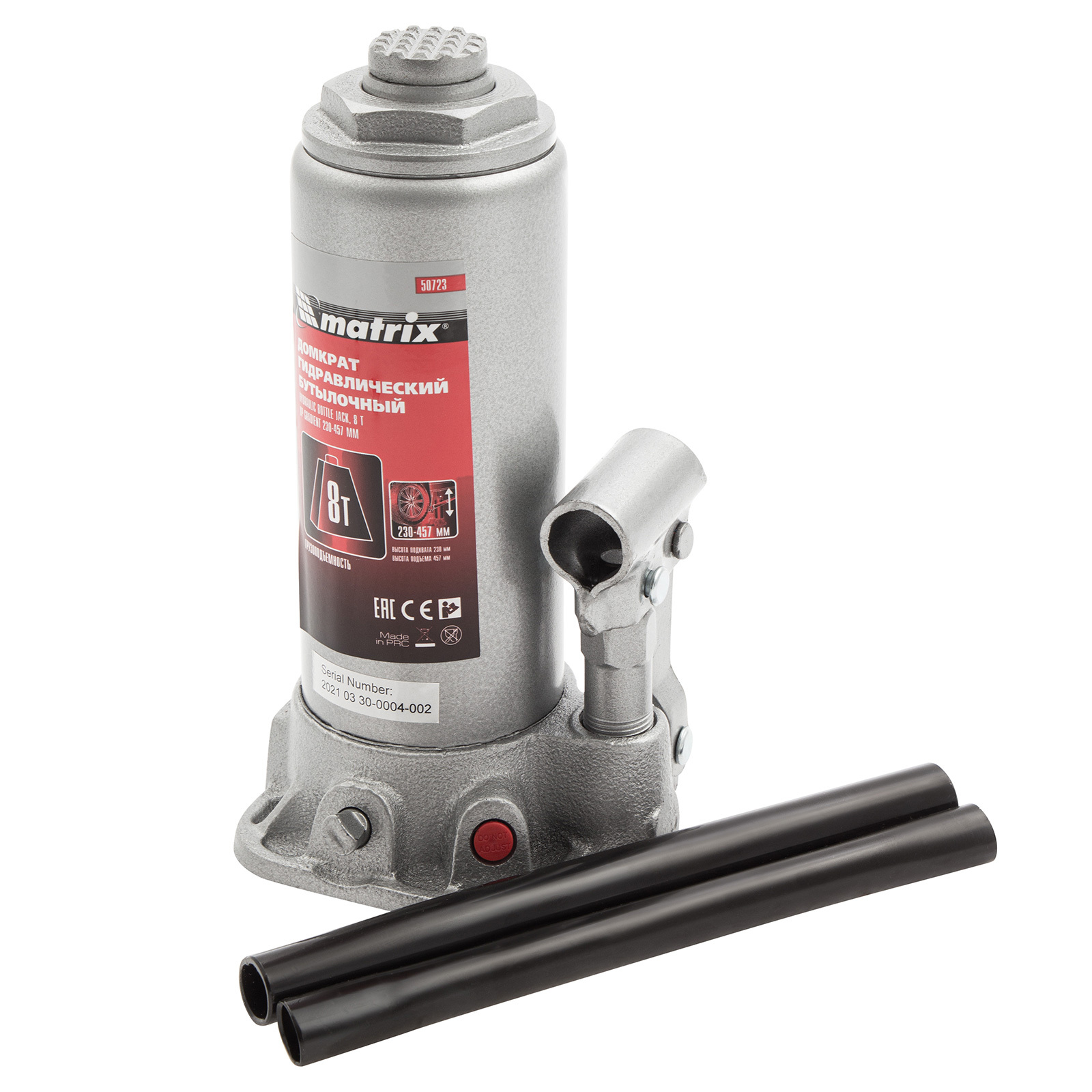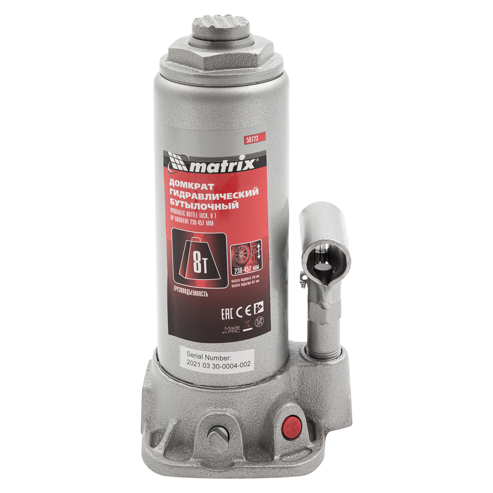 Домкрат гидравлический бутылочный, 8 т, высота подъема 230-457 мм Matrix