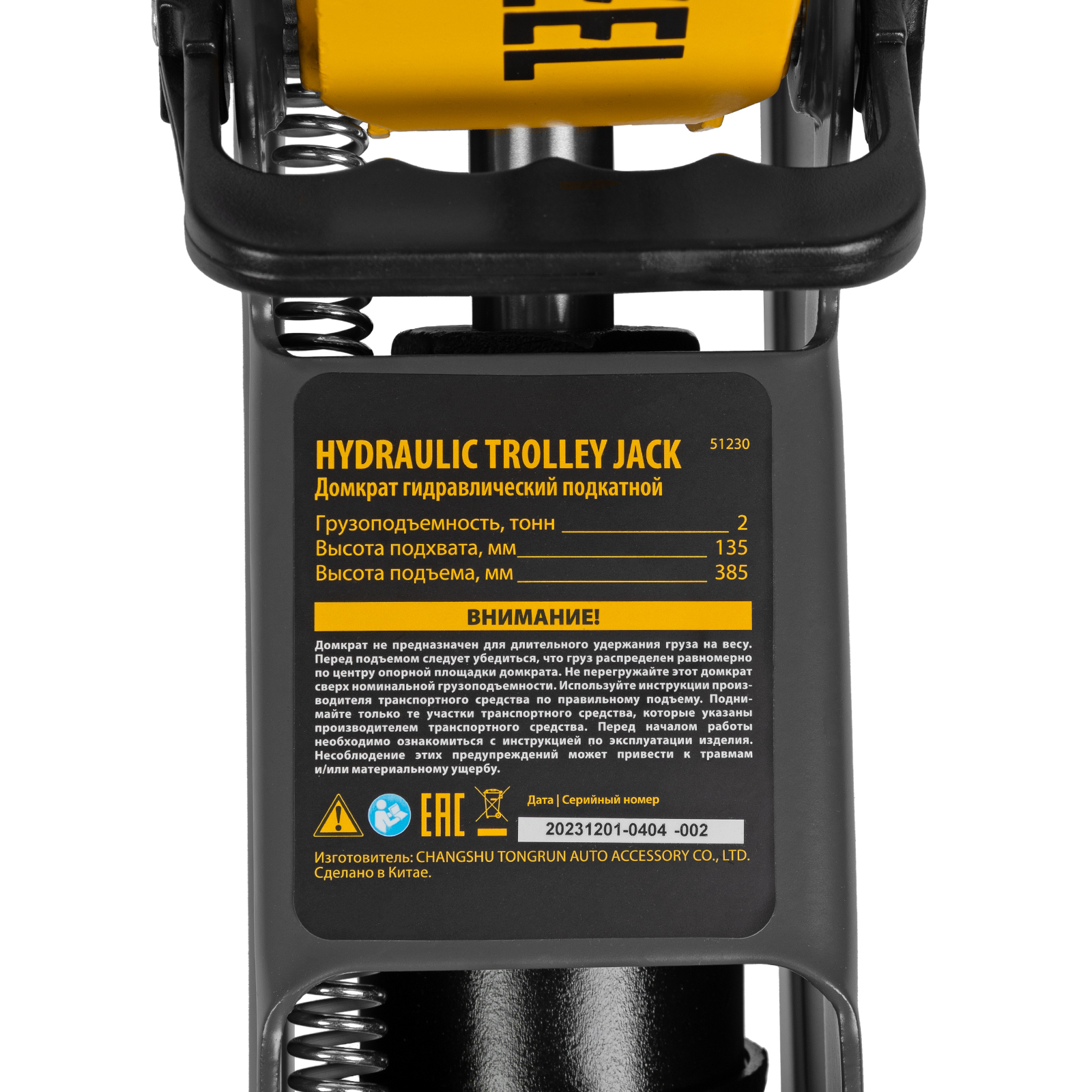 Домкрат гидравлический подкатной, 2 т, 135-385 мм Denzel