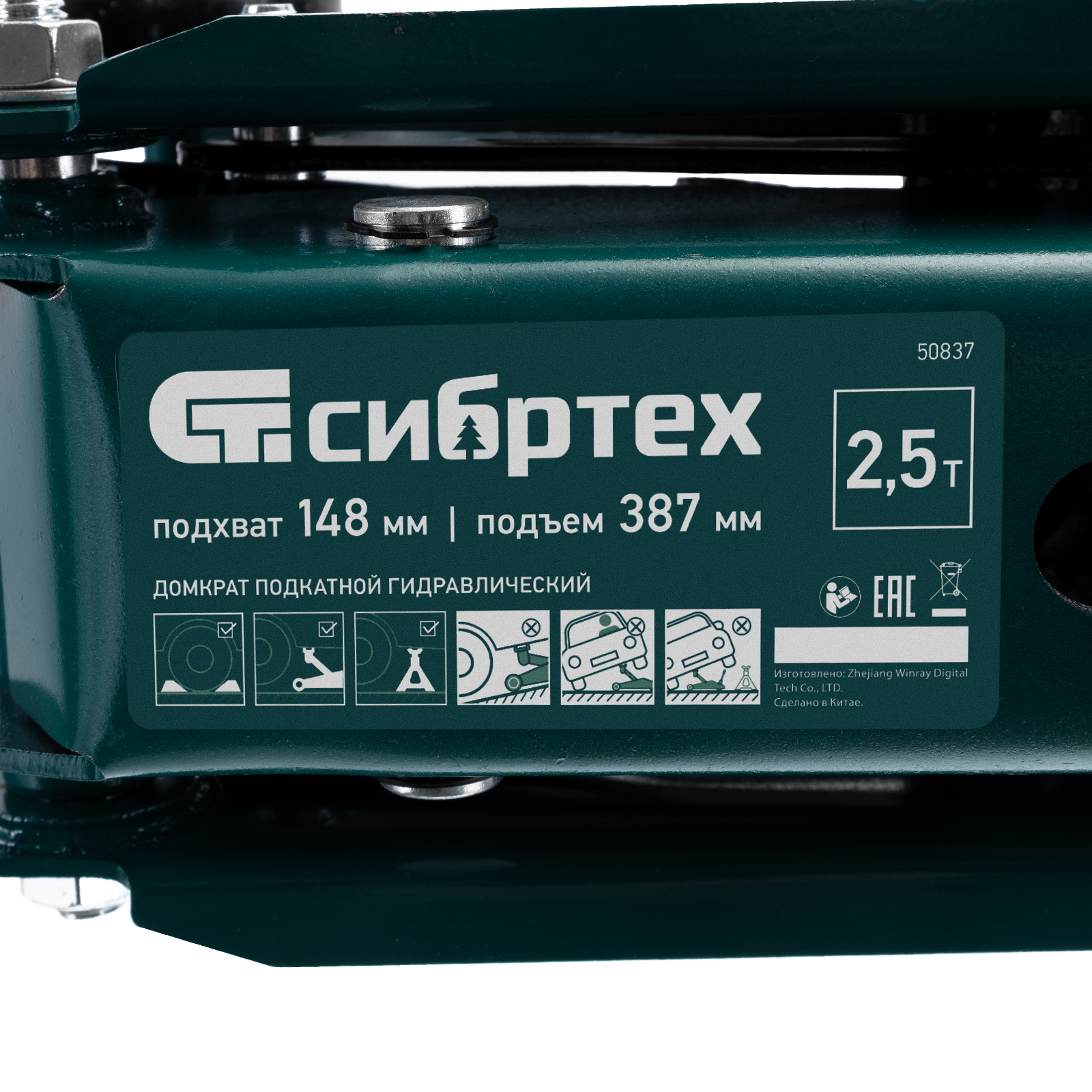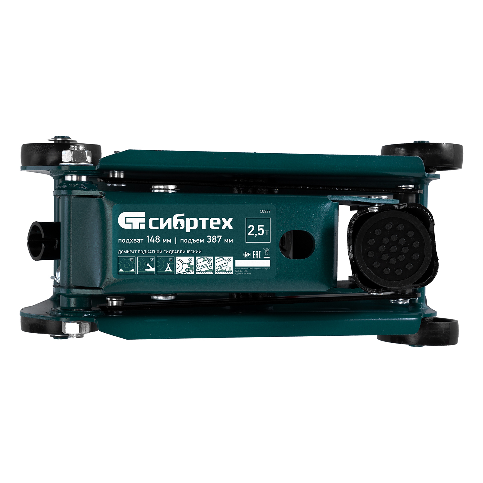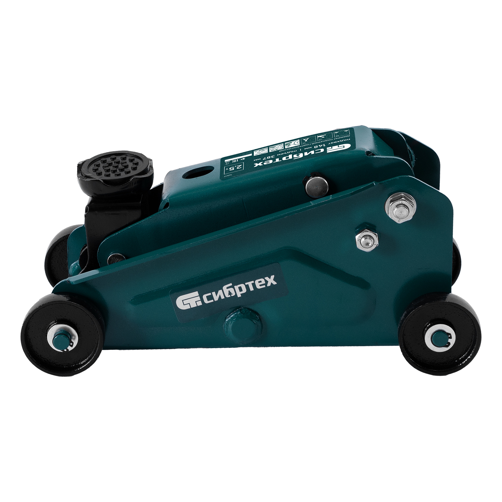<p>Гидравлический подкатной домкрат Сибртех 50837, поставляющийся в пластиковом кейсе, с высотой подхвата 148 мм, предназначен для подъема грузов массой до 2,5 т на высоту до 387 мм. Применяется для обслуживания автомобилей со стандартным клиренсом. Компактный домкрат подходит для самостоятельного использования автовладельцами.</p><h2>Преимущества</h2><ul><li>Безопасность — клапан сброса избыточного давления защищает домкрат от перегрузки, предотвращая подъем груза массой более 2,5 т.</li><li>Маневренность — благодаря поворотным колесам домкрат можно быстро подвести под груз.</li><li>Небольшие габариты — подъемное устройство можно разместить в багажнике автомобиля.</li><li>Удобное хранение и транспортировка — в комплект поставки включен прочный пластиковый кейс, домкрат весит 9,6 кг.</li></ul>
