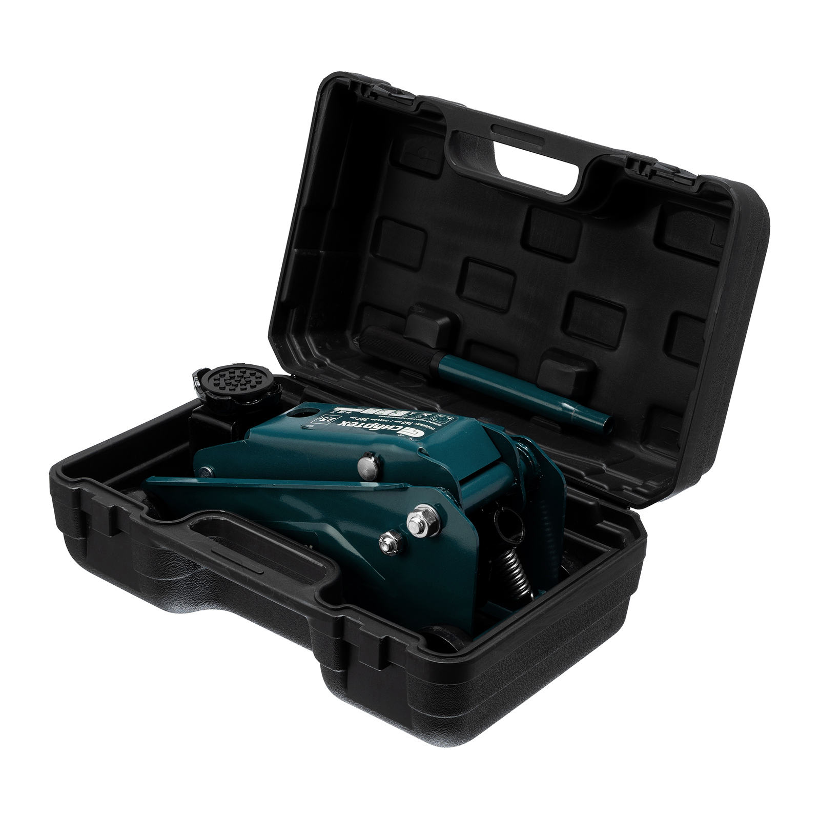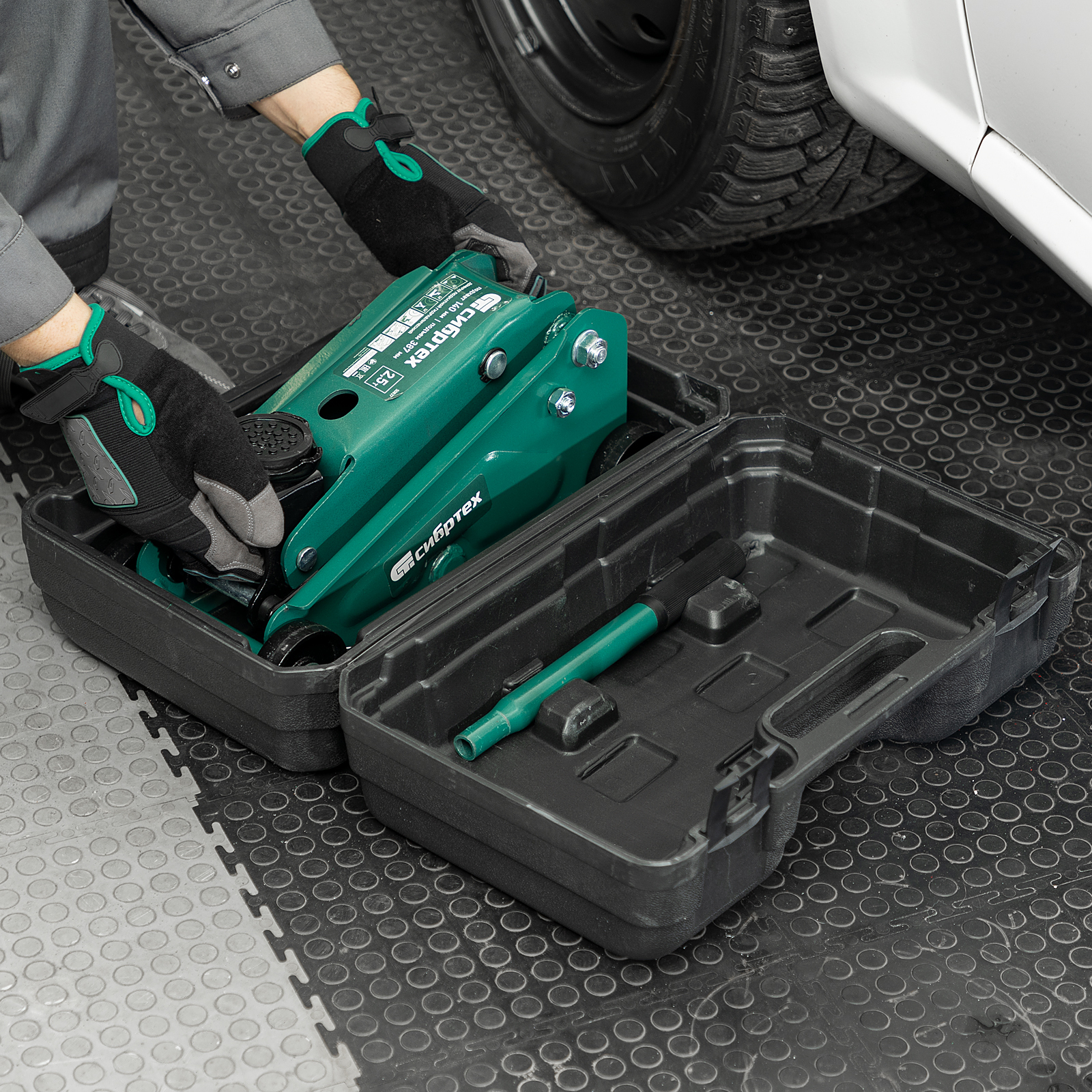 - Удобное хранение и транспортировка — в комплект поставки включен прочный пластиковый кейс, домкрат весит 9,6 кг.