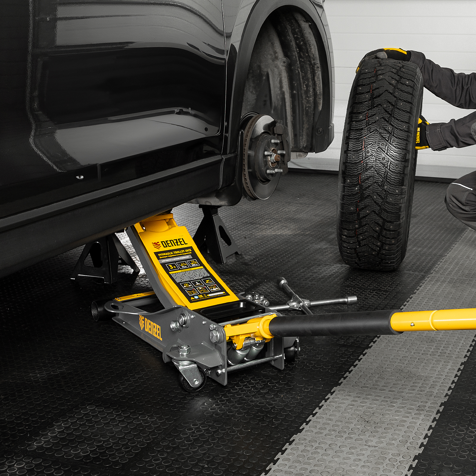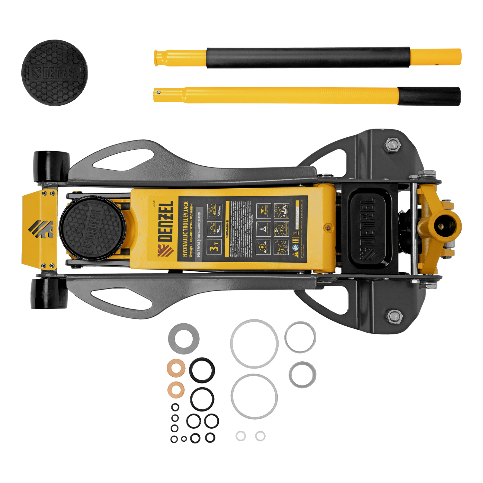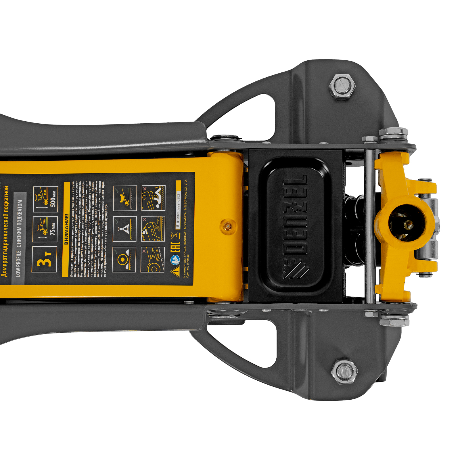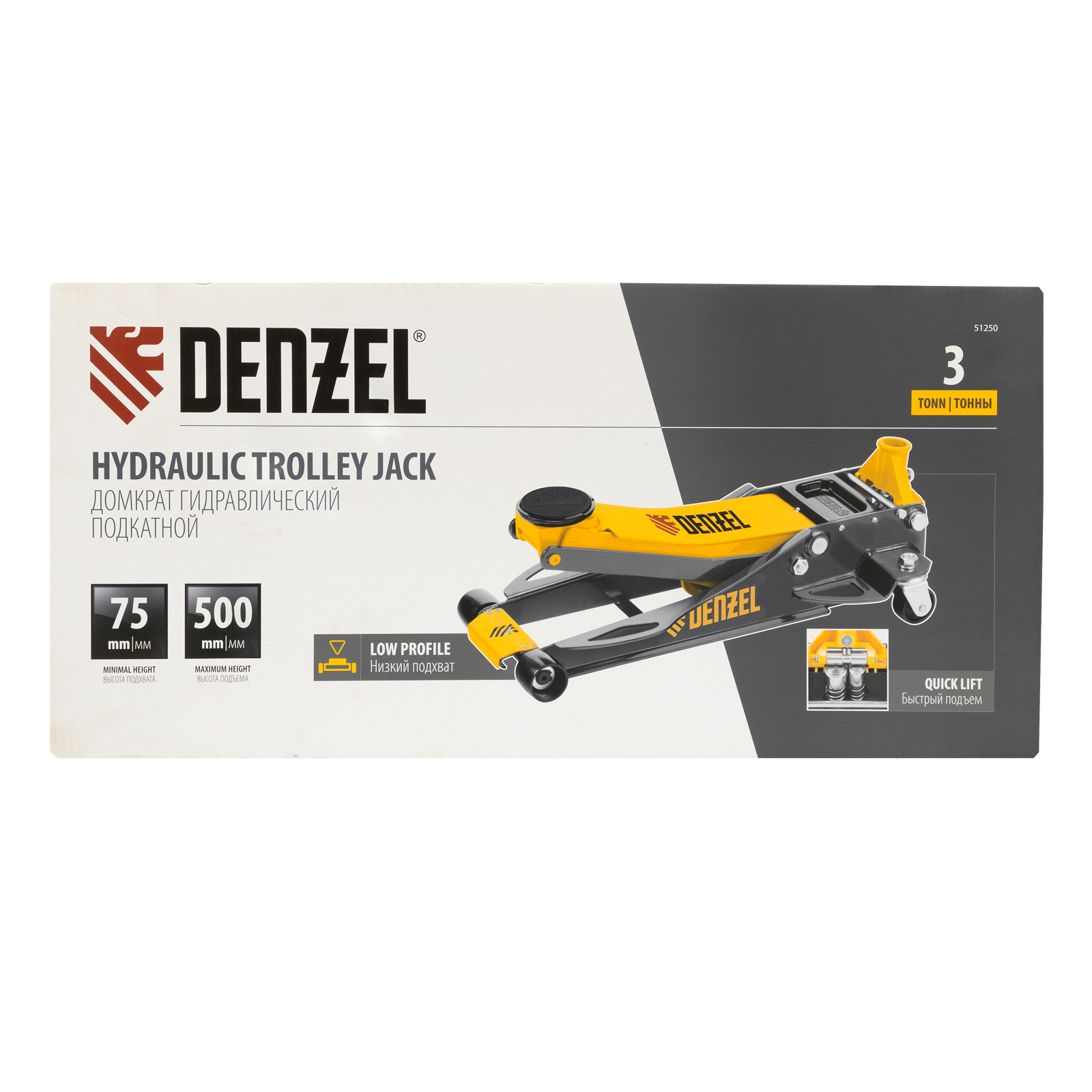 Домкрат гидравлический подкатной, 3 т, 75-500 мм, быстрый подъем, низкий подхват, проф. Denzel