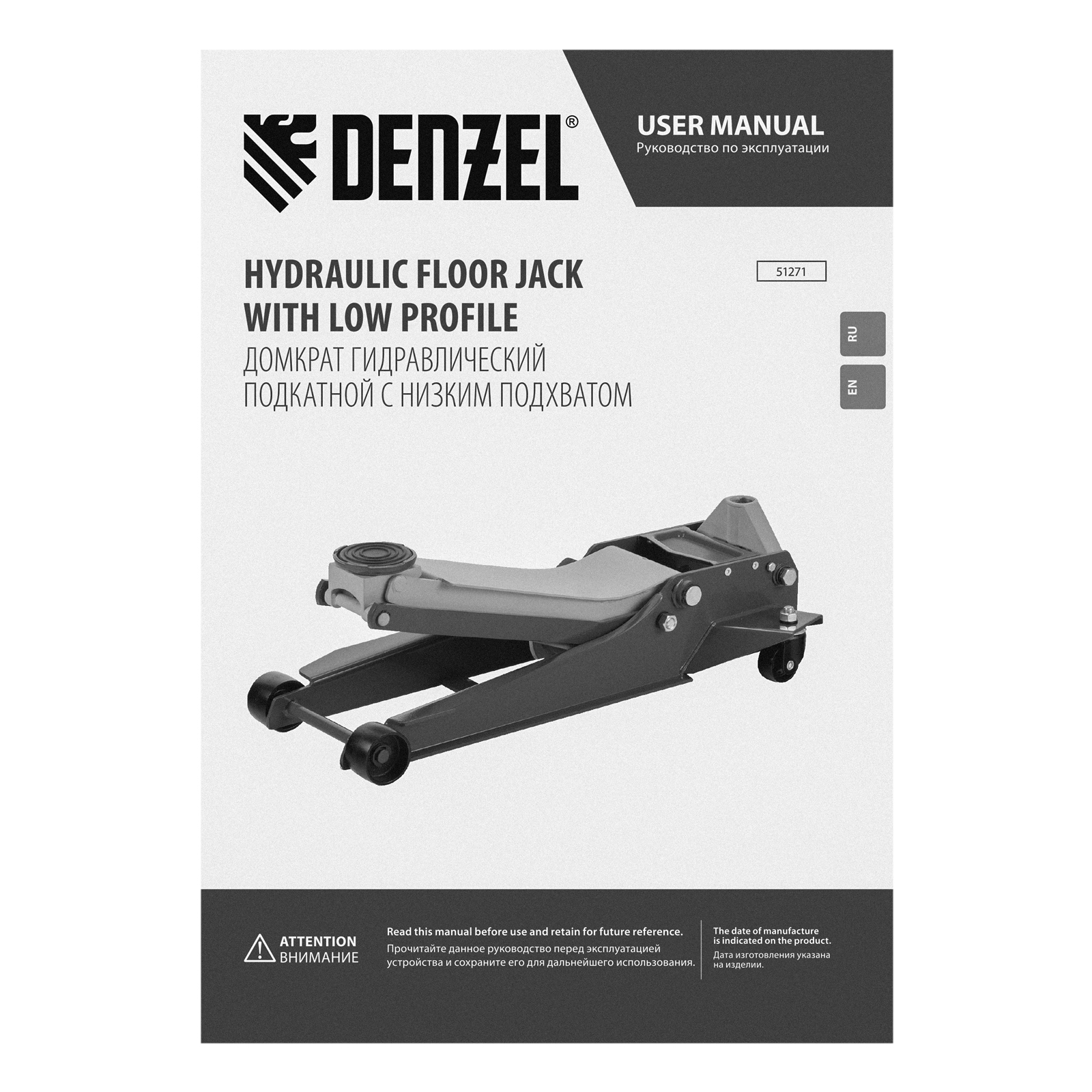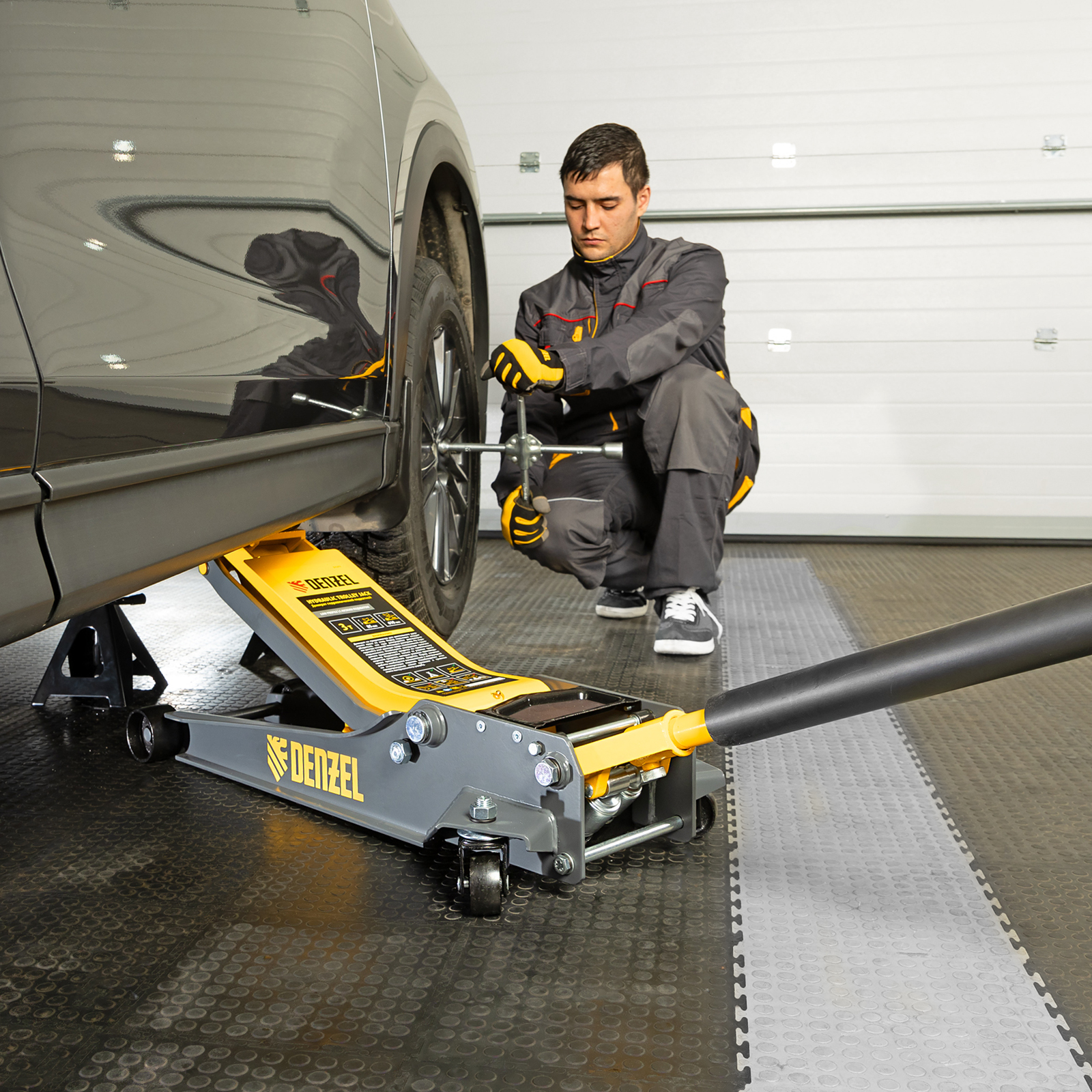 Домкрат гидравлический подкатной, 3 т, 85-610 мм, быстрый подъем, низ. подхват, проф, SUV Denzel