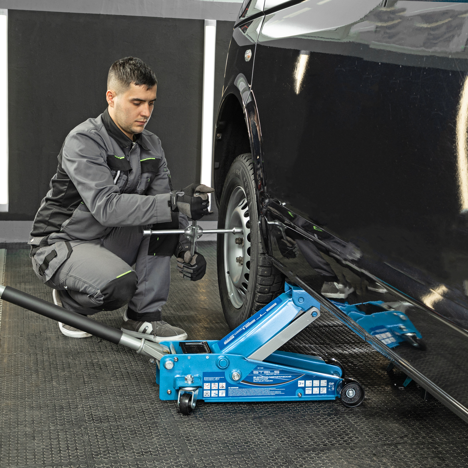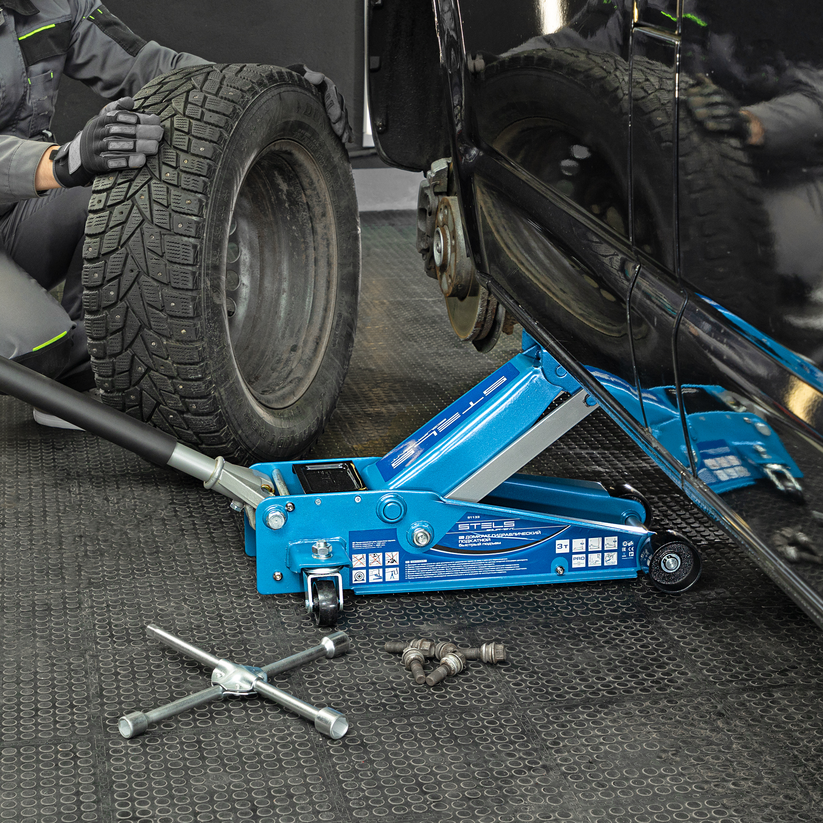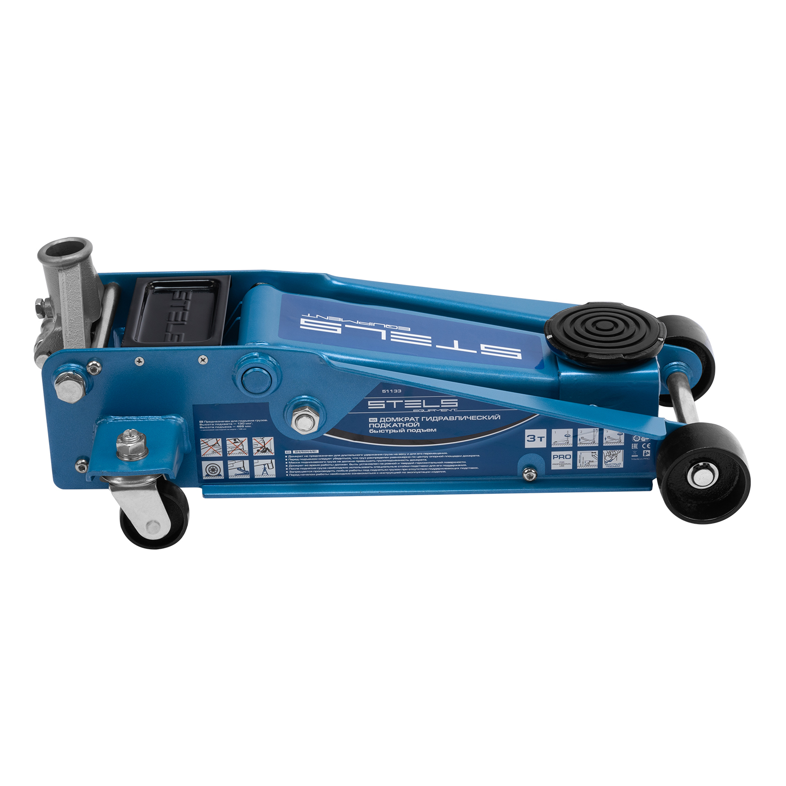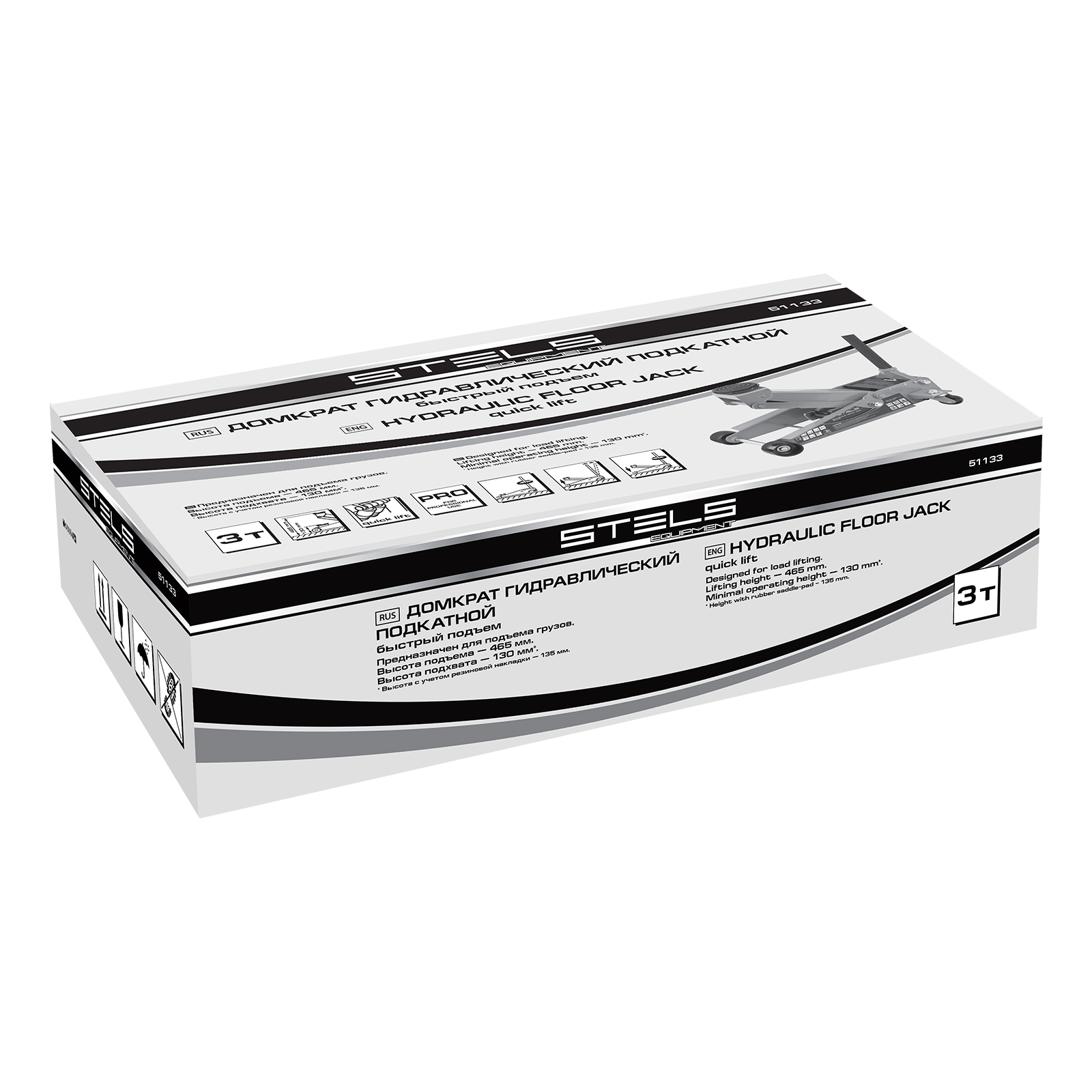 Профессиональный подкатной гидравлический домкрат Stels QUICK LIFT 51133 используется для быстрого подъема на высоту 130-465 мм всех типов автомобилей со стандартным клиренсом и массой до 3 тонн. Благодаря системе QUICK LIFT для достижения предельной высоты достаточно 7 качков рукоятки. Домкрат подходит для использования на станциях техобслуживания и шиномонтажа.