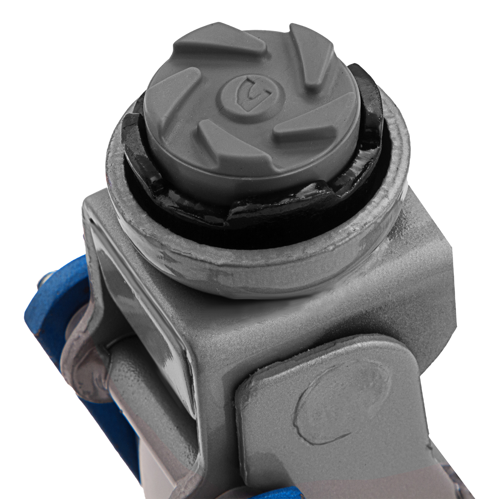 - Удобная транспортировка — переставляемая обрезиненная рукоятка позволяет перемещать домкрат с места на место.