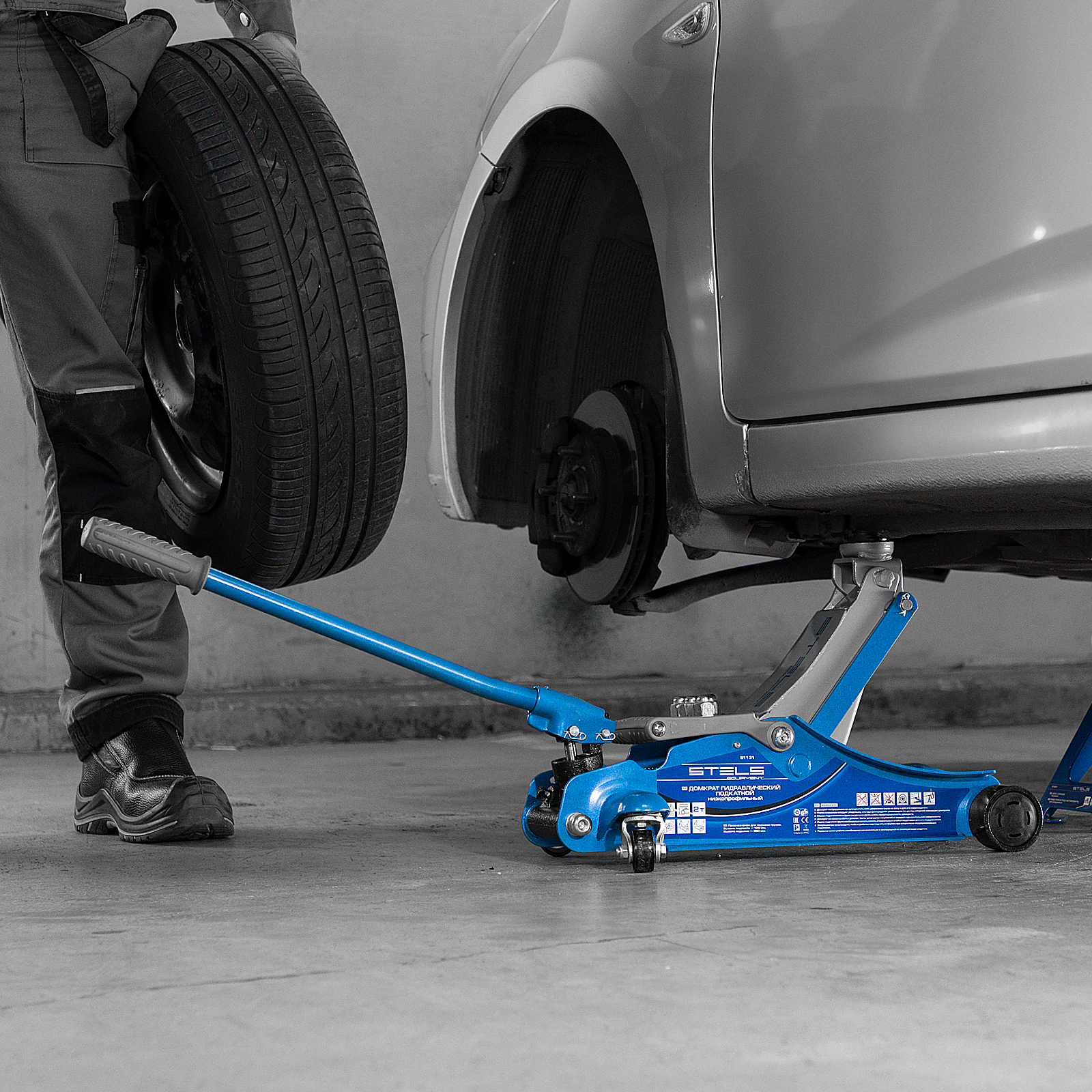 Подкатной гидравлический домкрат Stels Low Profile 51131 с поворотной рукояткой позволяет поднимать грузы весом до 2 т на высоту от 100 до 350 мм. За счет низкого подхвата 100 мм используется для обслуживания автомашин с невысоким дорожным просветом. Благодаря поворотной ручке позволяет работать в условиях нехватки пространства. Домкрат подходит для самостоятельного обслуживания авто.