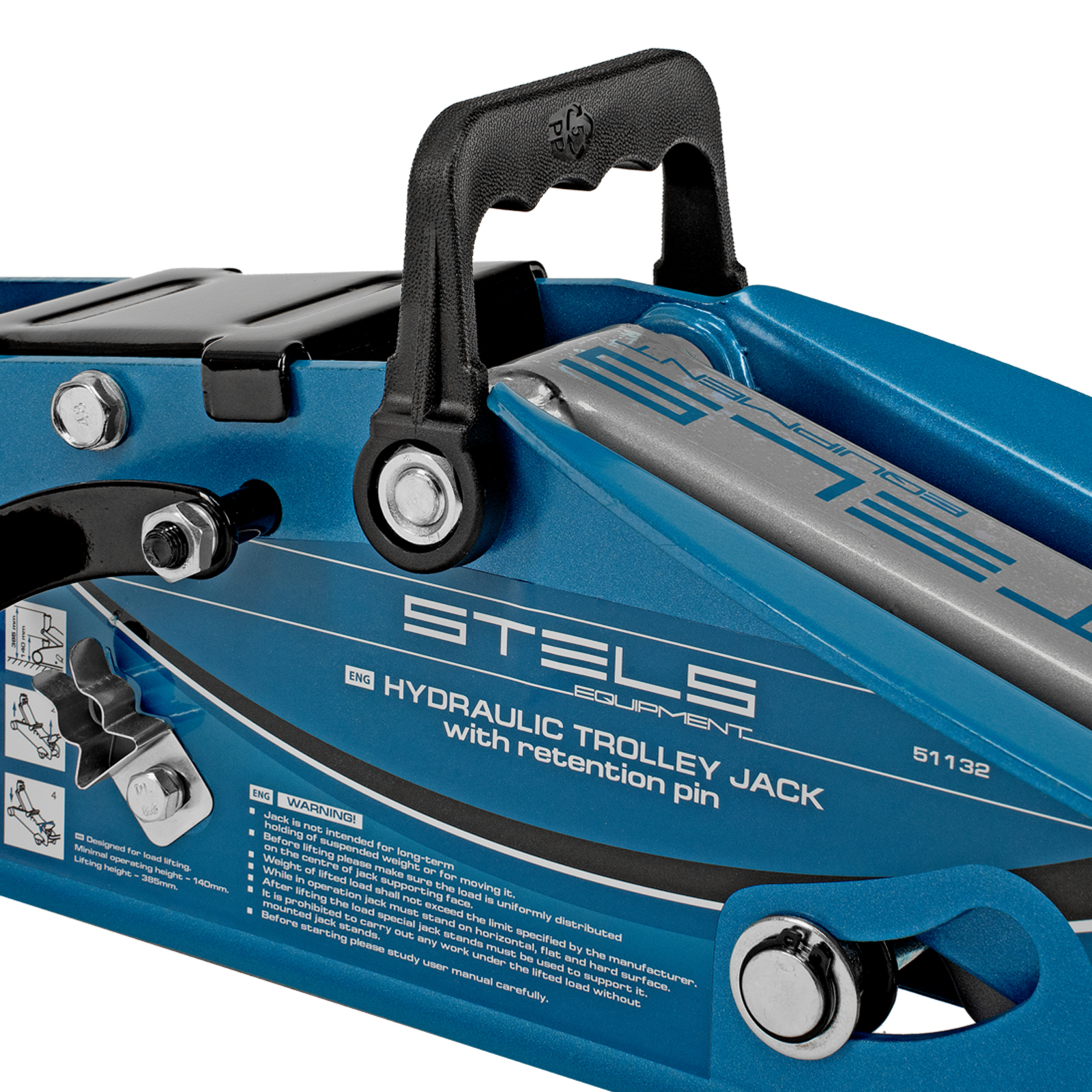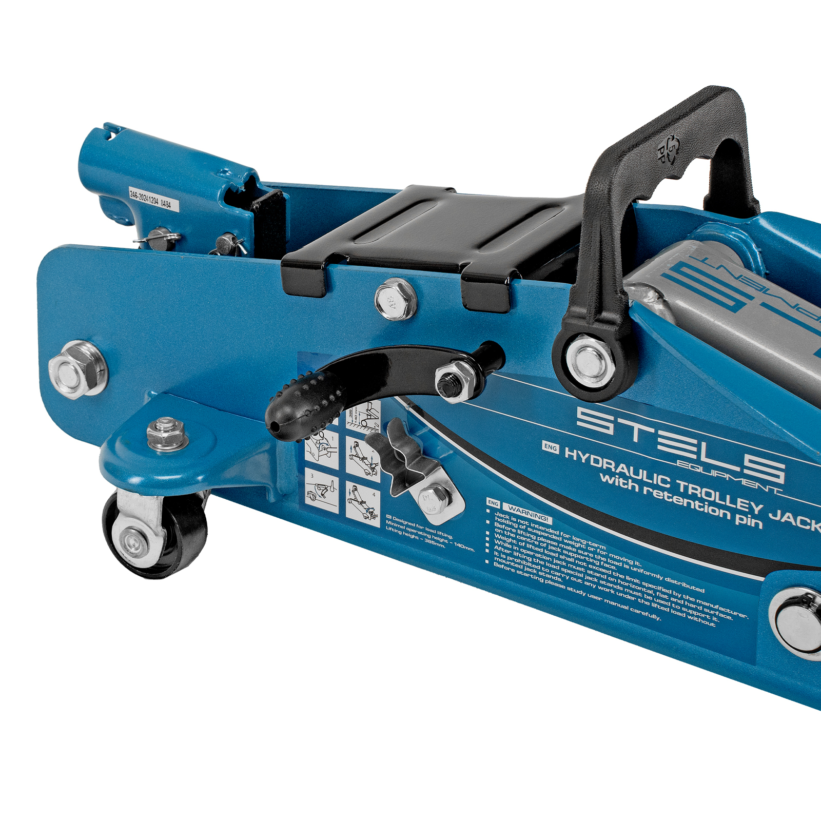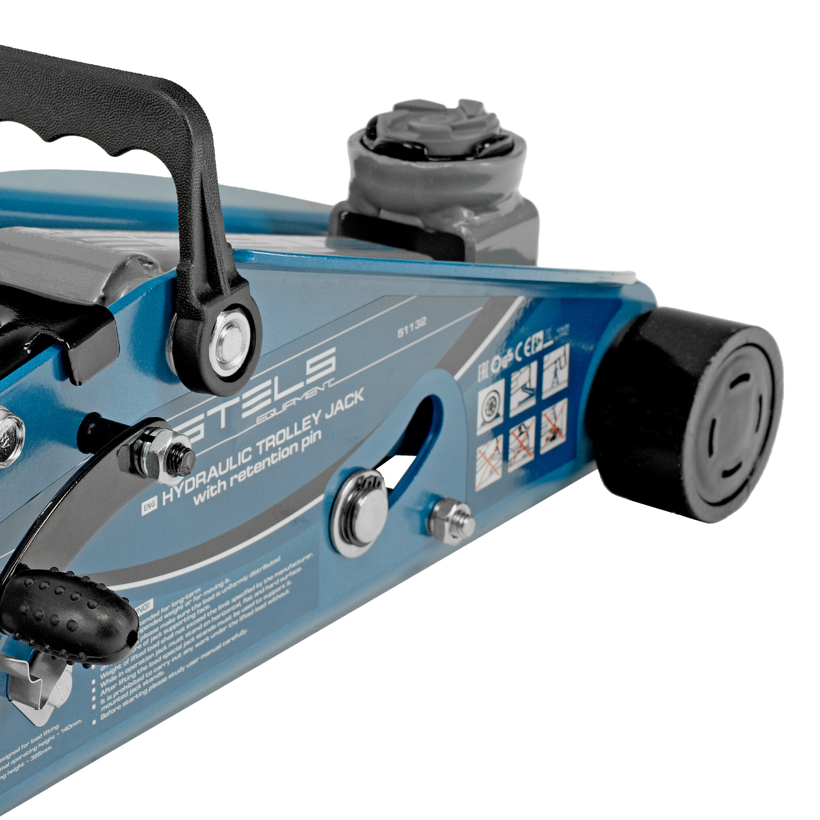 Подкатной гидравлический домкрат Stels Safety Pin 51132 с фиксатором, с высотой подхвата 140 мм, поставляющийся в кейсе, позволяет поднимать грузы весом до 2,5 т на высоту 385 мм. Используется для обслуживания автомобилей со стандартным дорожным просветом. Домкрат подходит для самостоятельного обслуживания авто.
