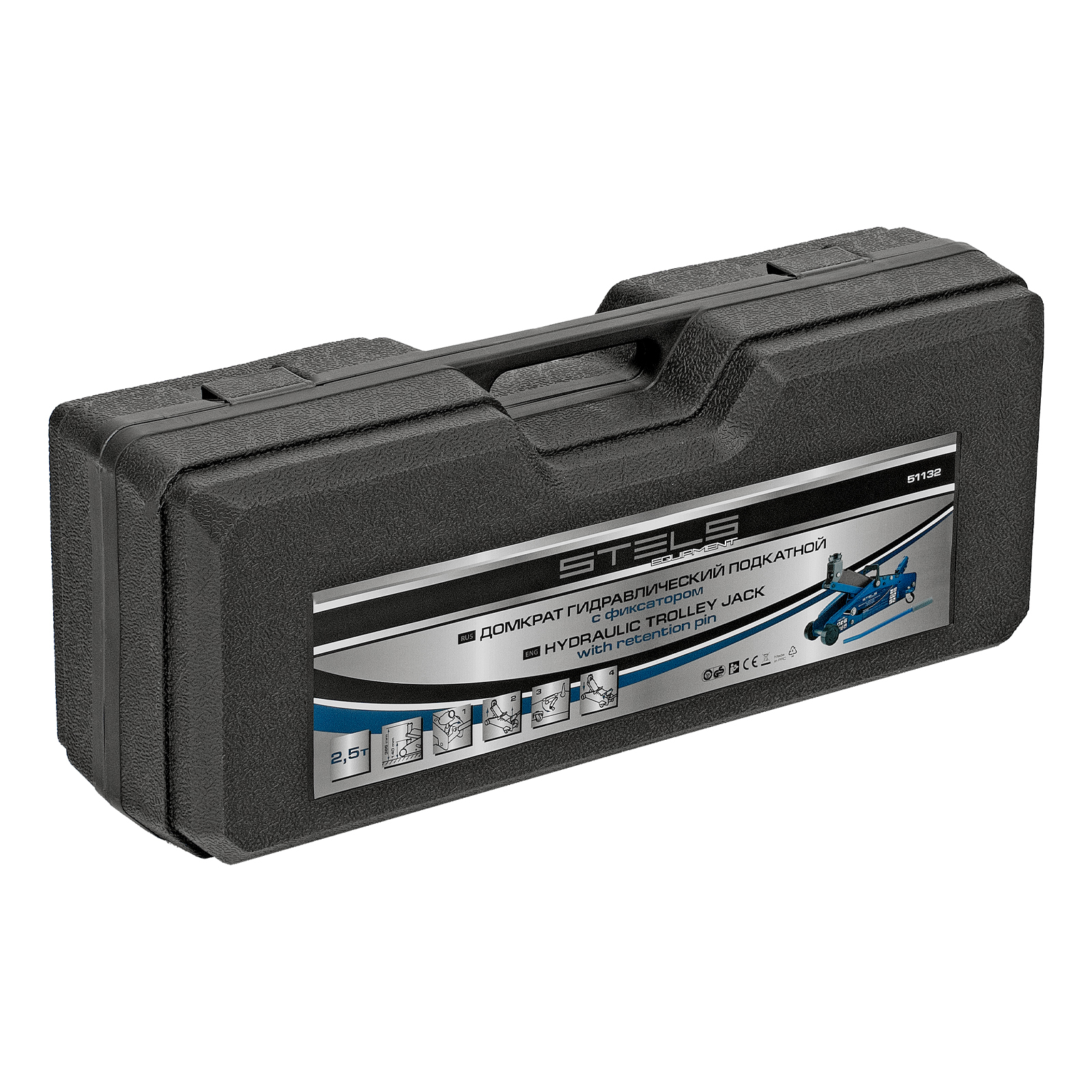 Домкрат гидравлический подкатной с фиксатором, 2.5 т, Safety Pin, 140-385 мм, в кейсе Stels