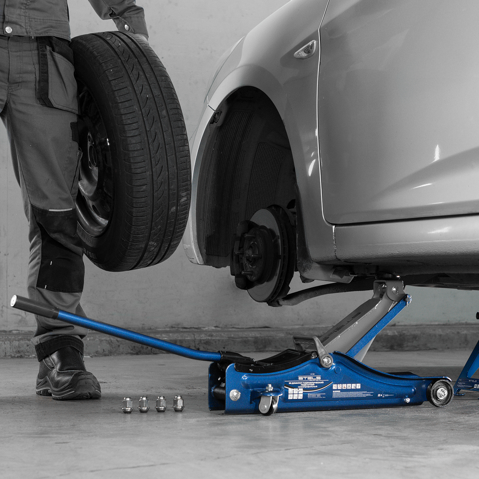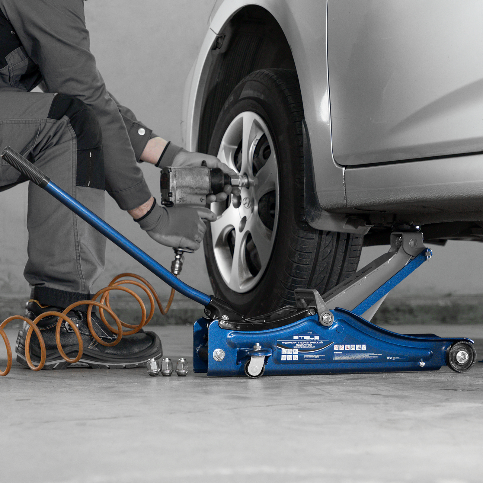 Домкрат гидравлический подкатной в пластиковом кейсе, 2 т, Low Profile, 80-380 мм Stels