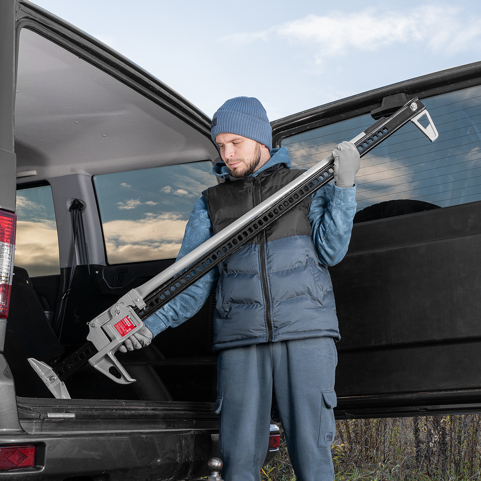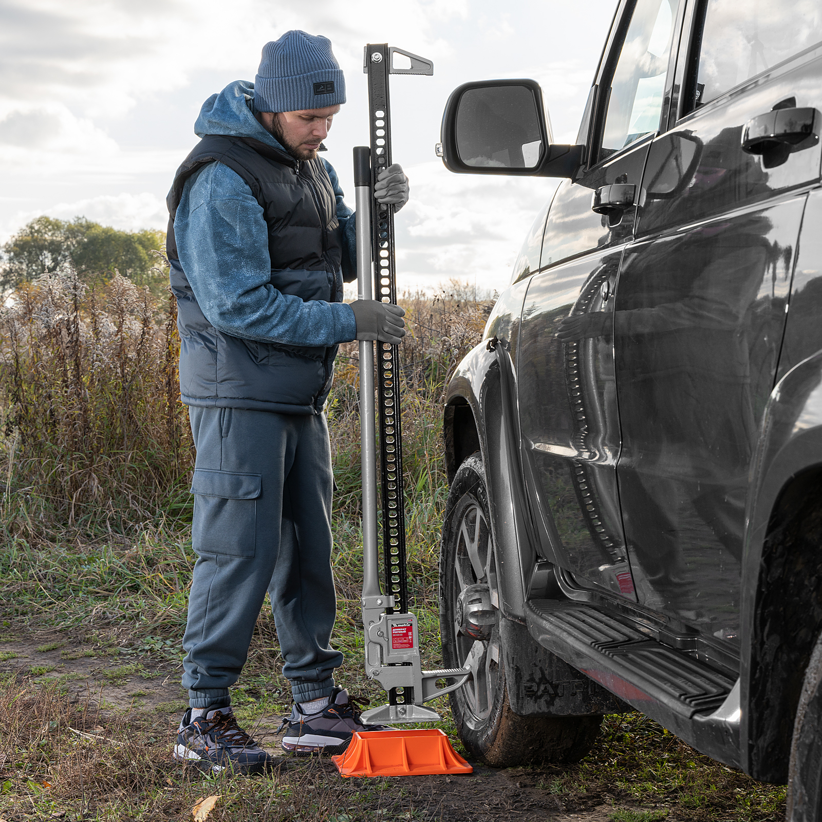Реечный домкрат Matrix High Jack 505195 позволяет поднимать внедорожники и грузовики весом до 3 т на высоту 115-1315 мм. Пригодится во время ремонта автомобилей. Несущая рейка дополнена зацепной петлей, поэтому домкрат можно использовать как ручную лебедку или стягивающее устройство.