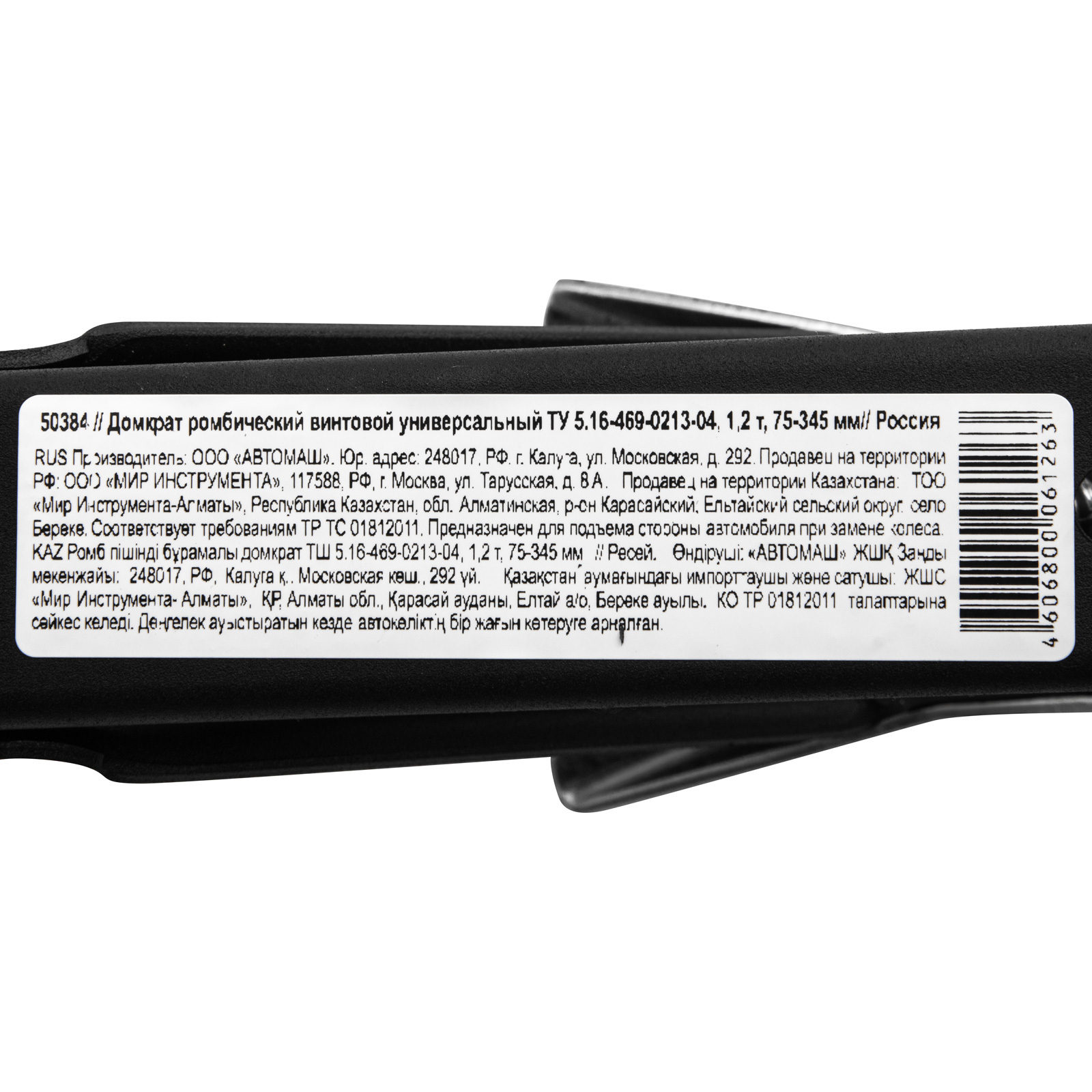 Домкрат ромбический винтовой универсальный ТУ 5.16-469-0213-04, 1.2 т, 75-345 мм