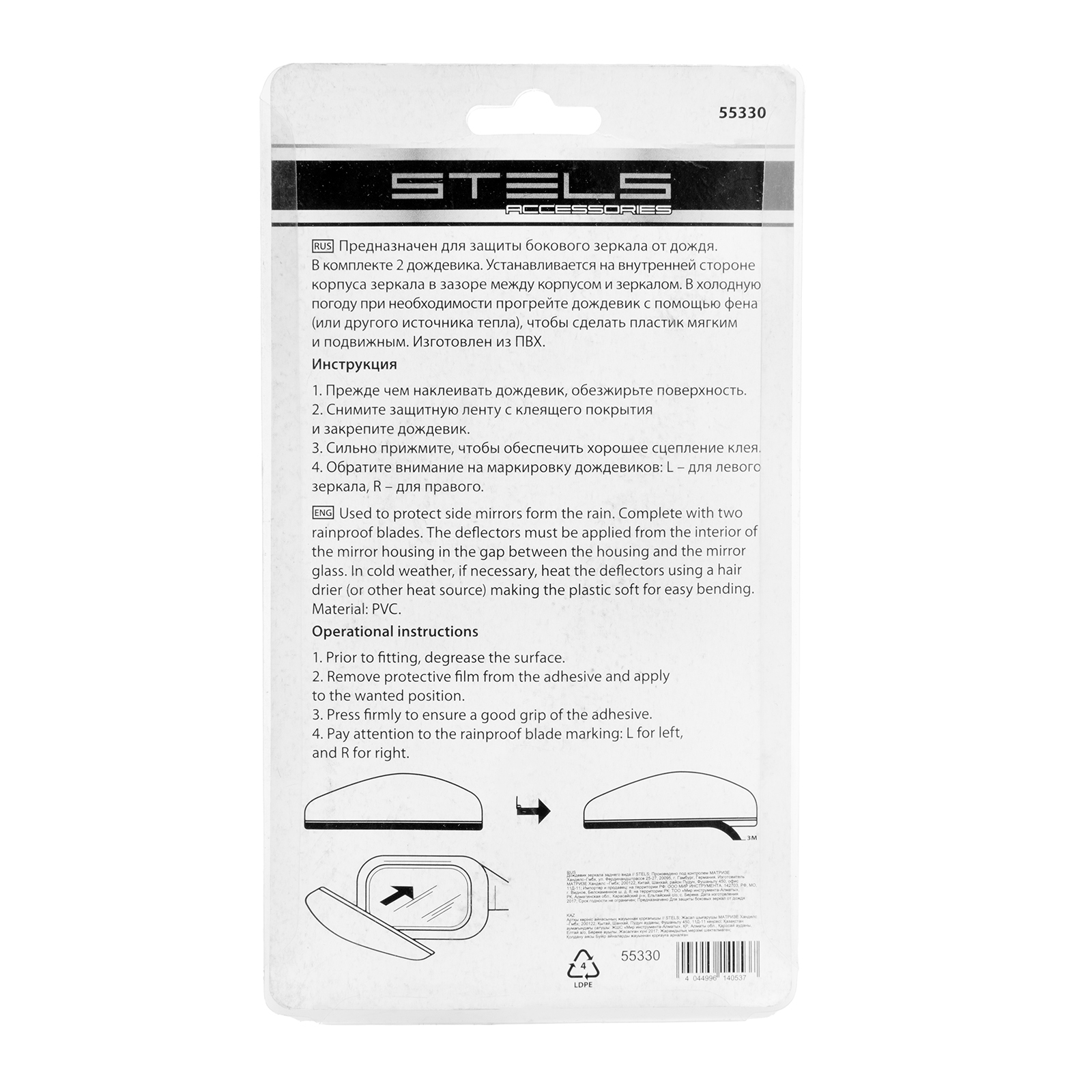 Дождевик зеркала заднего вида Stels 55330 уменьшает загрязнение поверхности зеркал заднего вида. Легко устанавливается на внутреннюю сторону зеркала с помощью клейкой ленты, которая входит в комплект поставки.