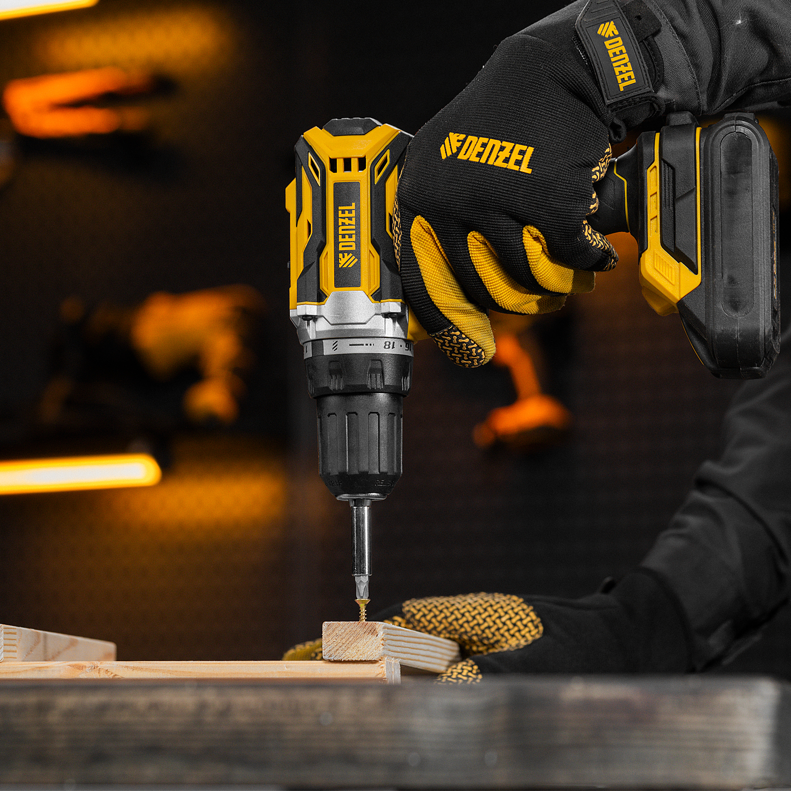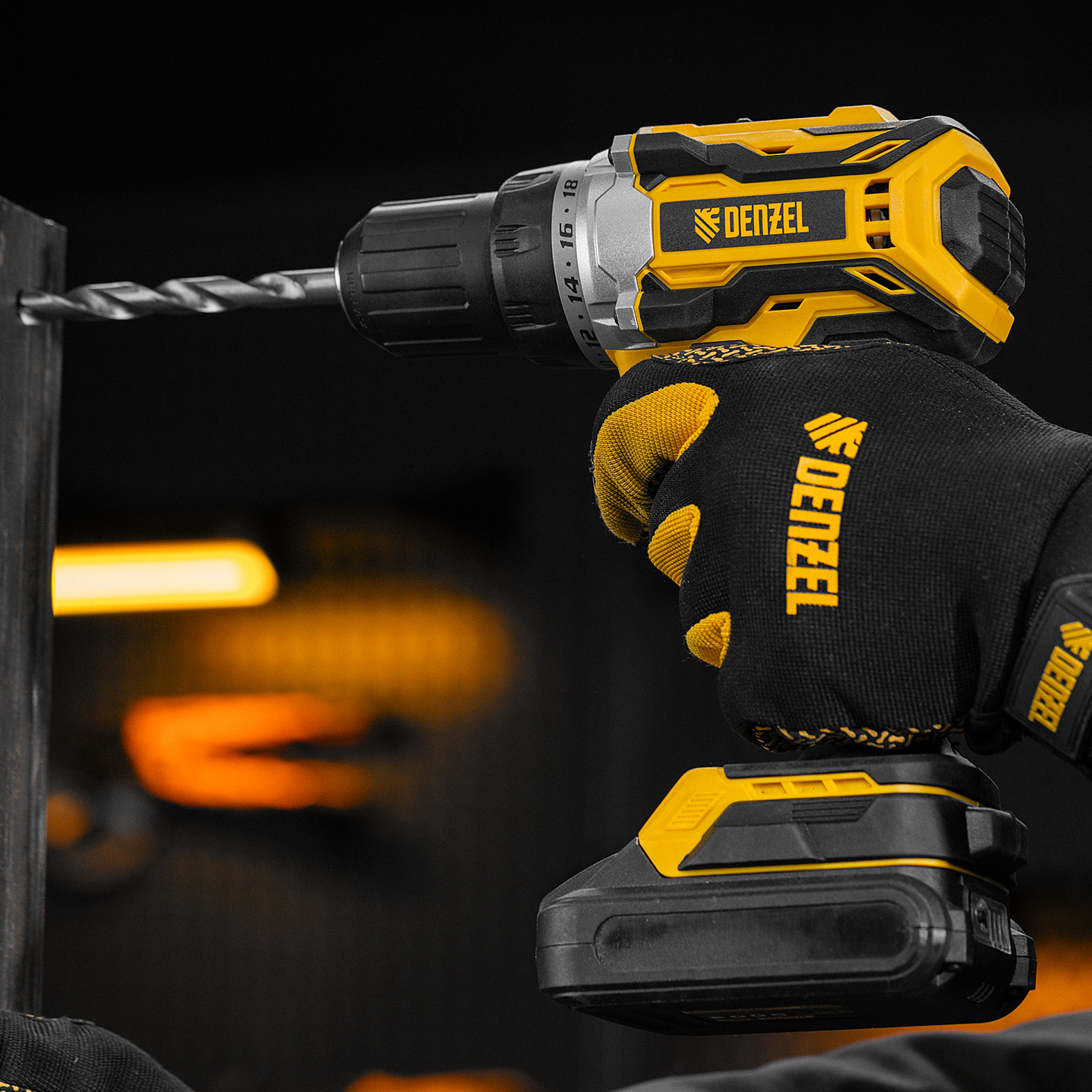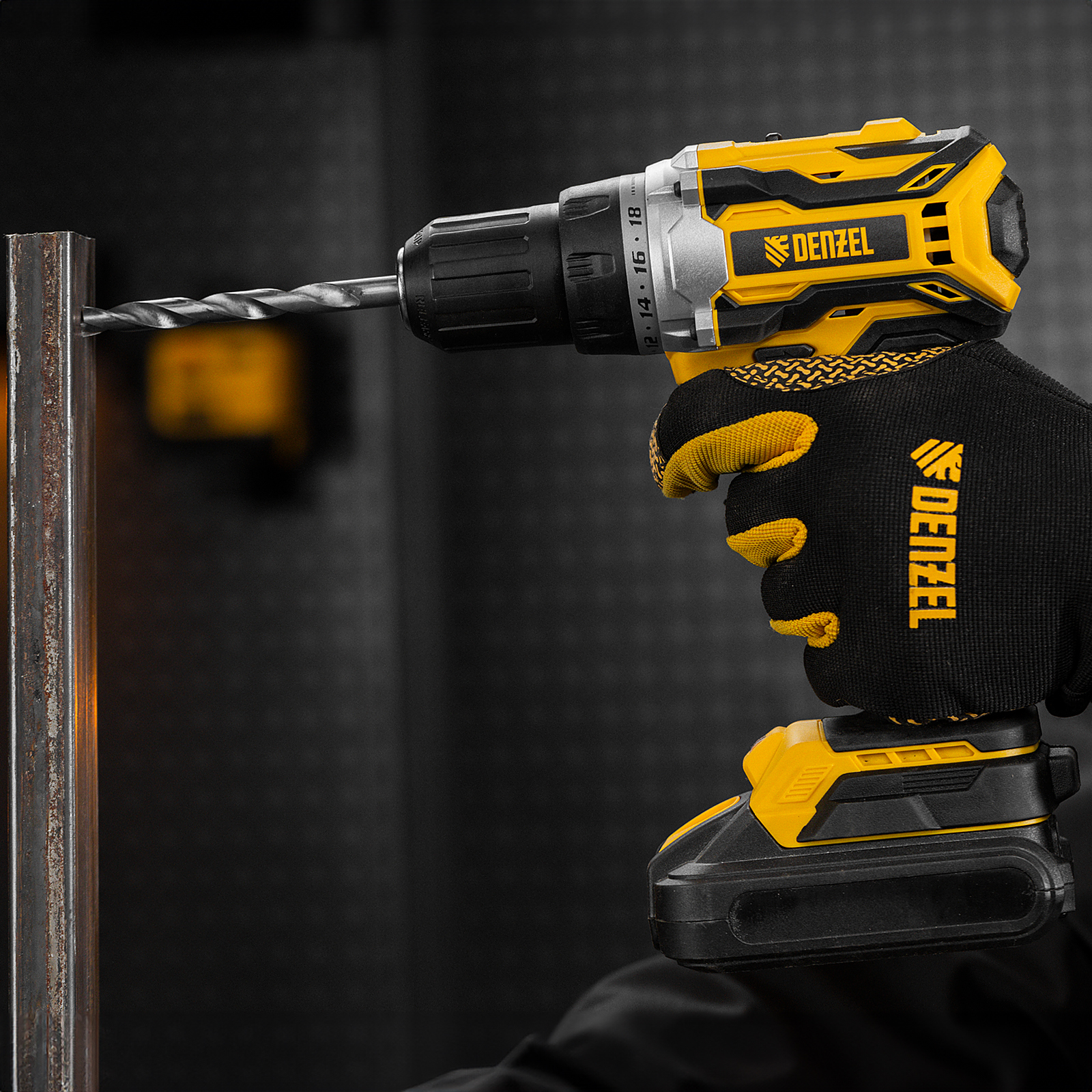 - Универсальность — инструмент совместим с любым Li-Ion аккумулятором и зарядным устройством единой платформы Denzel Battery System 18V.
