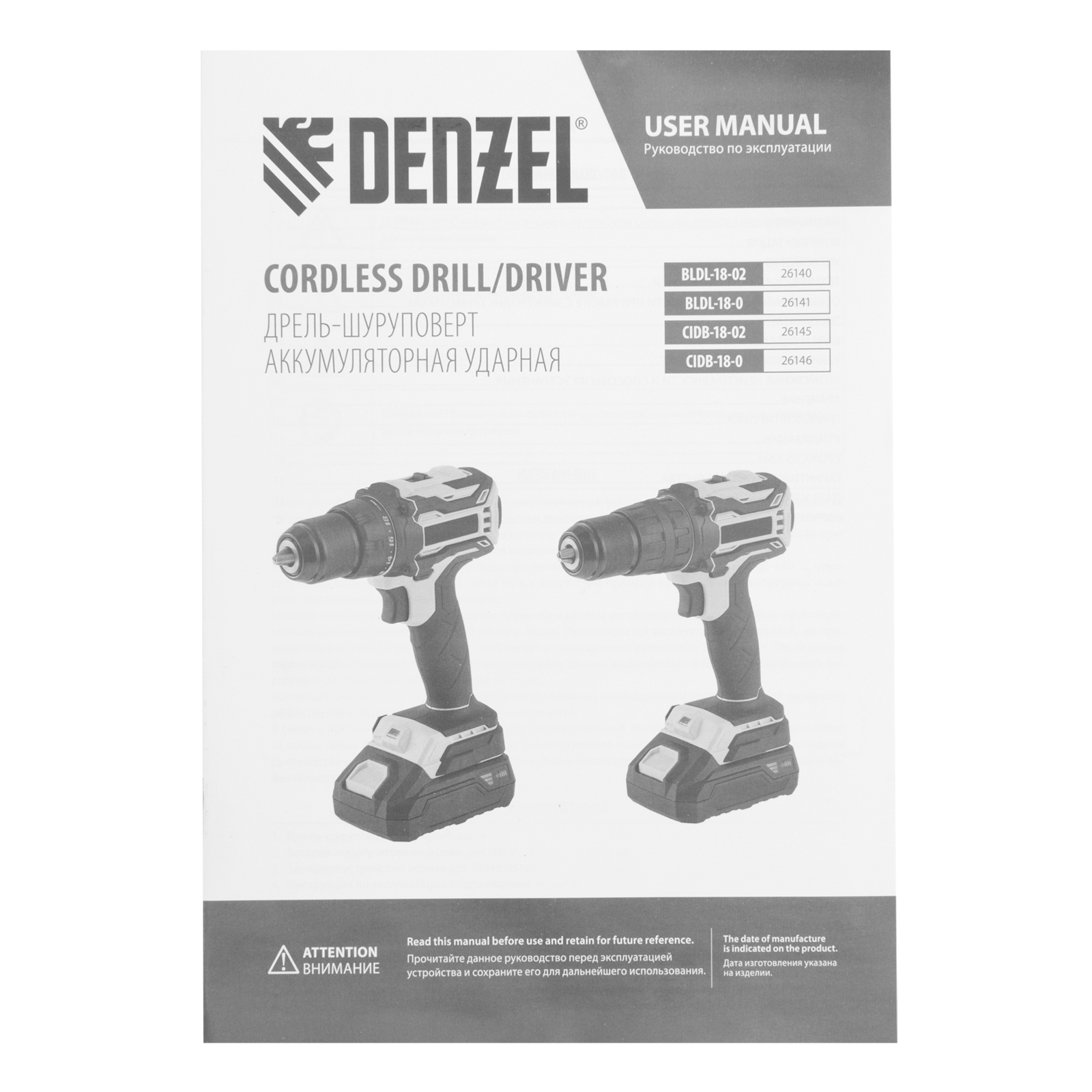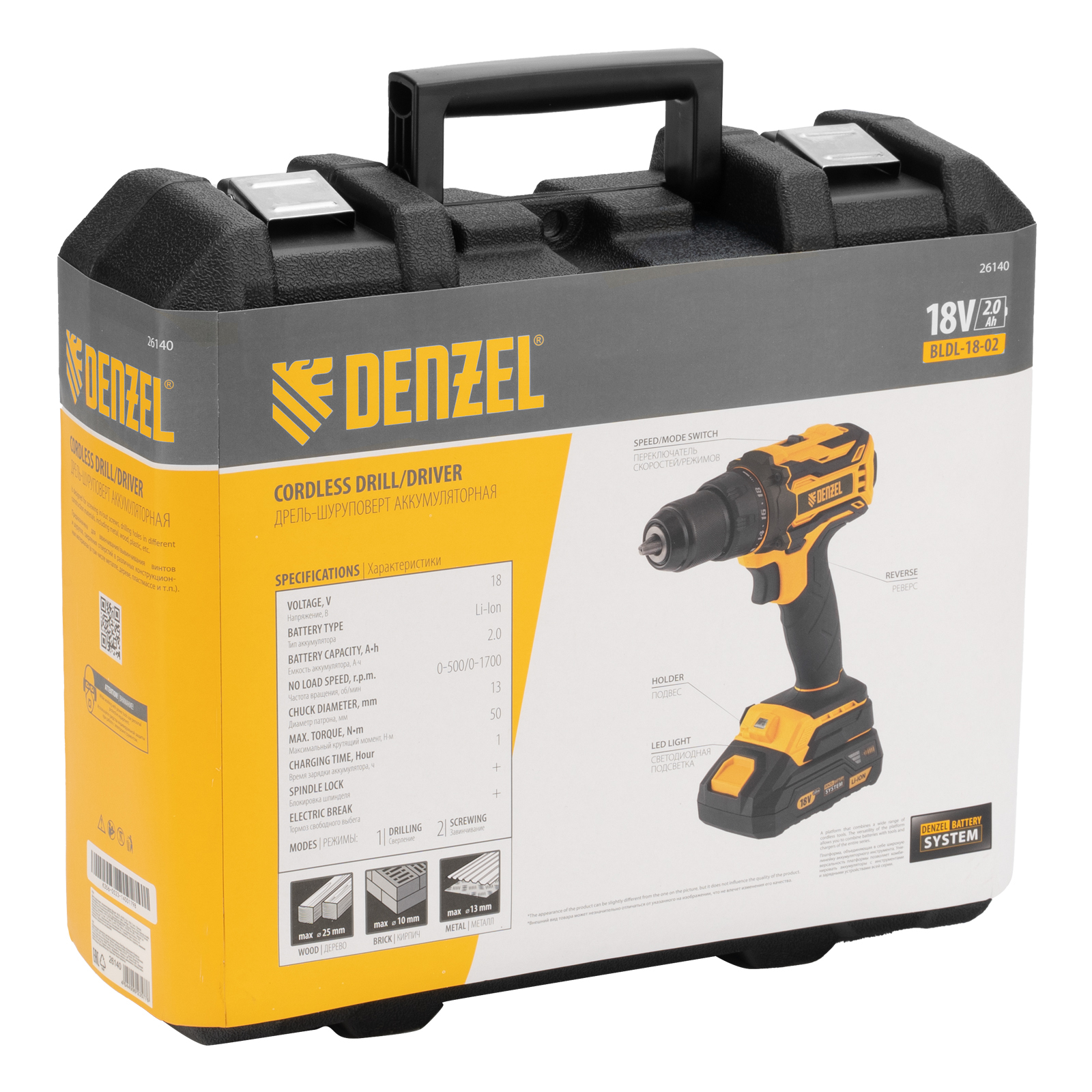 Дрель-шуруповерт аккумуляторная, бесщет. BLDL-18-02 Li-Ion, 18 В Denzel