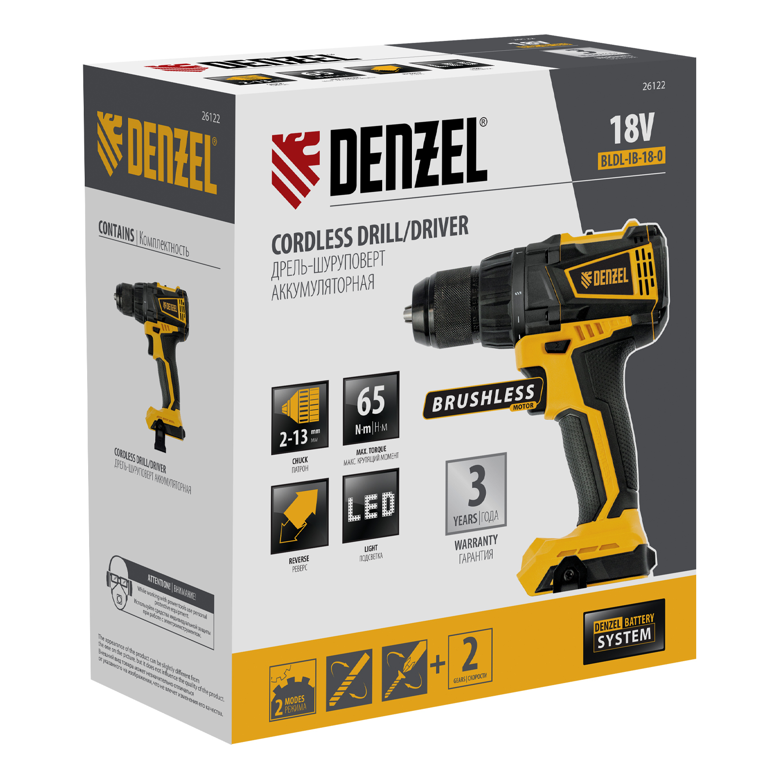 Дрель-шуруповерт аккумуляторная, бесщет. BLDL-IB-18-0, Li-Ion, 18 В Denzel