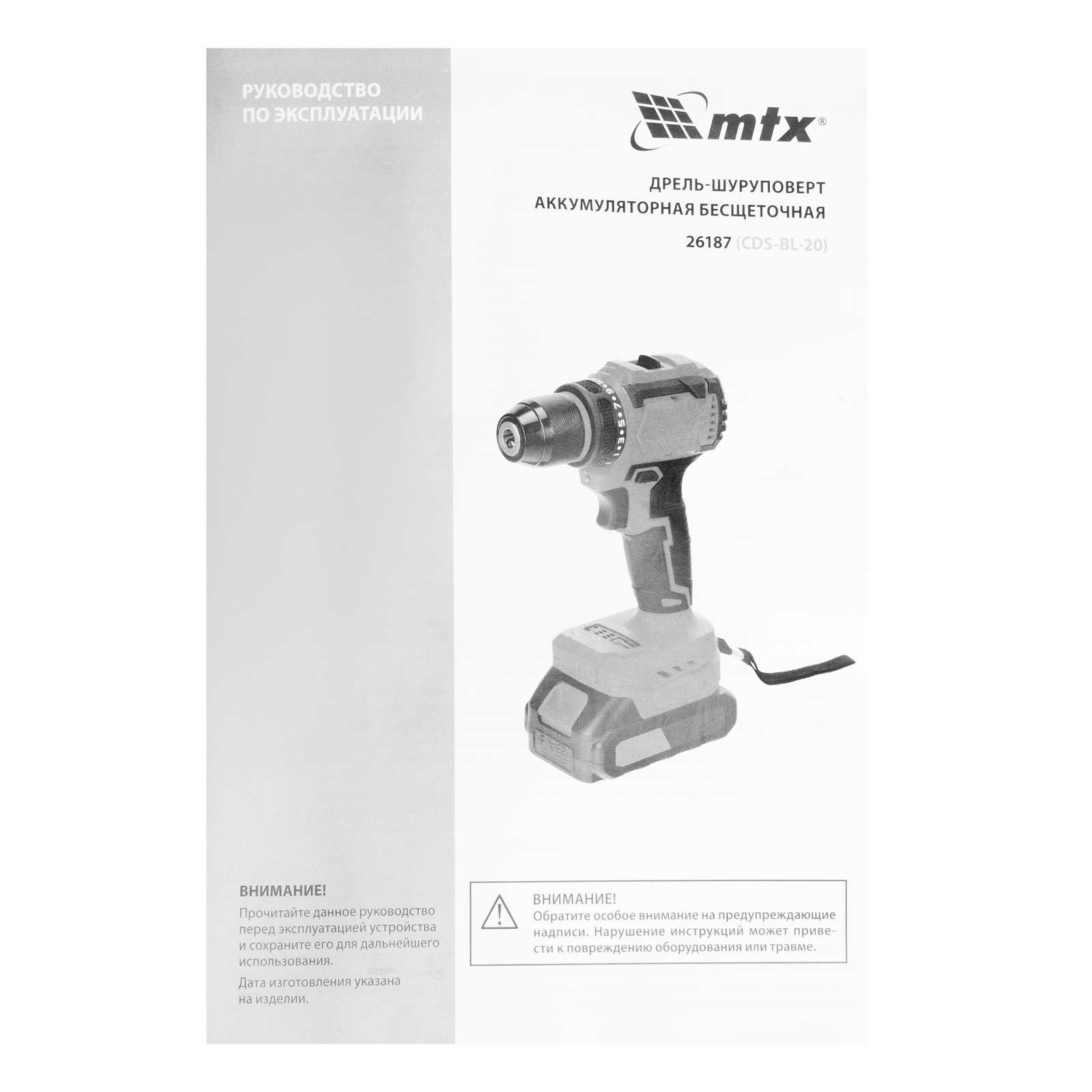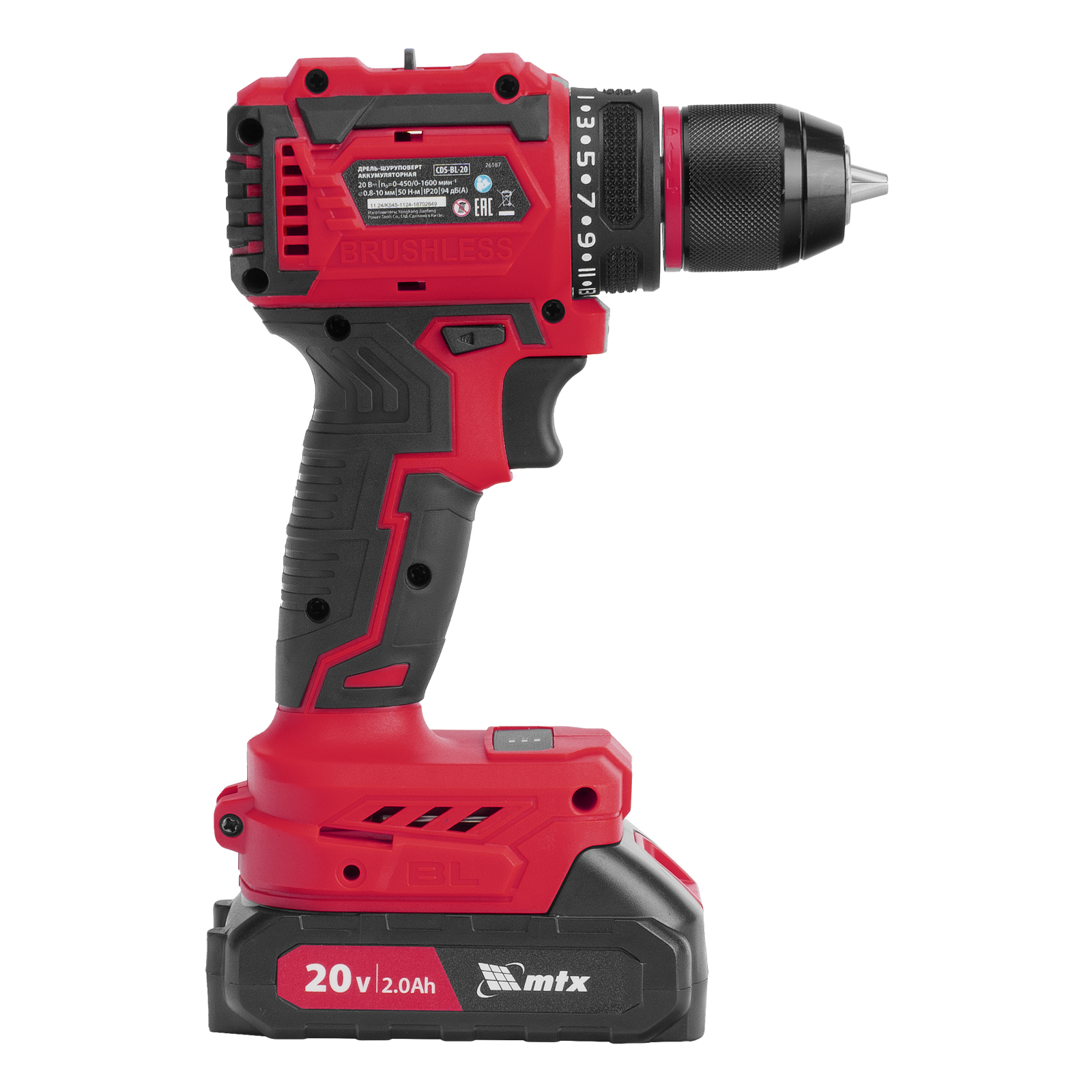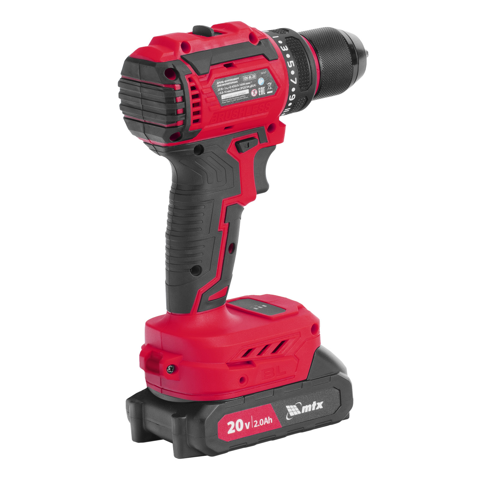 Дрель-шуруповерт аккумуляторная бесщет. CDS-BL-20, Li-Ion, 20 В// MTX