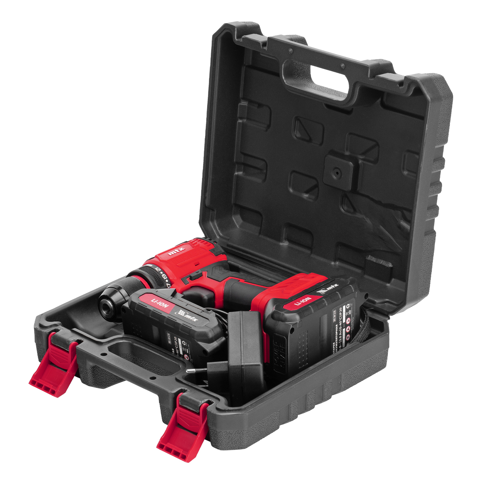 Дрель-шуруповерт аккумуляторная - 1 штБатарея аккумуляторная - 2 штУстройство зарядное - 1 штБита - 1 штИнструкция по эксплуатации с гарантийным талоном - 1 штПластиковый кейс - 1 шт