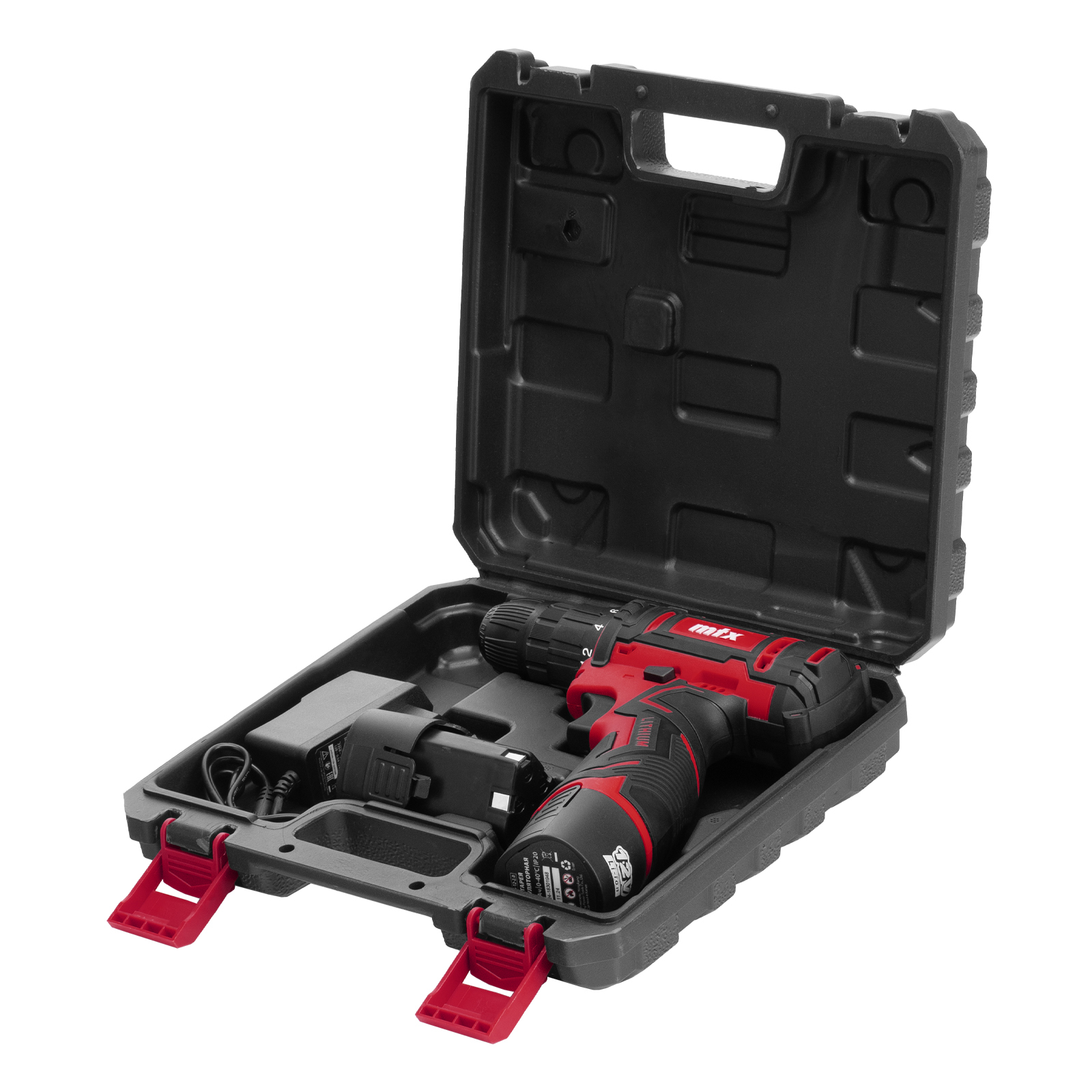 - Удобное хранение и транспортировка — дрель-шуруповерт с аксессуарами поставляется в надежном пластиковом кейсе.