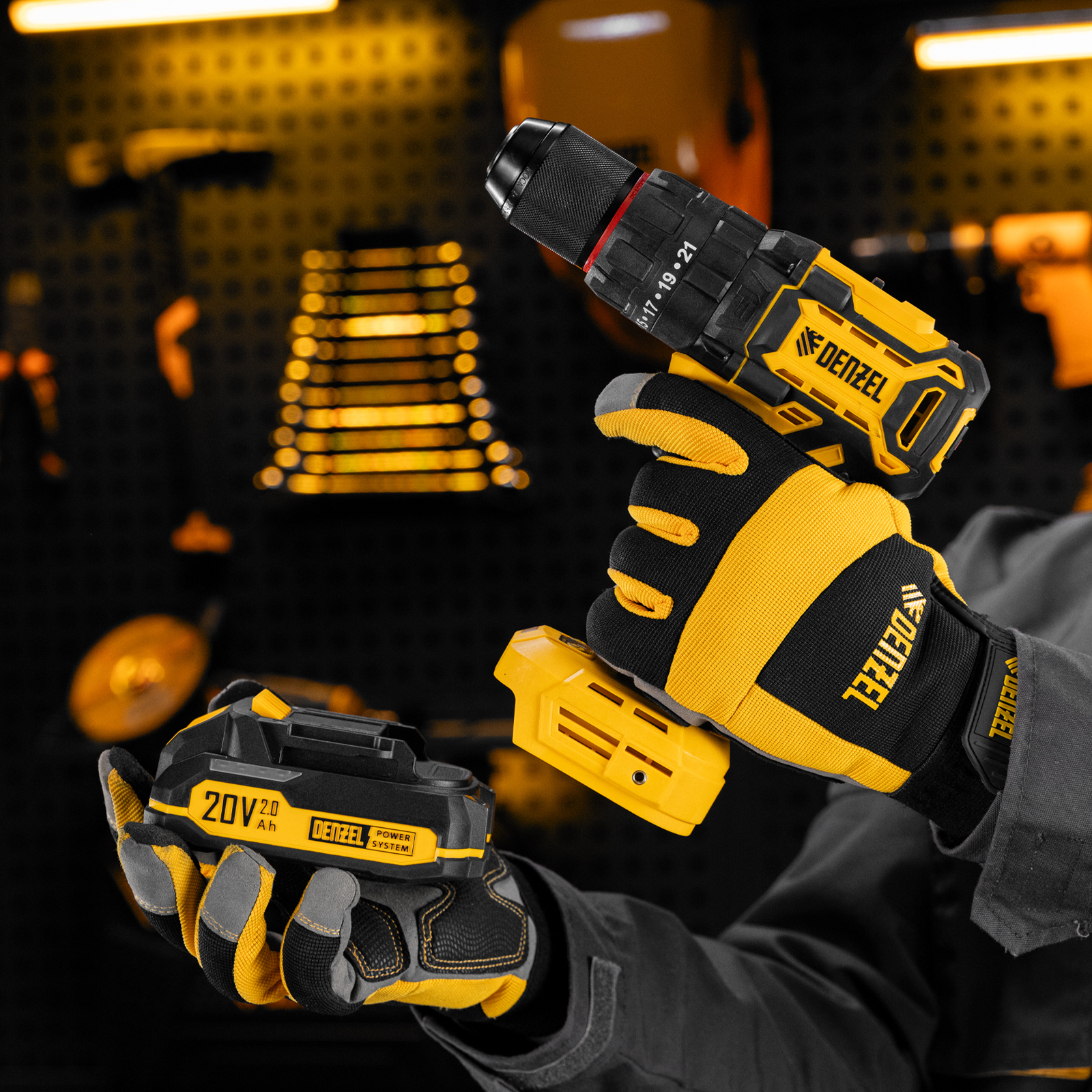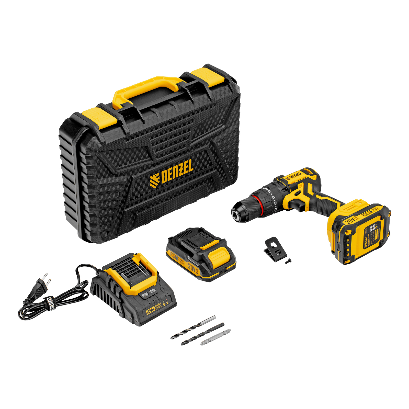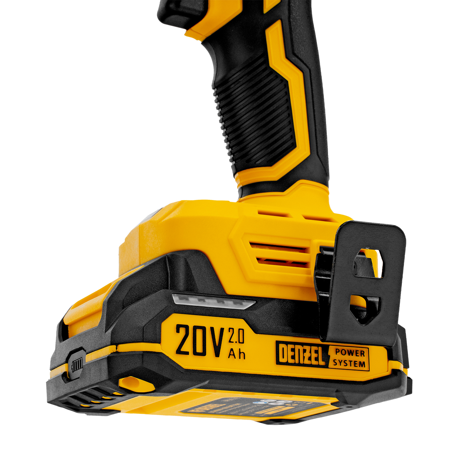 - Универсальность — аккумулятор Li-Ion емкостью 2 А·ч совместим со всеми инструментами единой платформы Denzel Power System 20V.