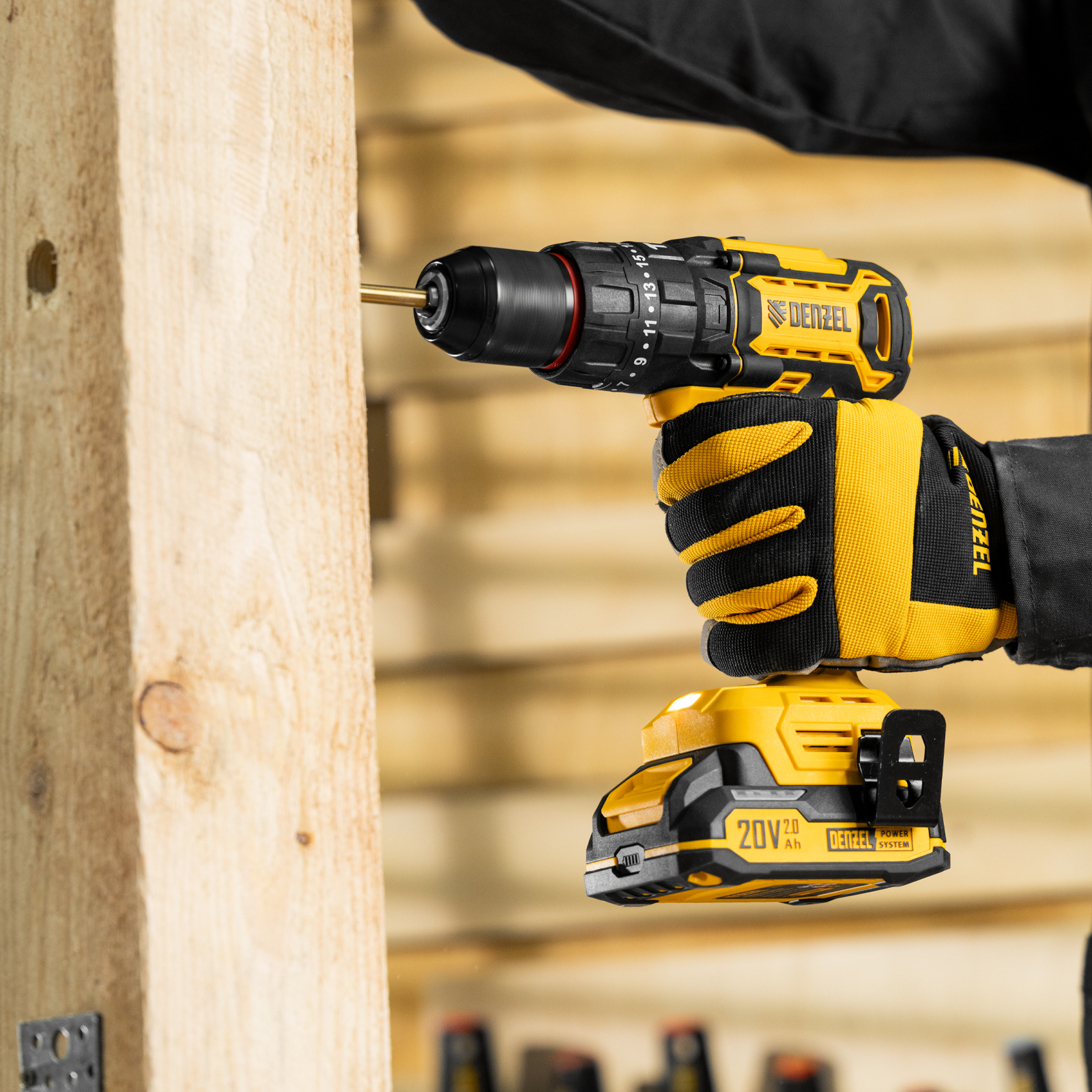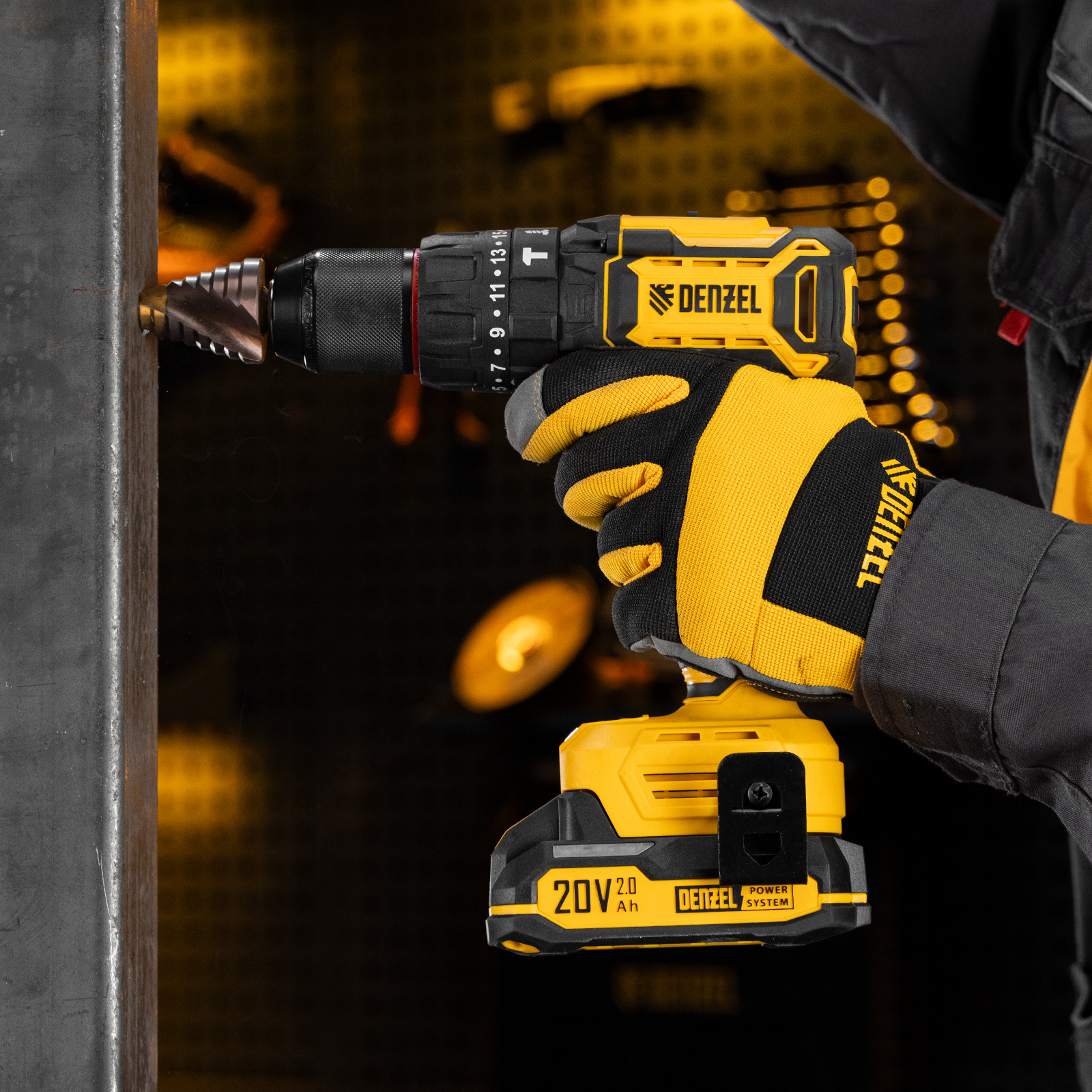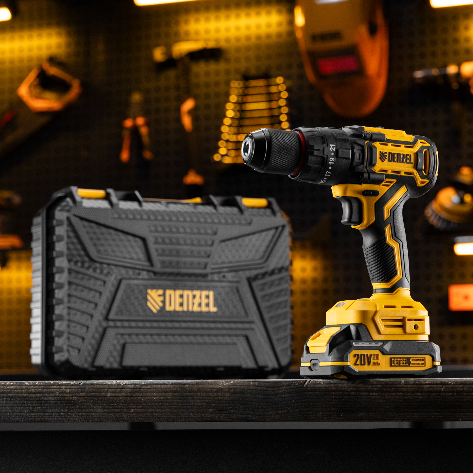 - Универсальность — аккумулятор Li-Ion емкостью 2 А·ч совместим со всеми инструментами единой платформы Denzel Power System 20V.