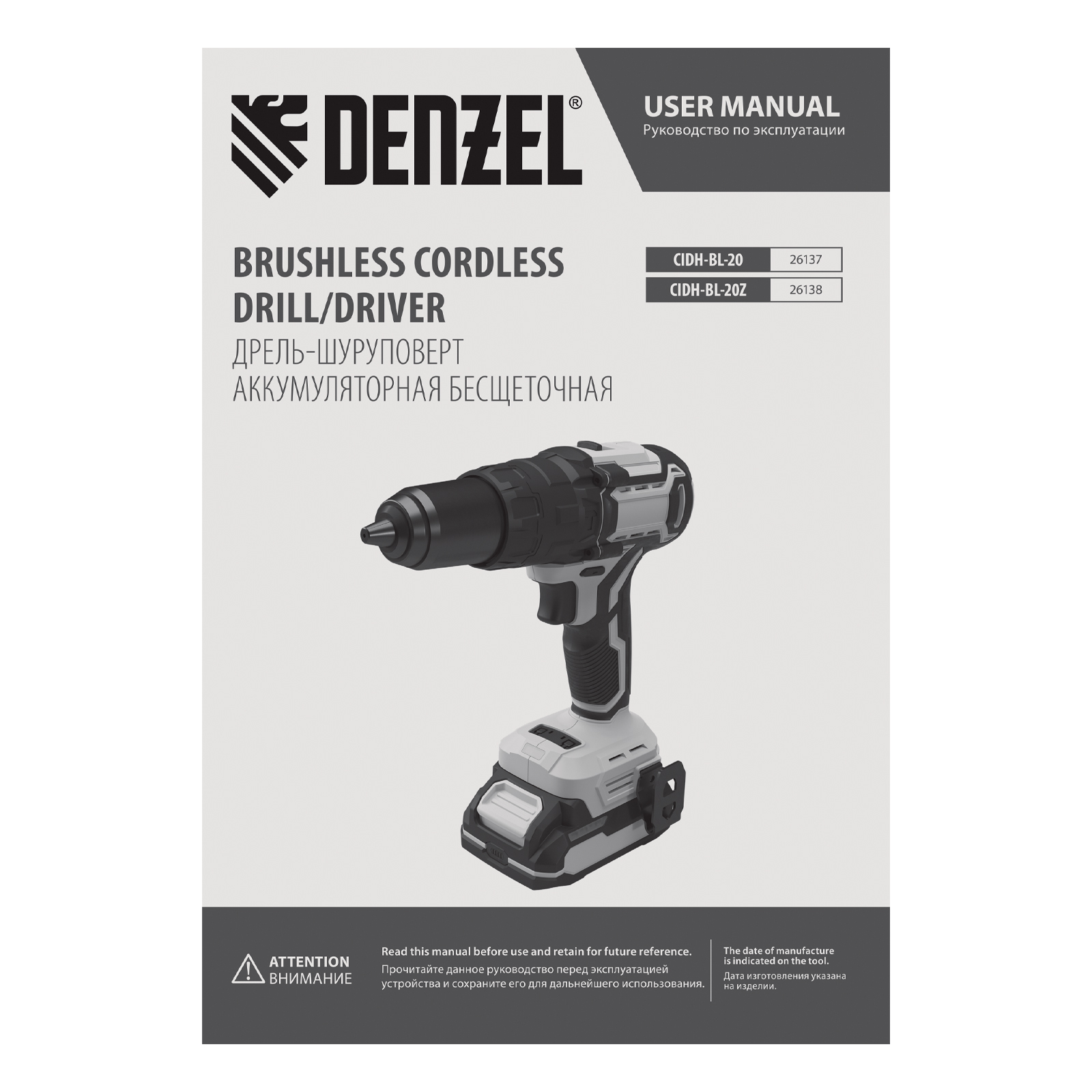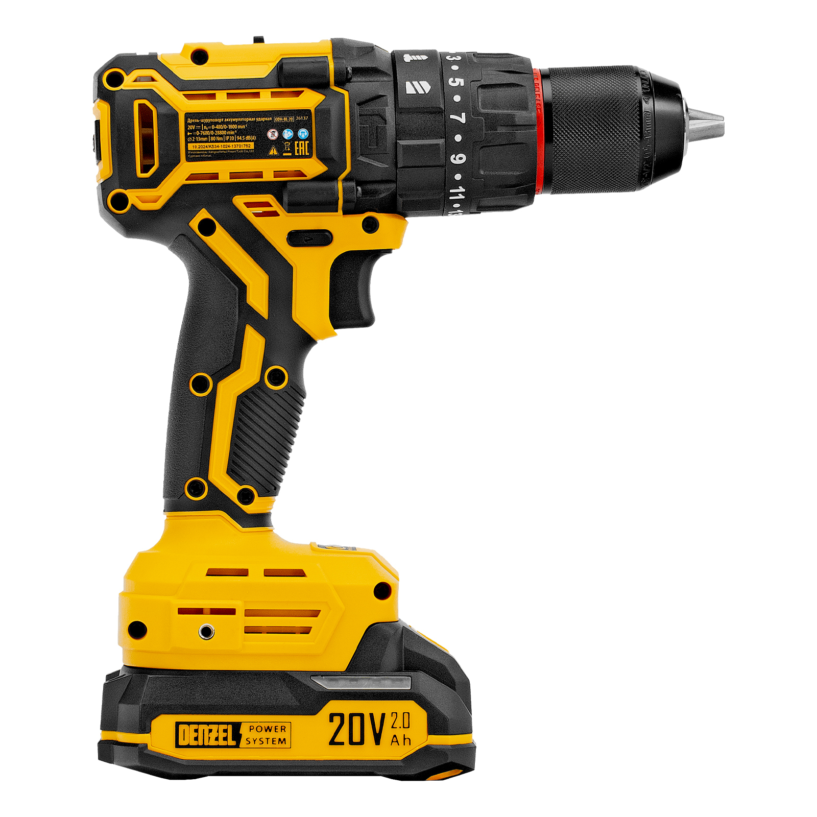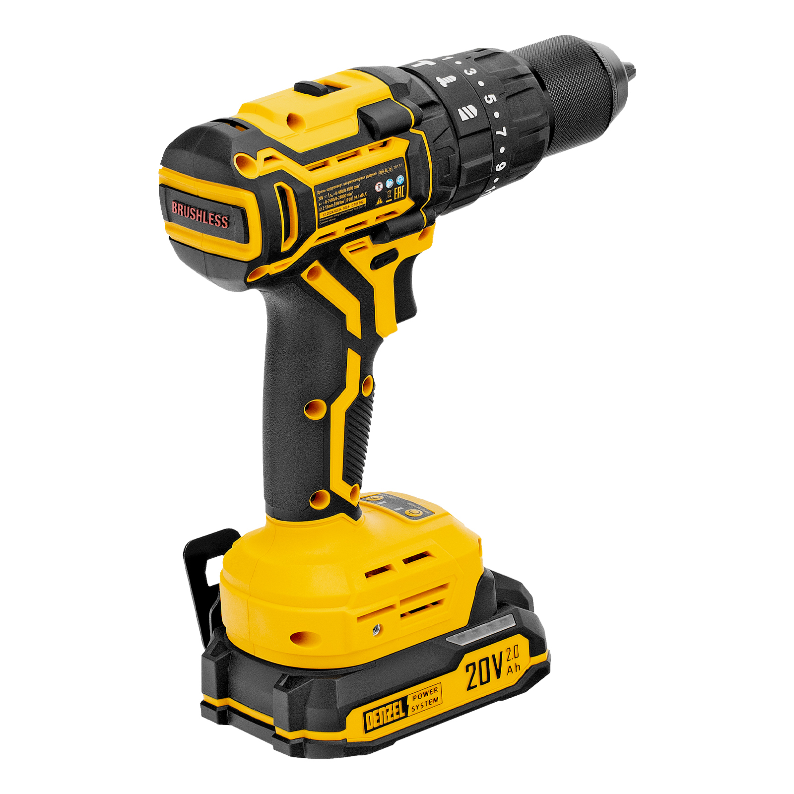 Дрель-шуруповерт аккумуляторная ударная бесщет. CIDH-BL-20, Li-Ion, 20 В// Denzel