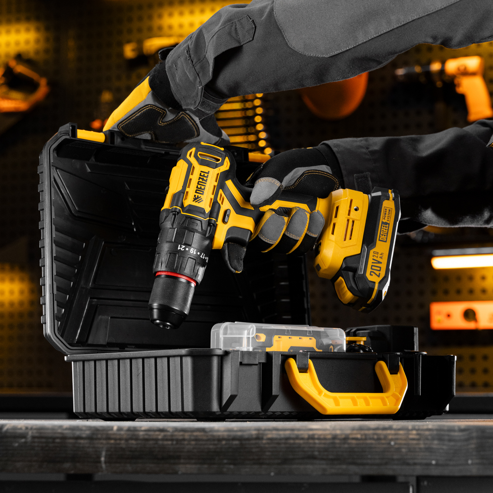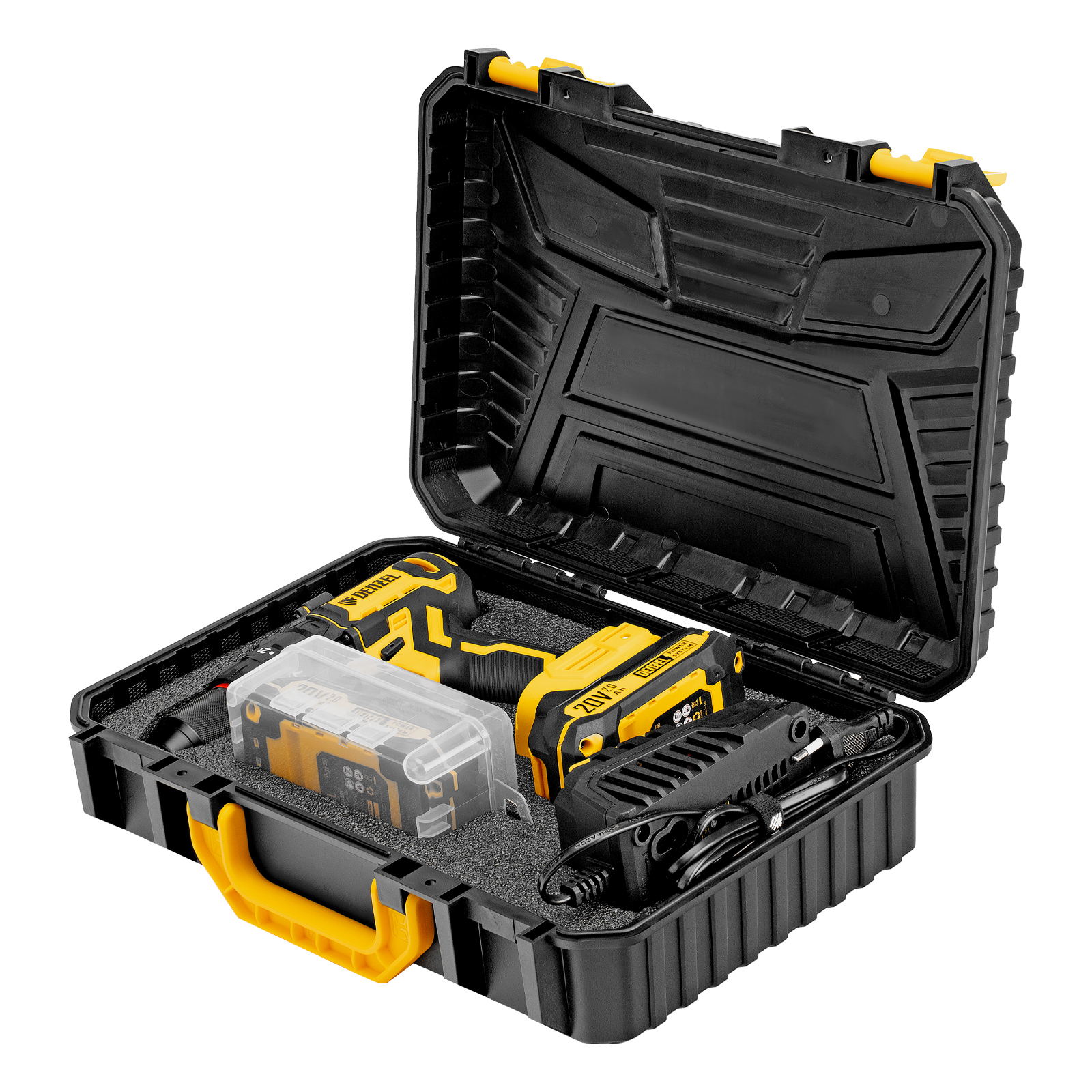 - Удобное хранение и транспортировка — дрель-шуруповерт с аксессуарами поставляется в прочном кейсе.