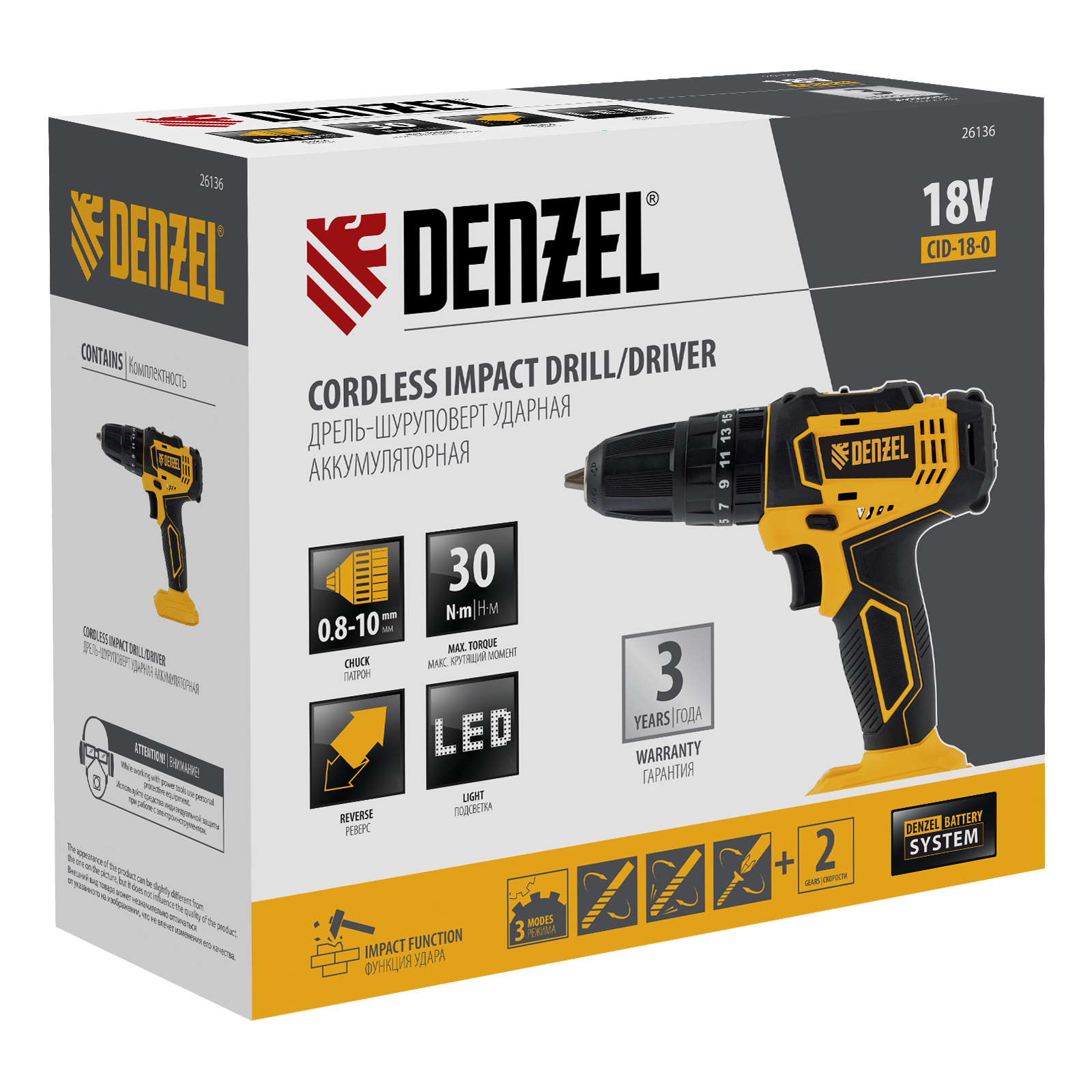 Дрель-шуруповерт аккумуляторная ударная CID-18-0, Li-Ion, 18 В Denzel